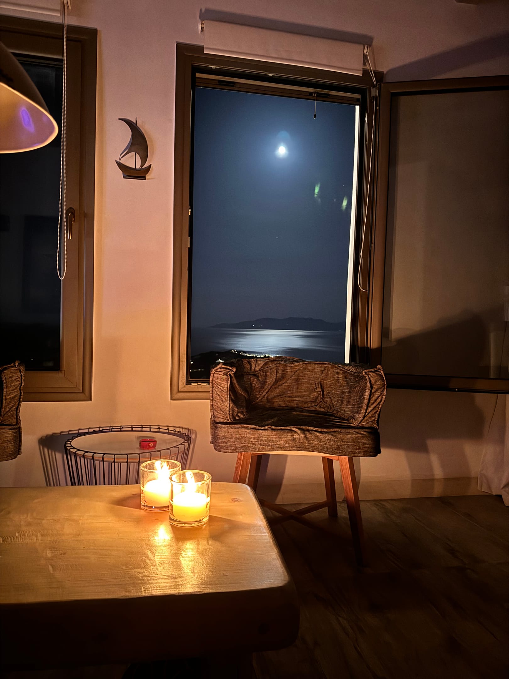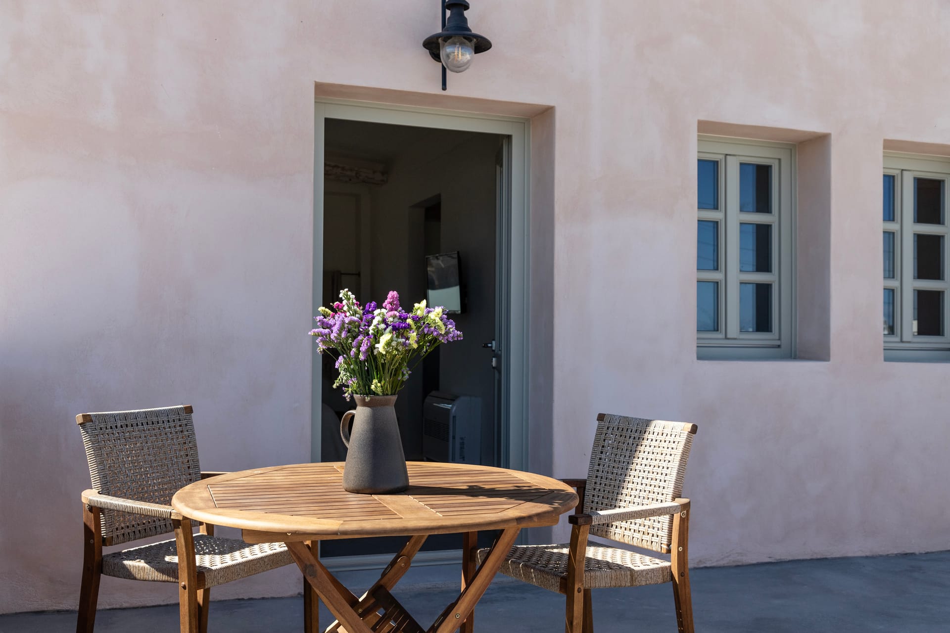 •One features a private mini pool spa (Jacuzzi) with partial shading and breathtaking views of the Aegean Sea