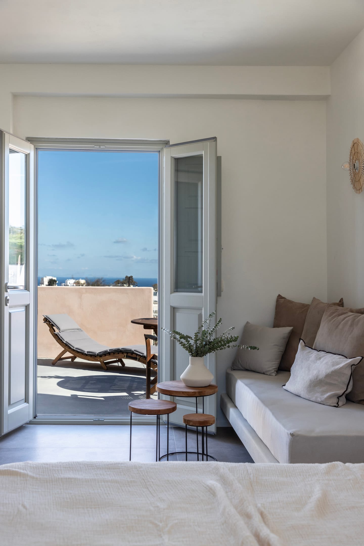 Aris Sky Suite offers a perfect balance of elegance, comfort, and private open-air living, with endless views of the Aegean Sea.