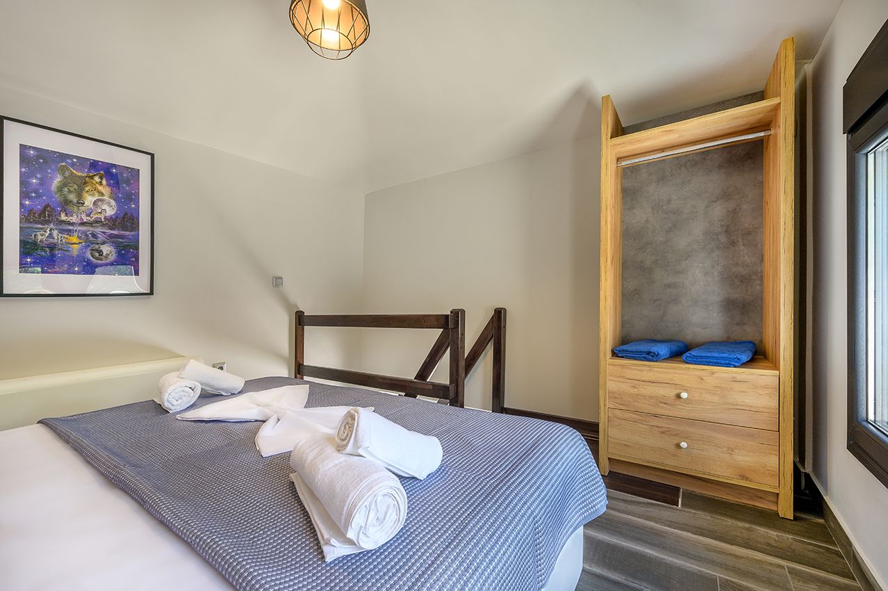 Its living spaces are voluminous and tailored with large window openings, filling the interiors with natural light. Villa Amaryllis is characterised by meticulous design, including hand-crafted décor, prime materials, and state-of-the-art technology. Since this house was designed to please large groups, a fully-equipped kitchen takes a prominent place on the ground floor, and it is connected with the red-coloured living room, the matching dining area, and the yard. The outdoor areas and the garden are shaded by the local flora and tall trees and feature an extra wooden dining table, a couch swing as well as sunbeds.