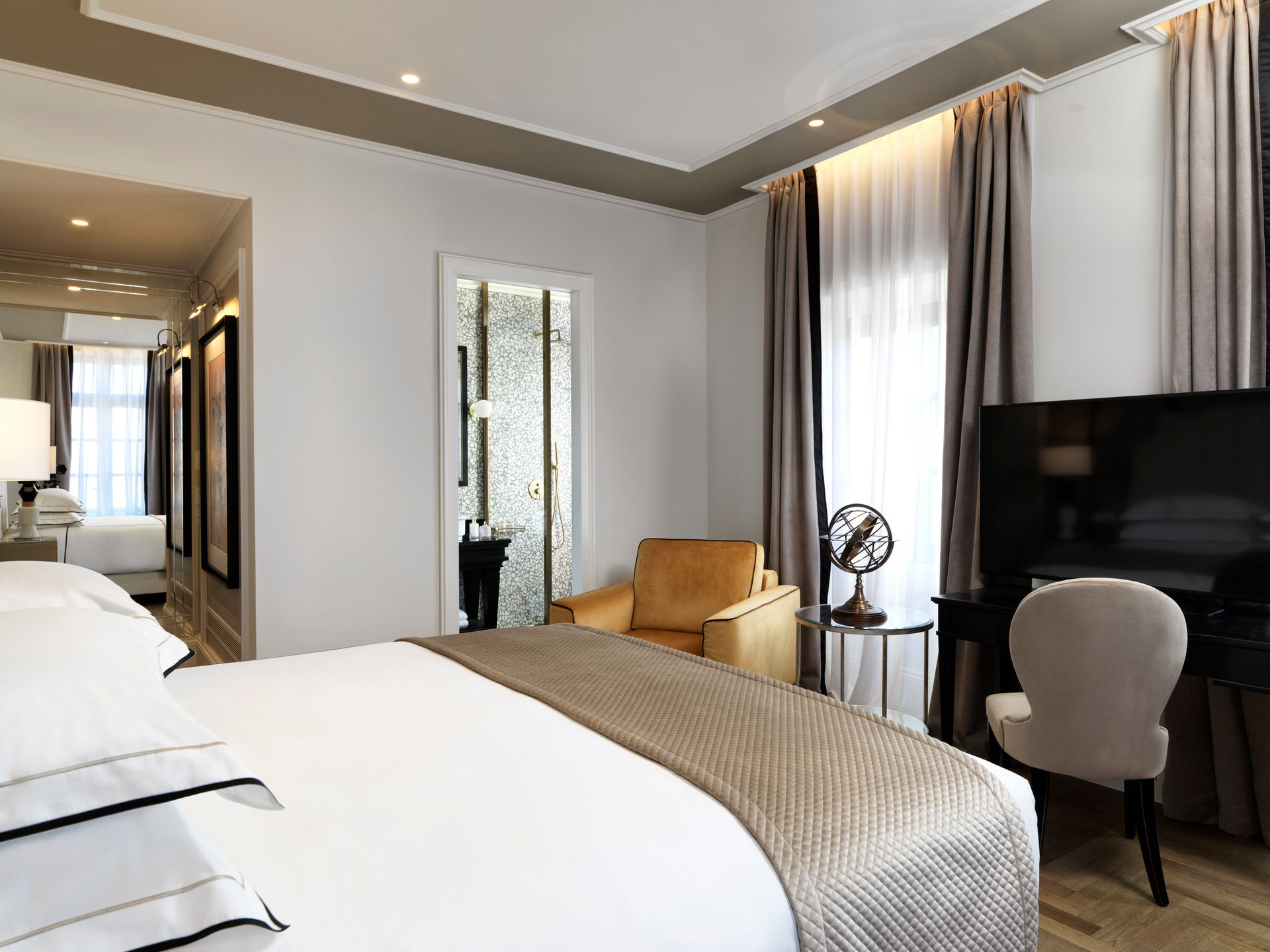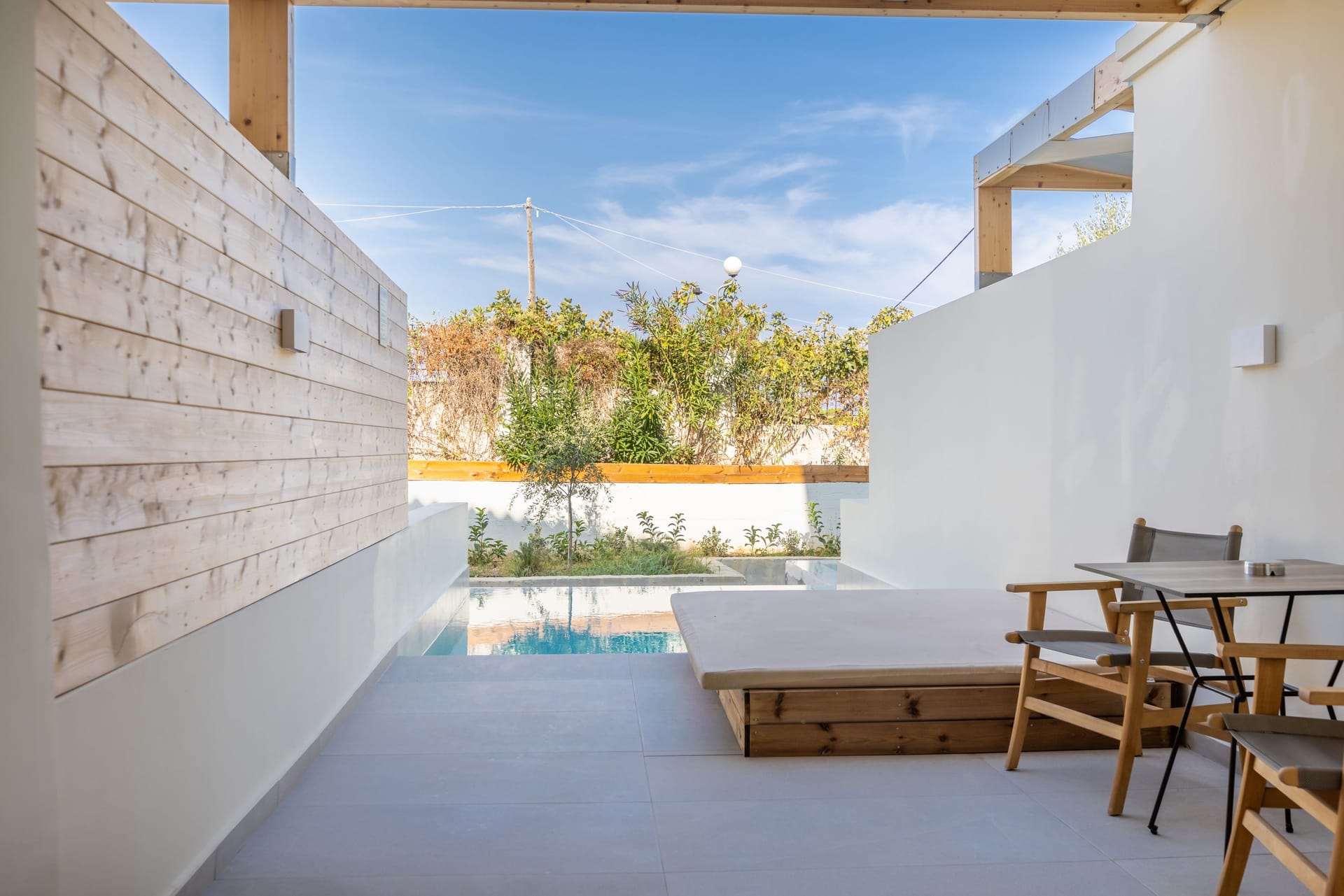 Experience unmatched luxury and privacy in the Two-Bedroom Suite Partial Sea View with Private Pool at Ammades All Suites Beach Hotel & Spa – Adults Only. Designed to accommodate up to four adults, this spacious 73 m² suite seamlessly blends modern elegance with thoughtful amenities, creating the perfect retreat. The suite features a private 20 m² heated freshwater pool with an integrated Jacuzzi, complete with sun loungers and parasols, providing a peaceful oasis for relaxation. The furnished terrace and balcony offer serene views of the sea, enhancing your connection to the natural beauty of the Aegean.