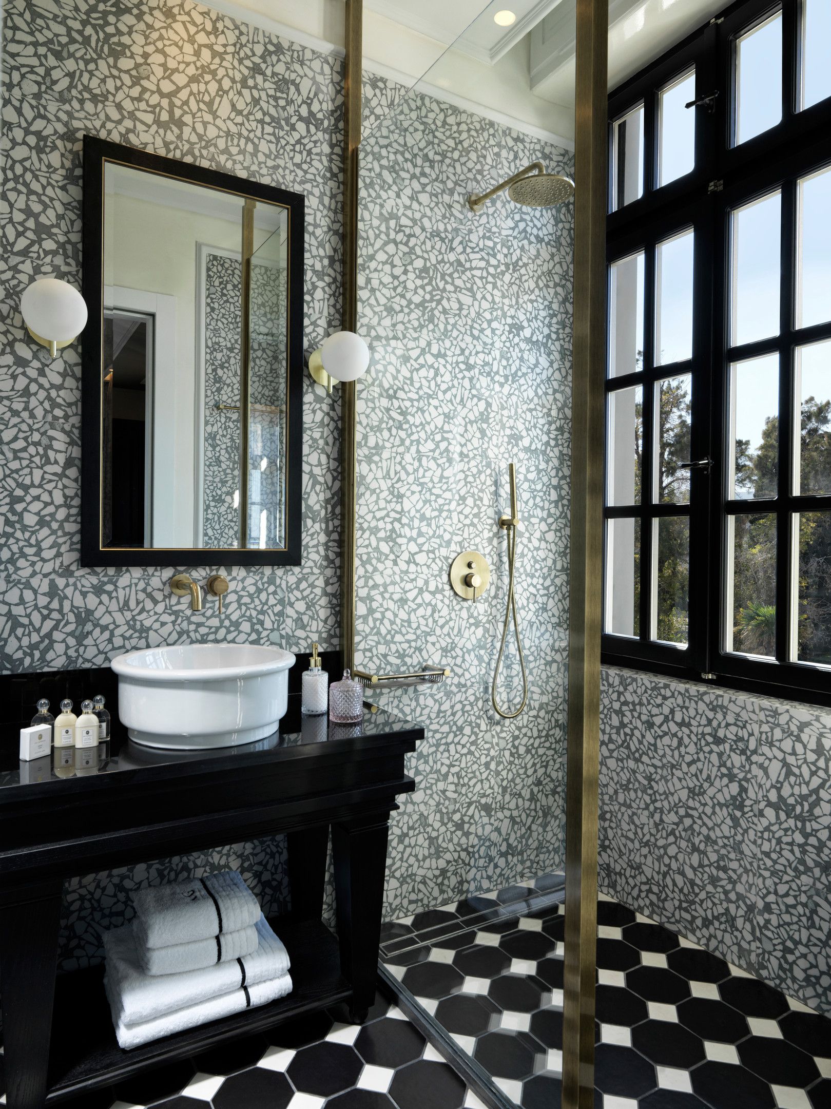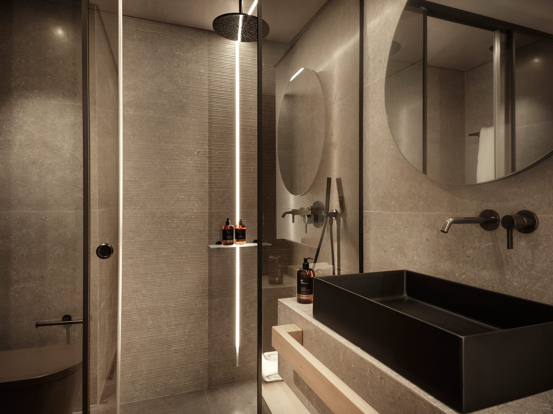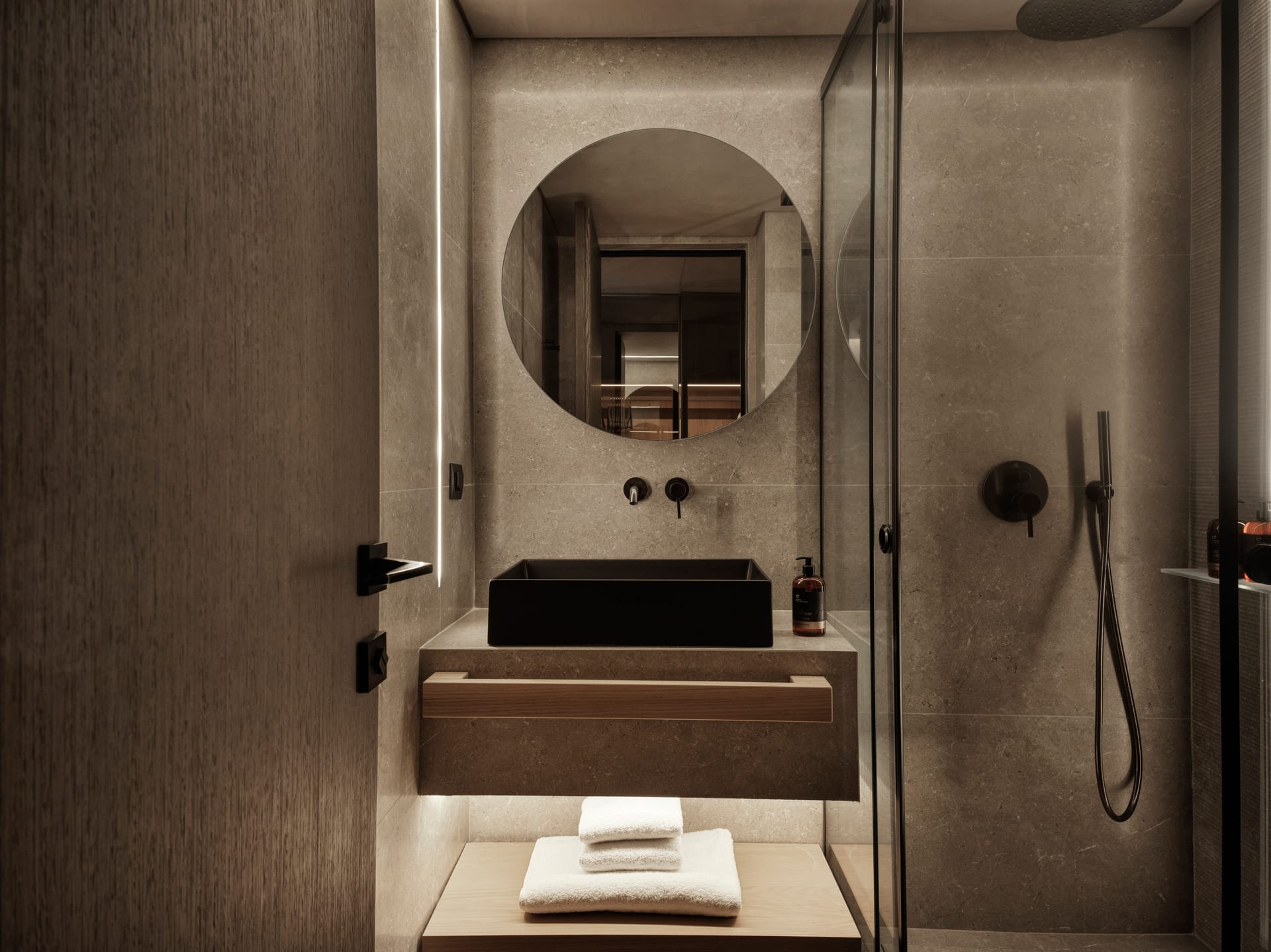 Inside, you'll find two bedrooms: one with a king-size double bed and another with two single beds, ensuring plenty of space and comfort for all guests. The living area is tastefully furnished with a sofa and coffee table, creating a cozy spot to unwind. The en-suite bathroom, equipped with a walk-in rain shower, luxurious bathrobes, slippers, and premium natural Greek toiletries, offers a spa-like experience. Modern conveniences such as a 65-inch LG Smart TV with Netflix, free Wi-Fi, USB charging ports, and an espresso coffee machine with daily restocked capsules ensure your comfort and entertainment throughout your stay.