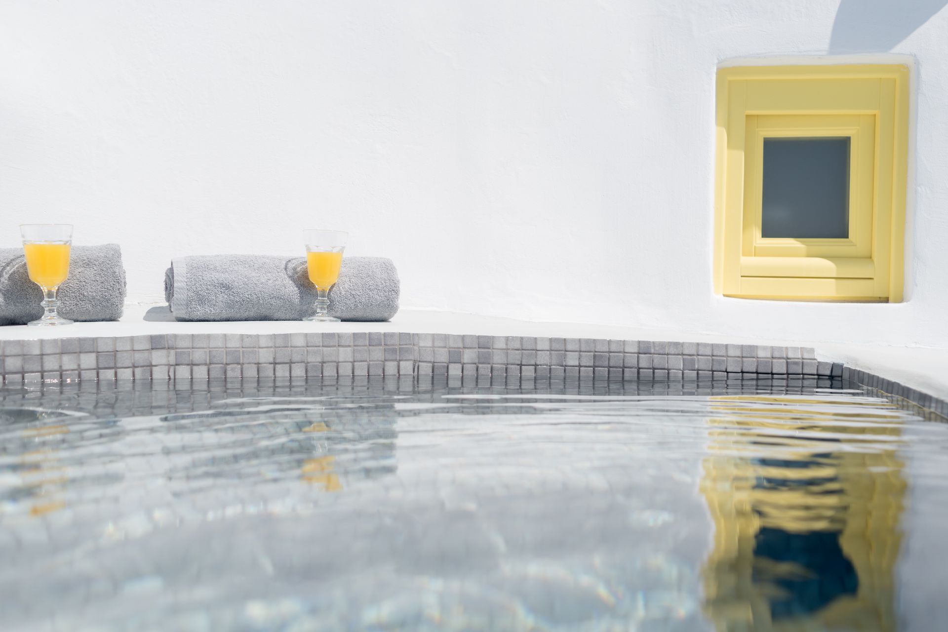 Also, Villa Avra is rather spacious, and its 60sqm can comfortably accommodate up to 5 people. Probably its most impressive spot is the spacious external jacuzzi situated on the terrace. Enjoy breathtaking views of the Caldera and the Aegean Sea with style and in a totally private environment.