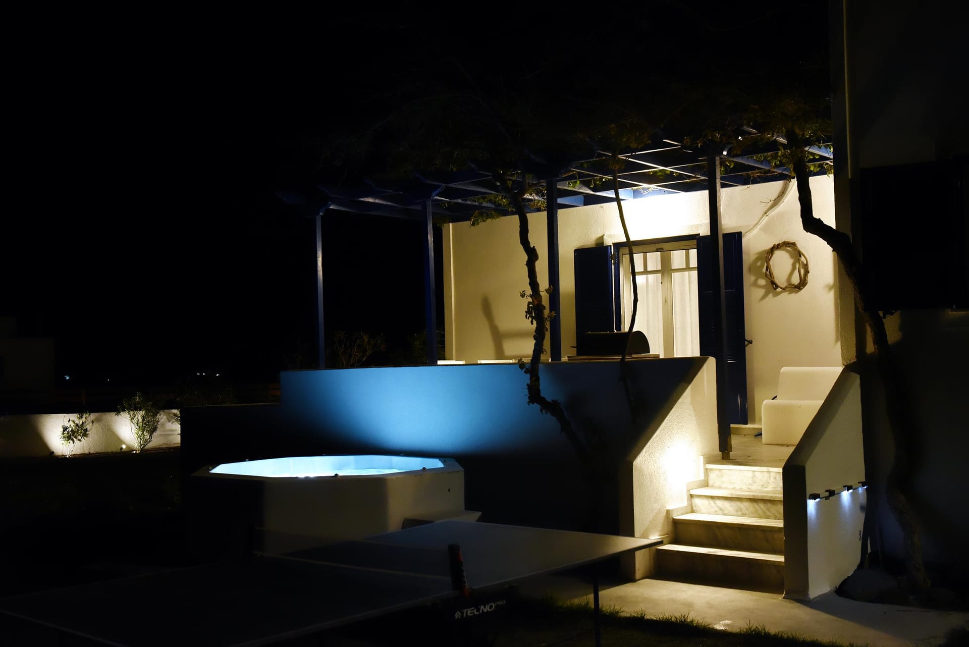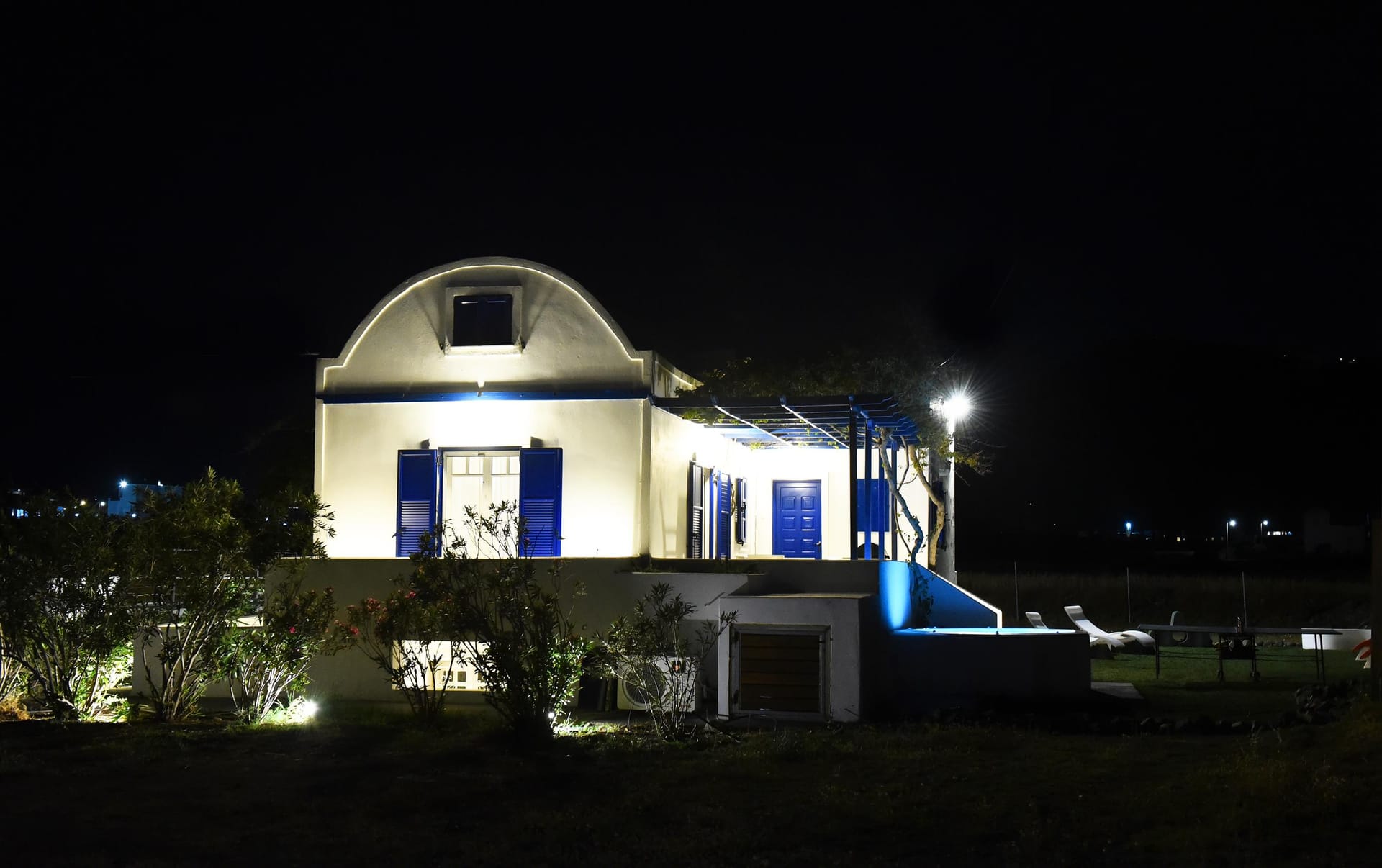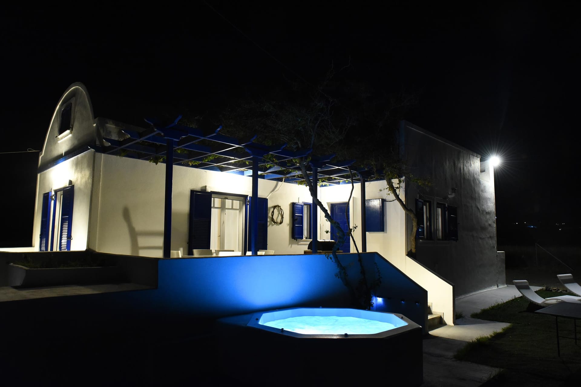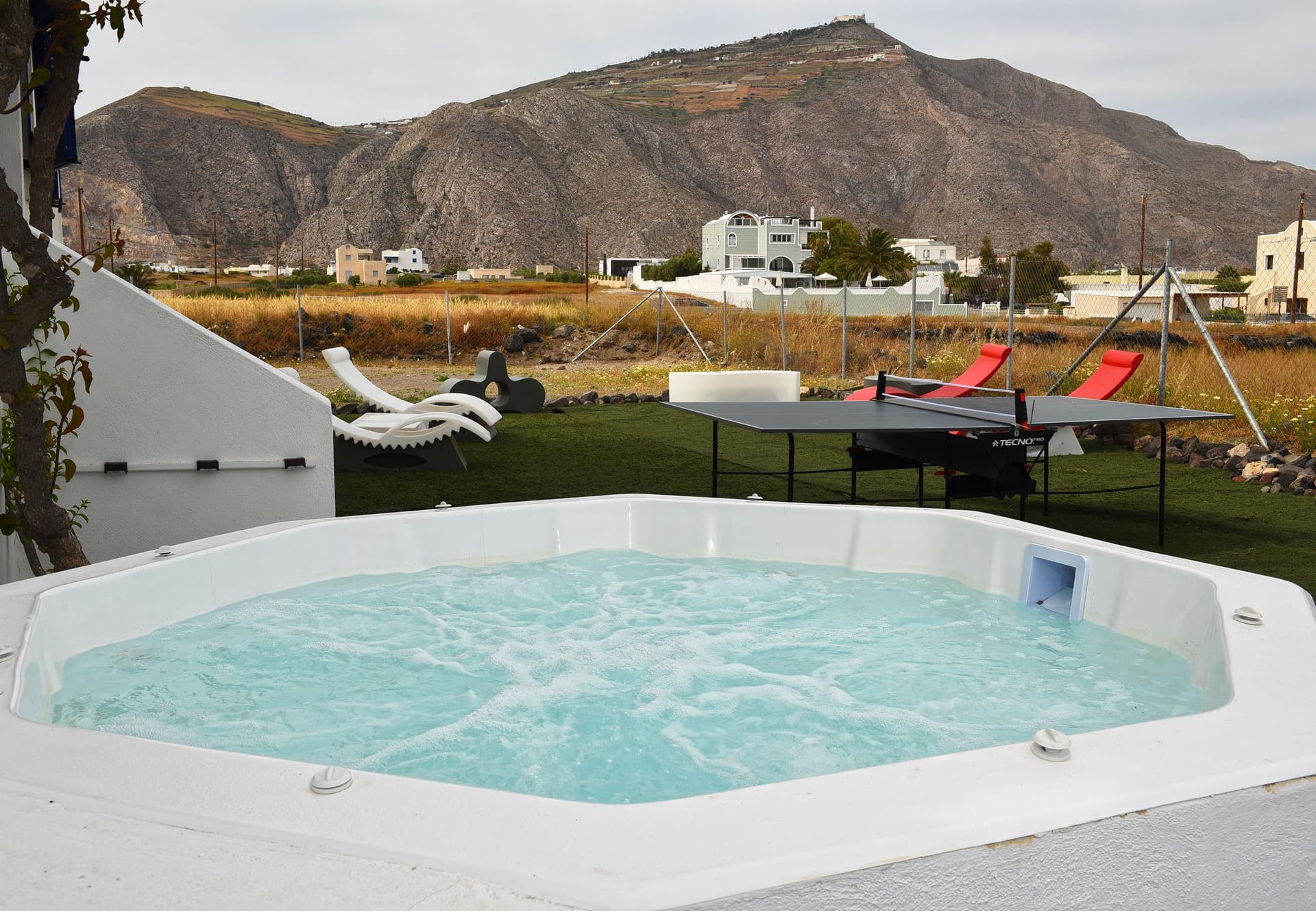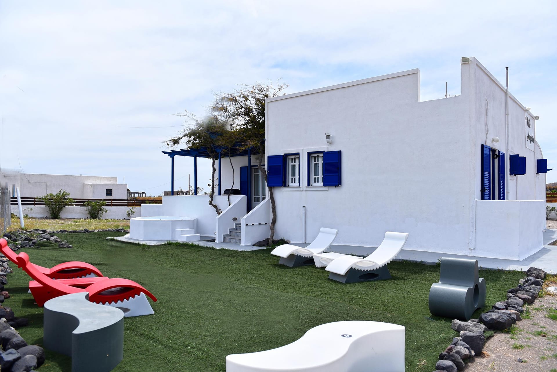 You are most welcome to our newly refurbished villa, of 120 m2, where you can literally feel the volcanic soil in your hands, and feel the energy of the ground! We left the garden area of 1.800m2 intentionally with its original soil, and we only added beautiful plants to grow around the villa, in order to provide to our guests a simple but luxury at the same time stay in the island! Let your children play with the soil of our garden, use our ping-pong table, compete in the table soccer, and relax on our modern sunbeds! There is also 90 m2 ( 920 sq.ft) of artificial grass at the back yard and the Jacuzzi area.