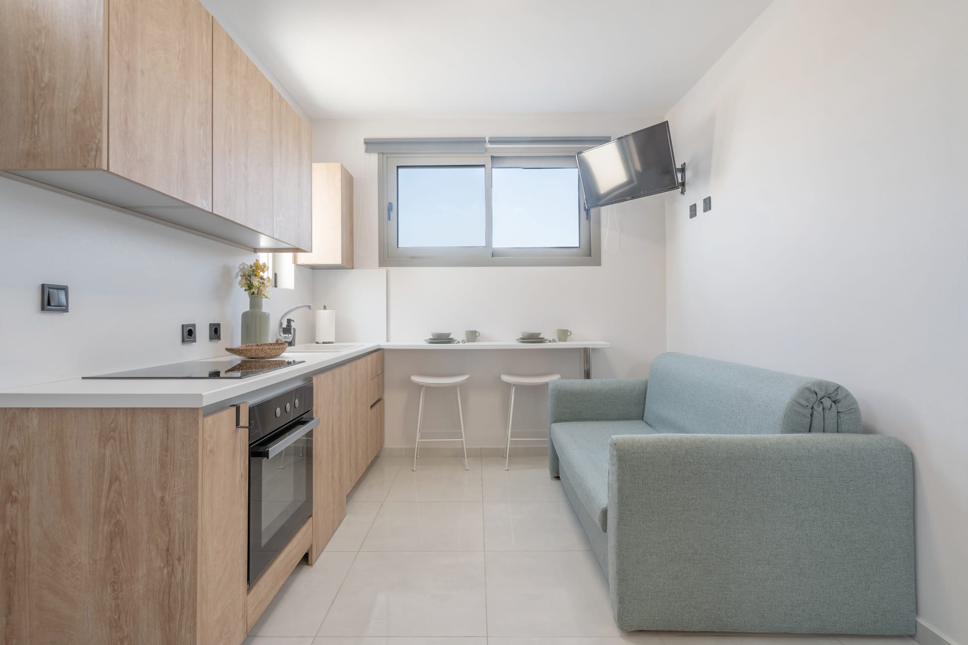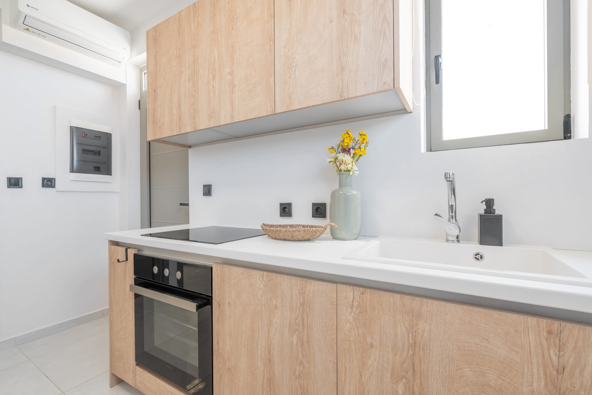 The double bedroom has French doors to the balcony and an en-suite marble bathroom. The twin bedroom enjoys sea views and use of a nearby shower room. Two balconies, including a large rear-facing one with dining furniture and sun loungers, make this the perfect spot to relax and soak up the Mediterranean sunshine.