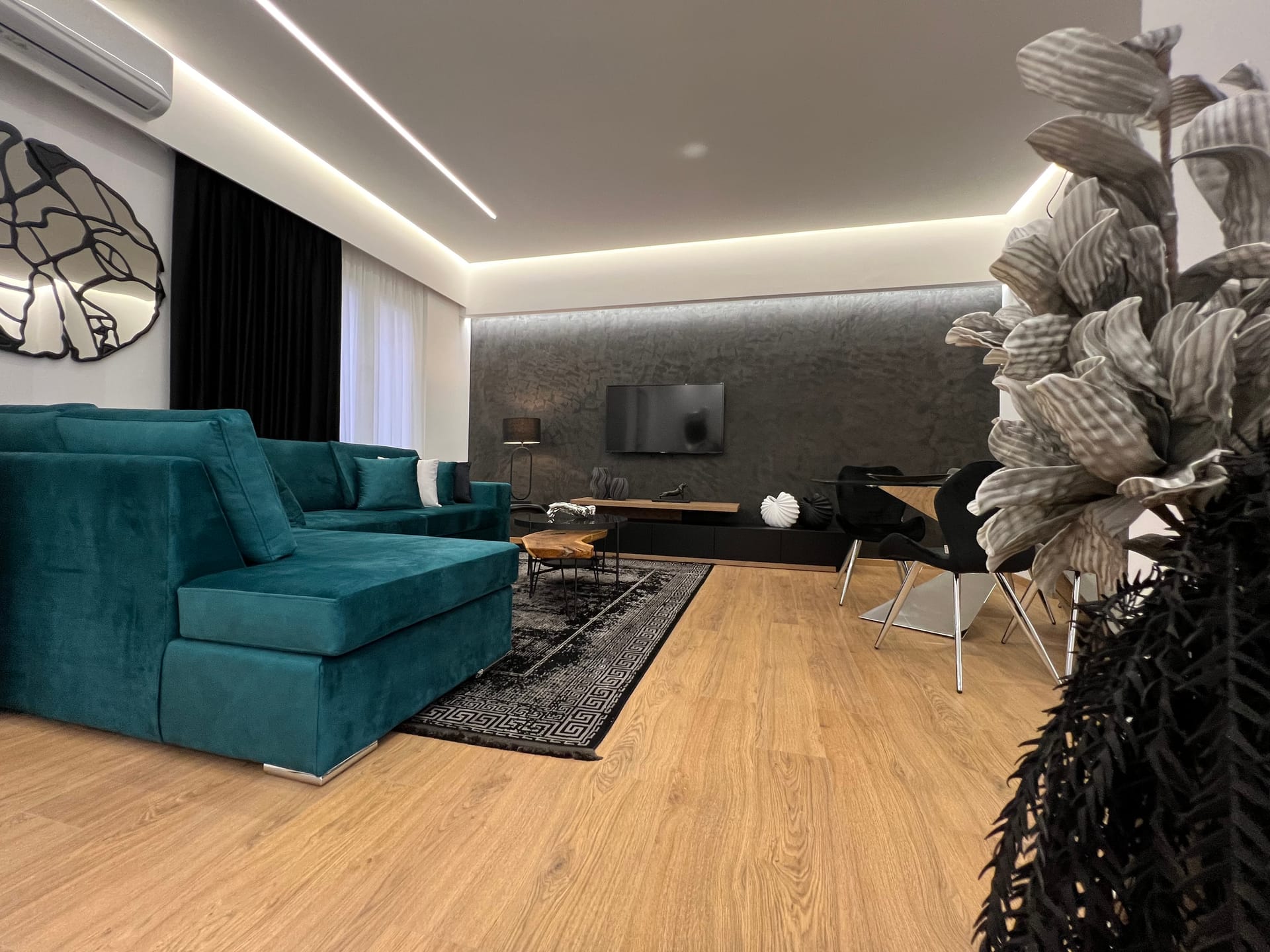This delightful ground-floor, two-bedroom apartment is located in the prestigious Apollo Heights village within Aphrodite Hills Resort. The open-plan living and dining area is bright and inviting, featuring a fully equipped modern kitchen and comfortable seating for four, ideal for meals and relaxation.