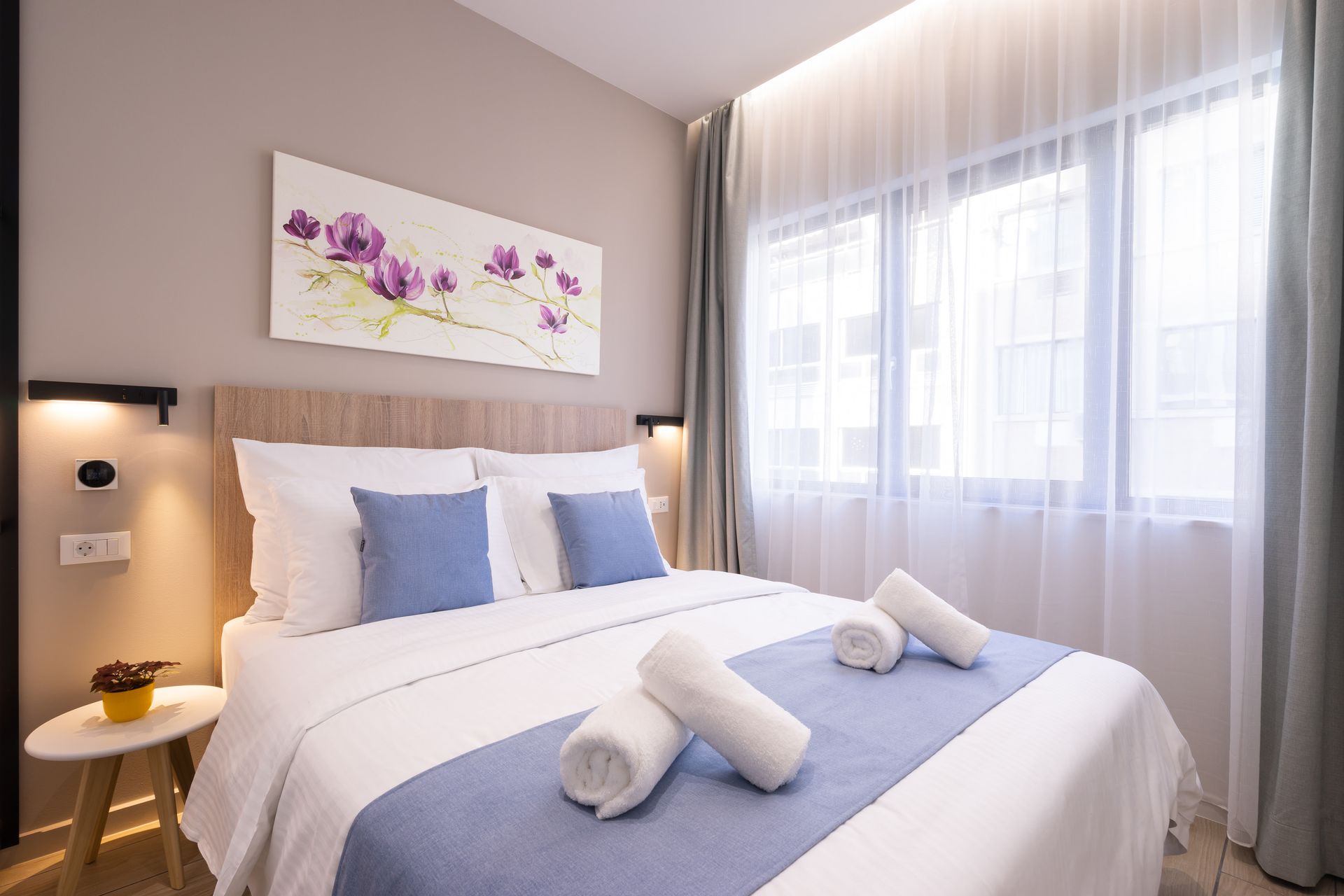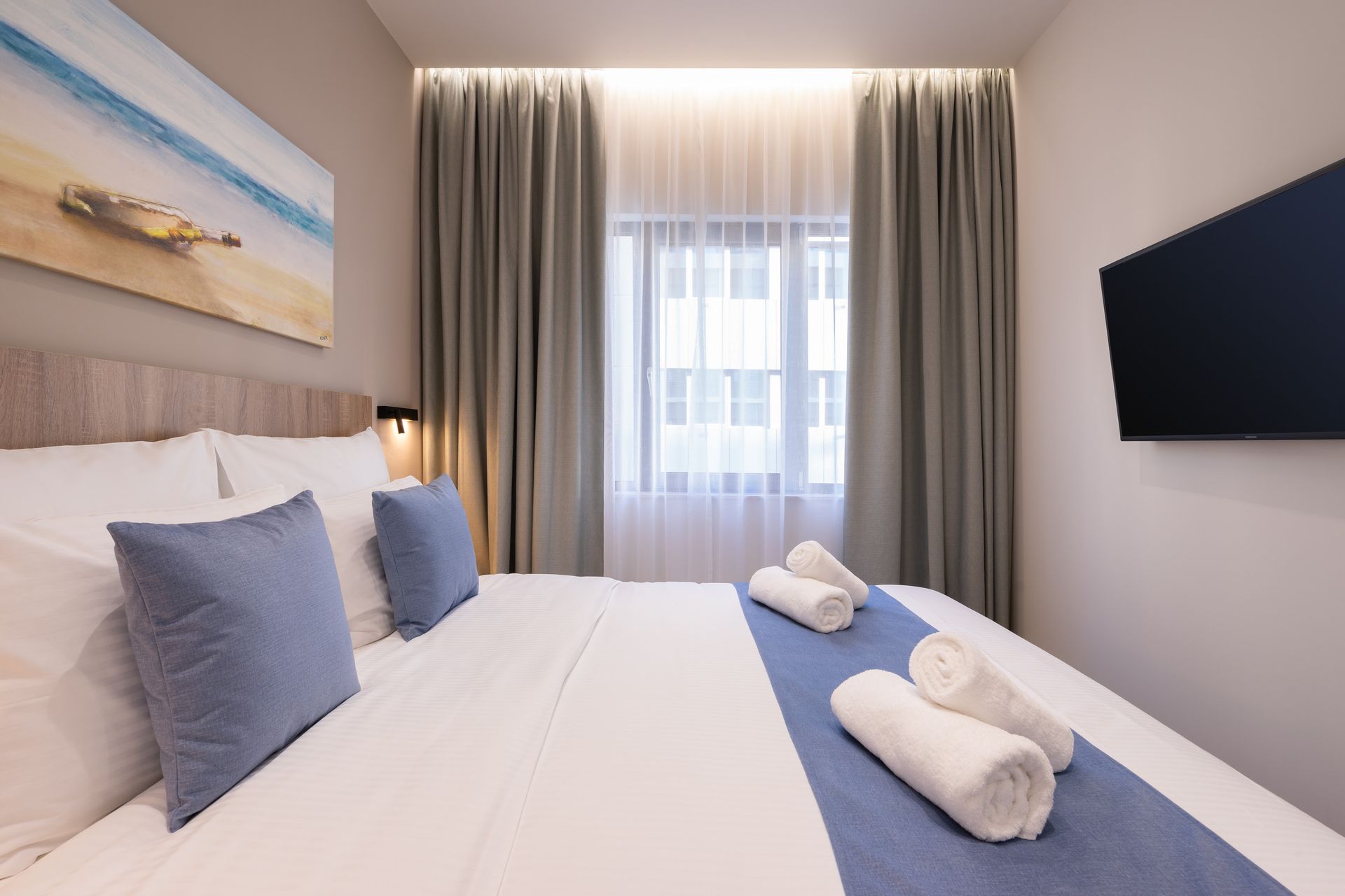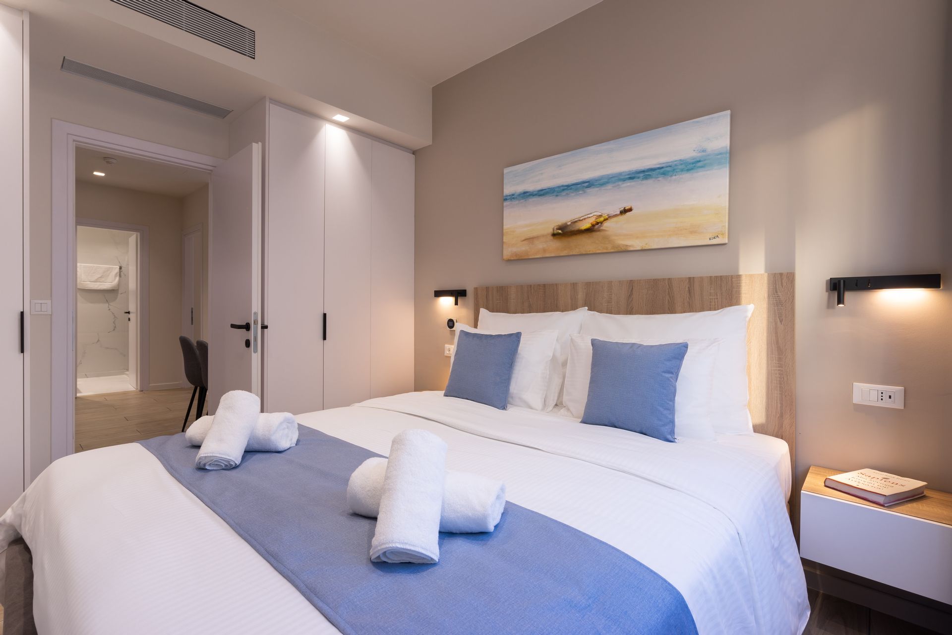 This modern two-bedroom apartment in Zephyros Village offers spacious living and a large terrace with panoramic mountain, valley, and sea views,perfect for families or two couples. It’s just steps from the communal pool and within easy reach of all resort amenities.