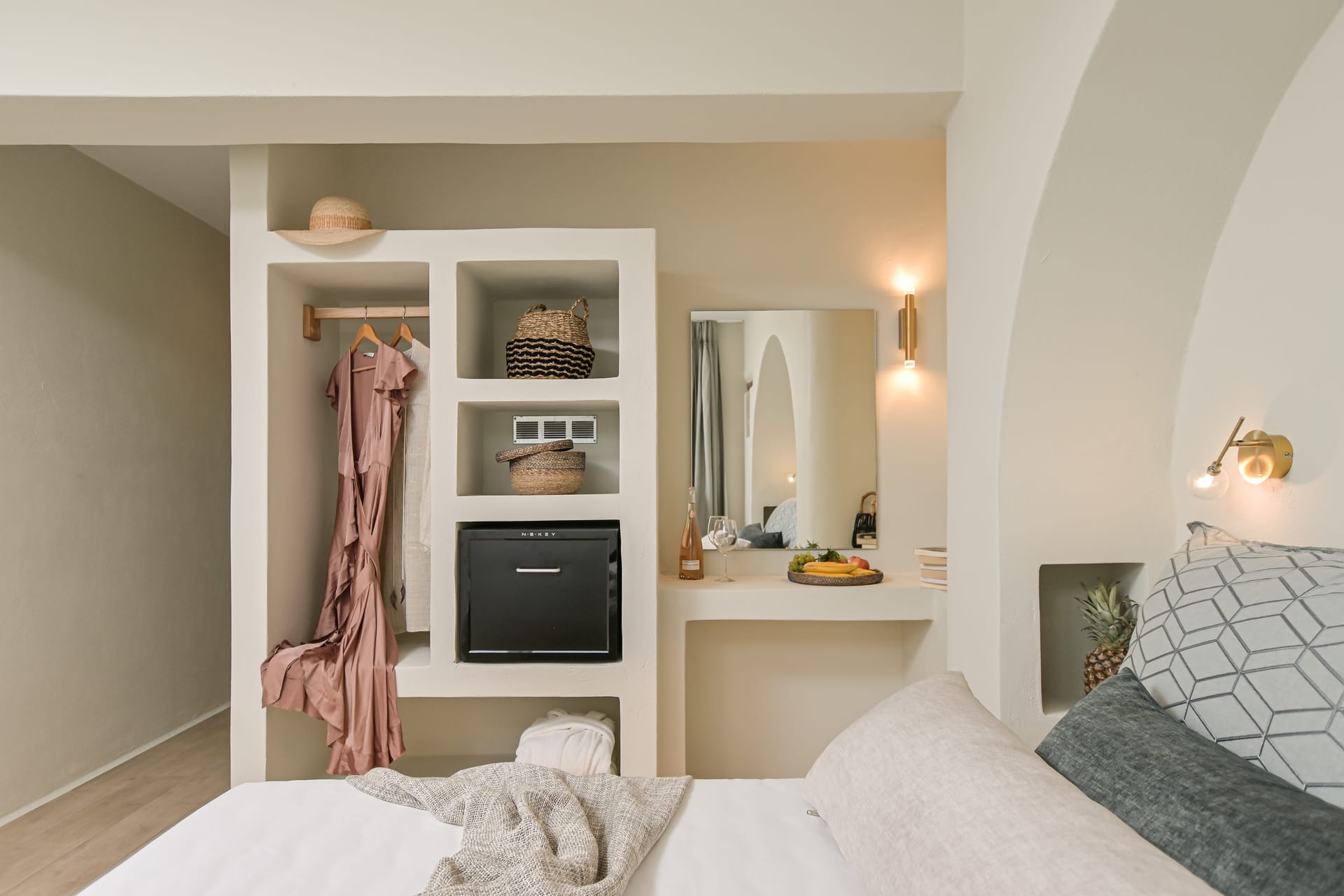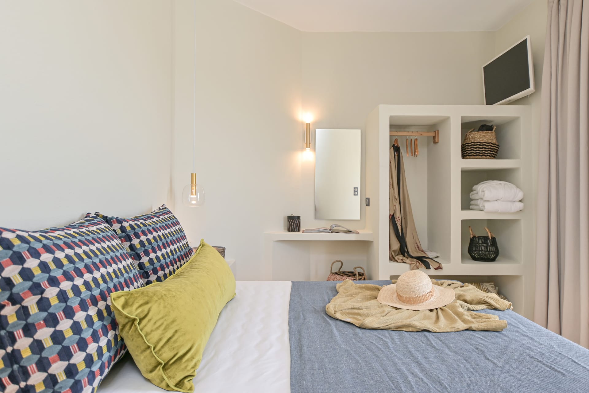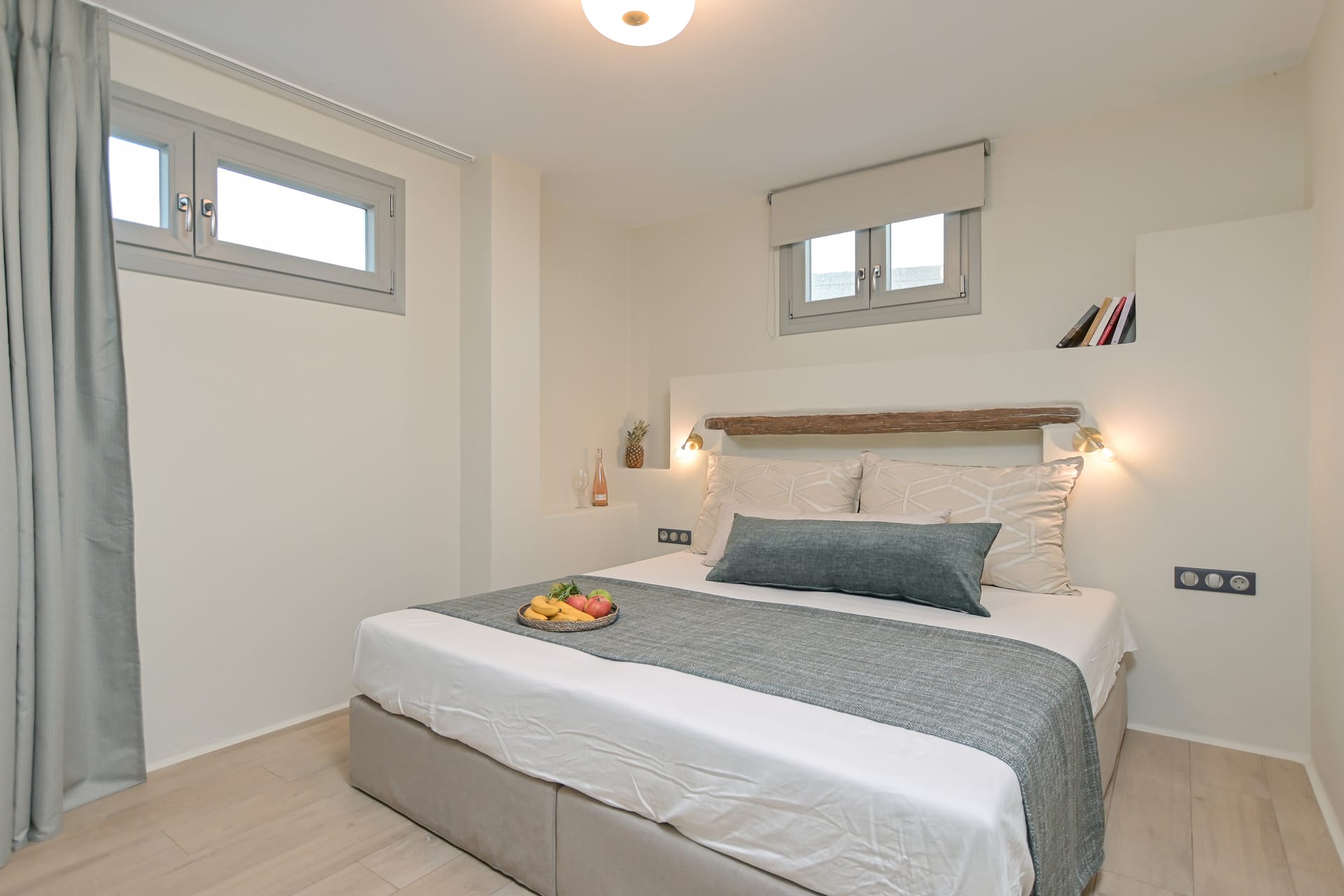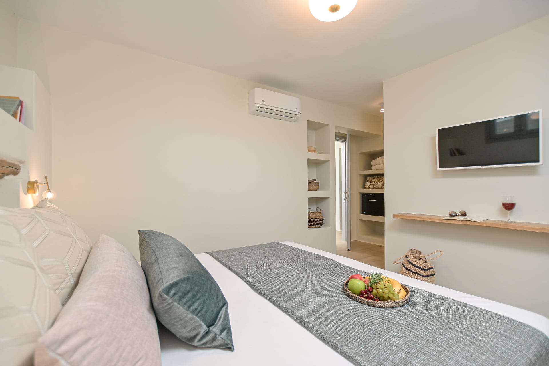Its privileged location, with a direct and unobstructed sea view, is a strong point to visit. It offers absolute peace, due to its privacy, enjoying the guests a truly relaxing holiday. The villa’s owner is Kiriaki. Armelina Villa’s story goes back to Kiriaki’s grandmother’s sister, who was named Armelina and owned the plot of land where Armelina Villa is situated today. The aesthetics of the space is inspired by the bright summer sunlight, the blue of the Aegean Sea, and the nature of Naxos Island. The villa can be rented as a whole property. With 6 bedrooms and 6 baths, Armelina Villa is ideal for gathering a group of friends or family together with enough space for everyone to relax, offering views of the Aegean Sea and the unique sunset of the Cyclades.