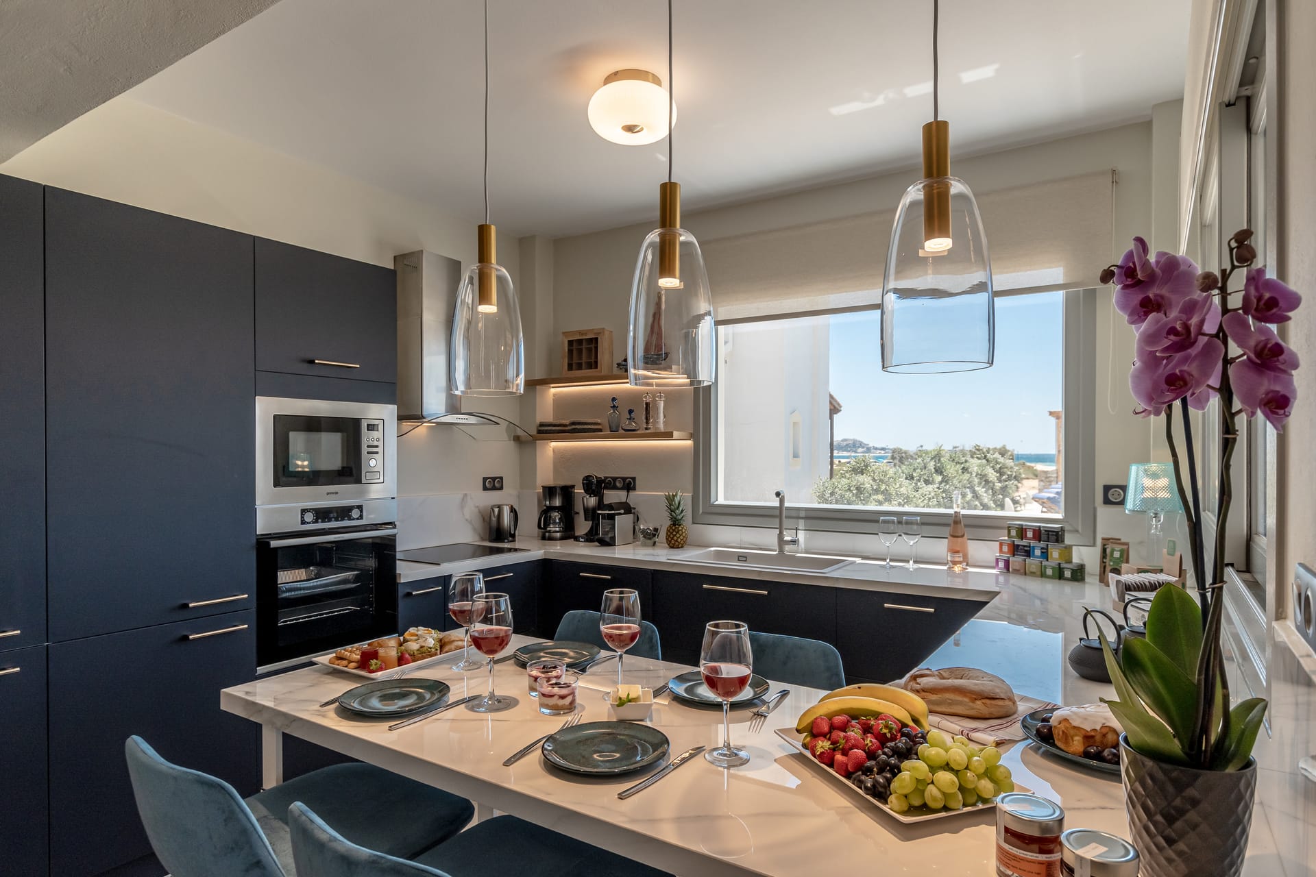 On the ground floor, there is a fully equipped kitchen and a lounge where our guests can relax and choose unique wines from the villa's wine cellar. Also, the villa offers a private garden with an outdoor dining area. There is a pool and dining area seating for 12 people. There are two Outdoor dining spaces. One outdoor dining area with a gas-fire BBQ (Weber) Kitchenette with a pergola, and one outdoor dining area with a pergola by the pool.