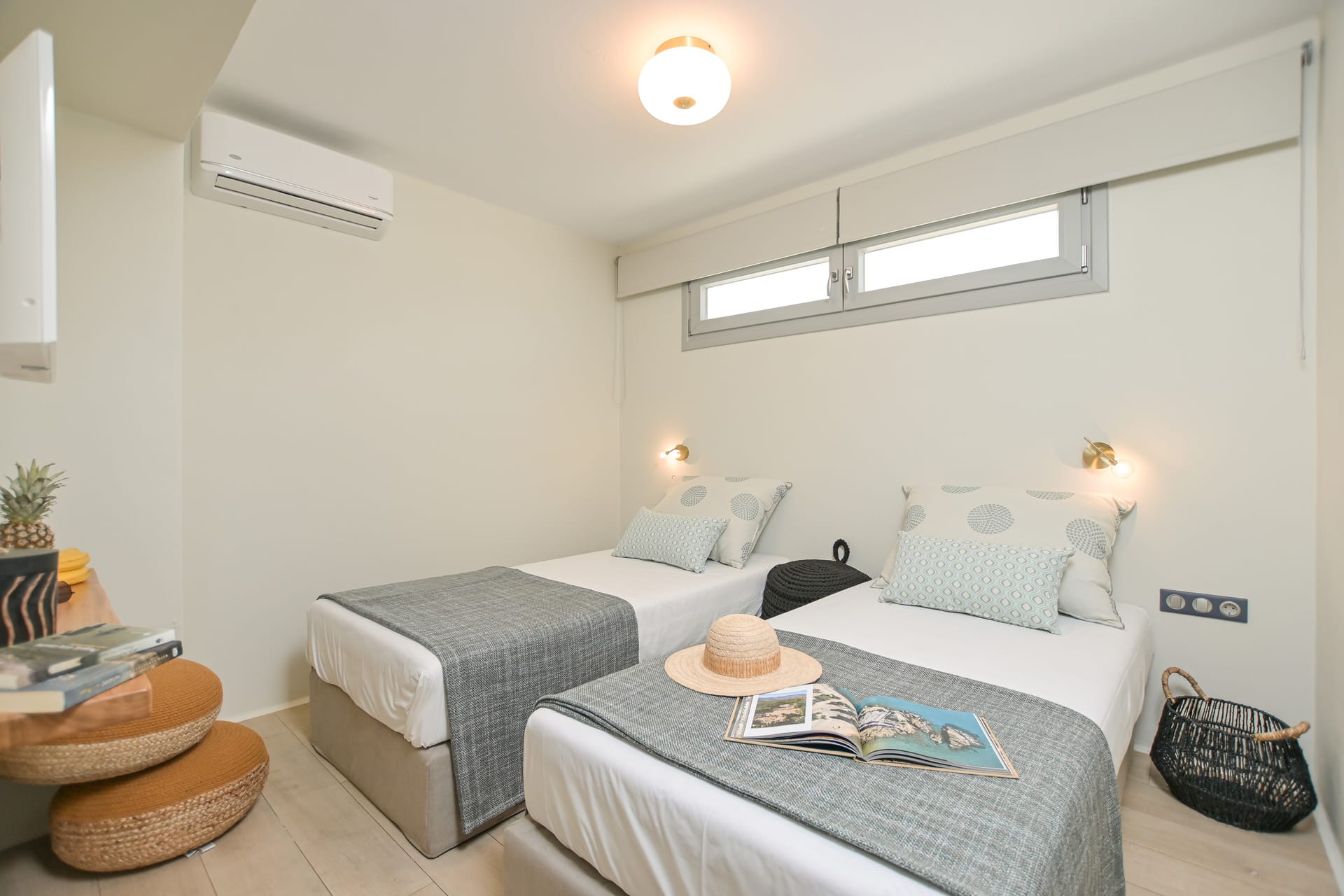 In the basement, there are three bedrooms, creating an additional possibility for large groups to enjoy our accommodation with their friends and/or their families. There are two bedrooms with two single beds, which can be joined to make a double bed if you wish, and a bedroom with a double bed.