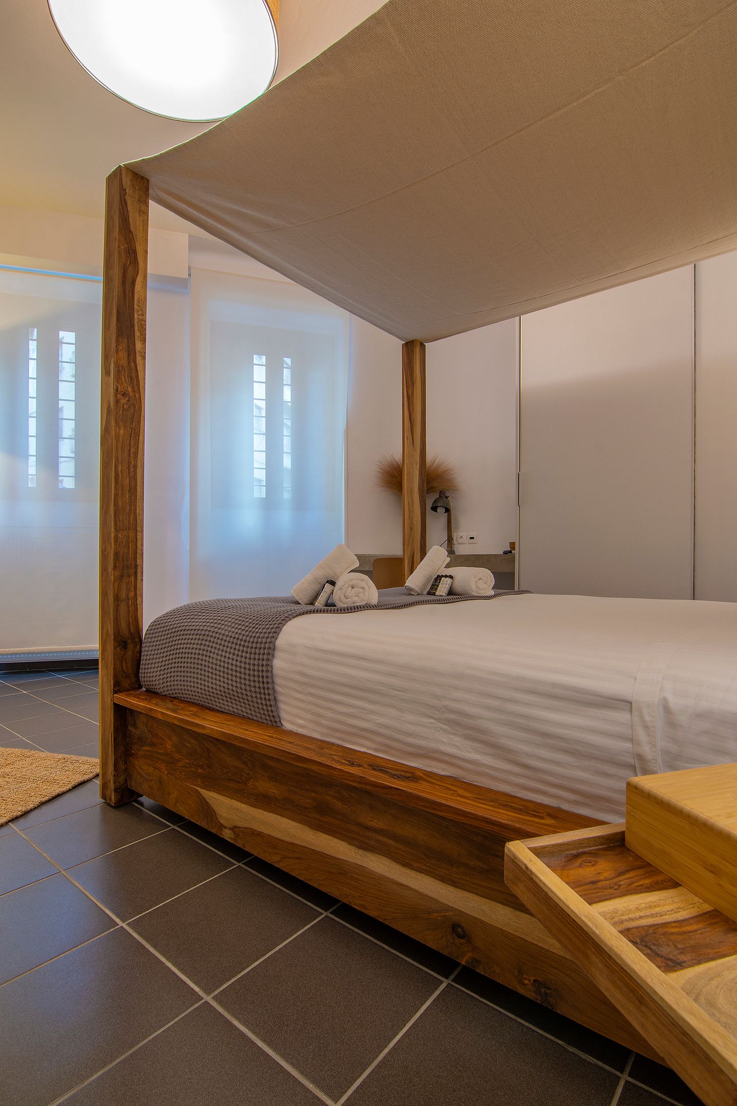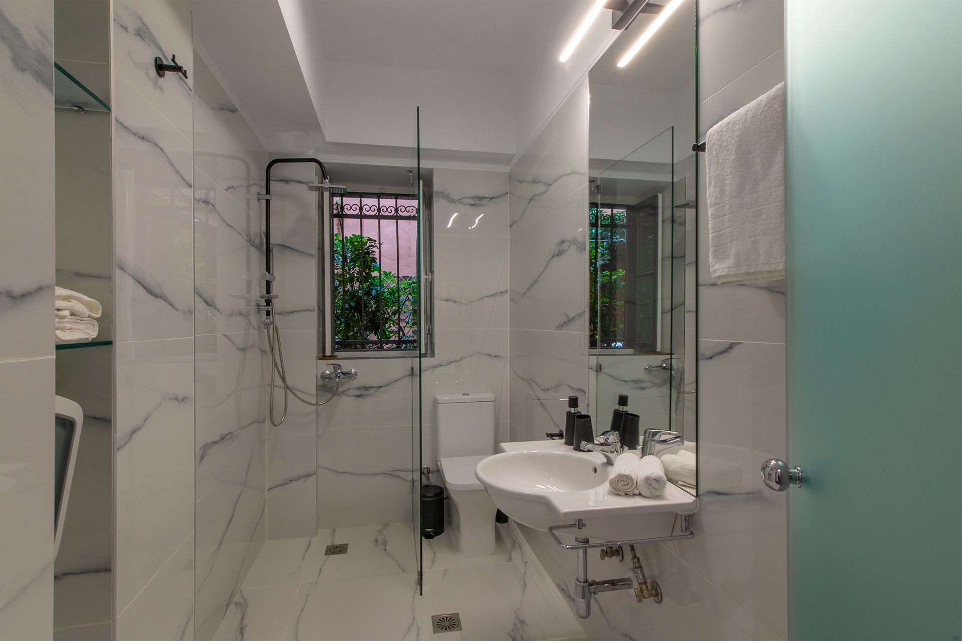 It consists of an entire floor with it's own entrance and has 3 bedrooms, a large living room with dining area, 3 full bathrooms, a fully equipped kitchen and an exclusive courtyard garden. Please note the furnishings are brand new and premium quality with some restored vintage pieces thrown in. Some of the provided amenities are washer-dryer, Coco-Mat mattresses, large flat screen TV's, complimentary toiletries and high-speed WiFi (100 Mbps network) ideal for working from the house.