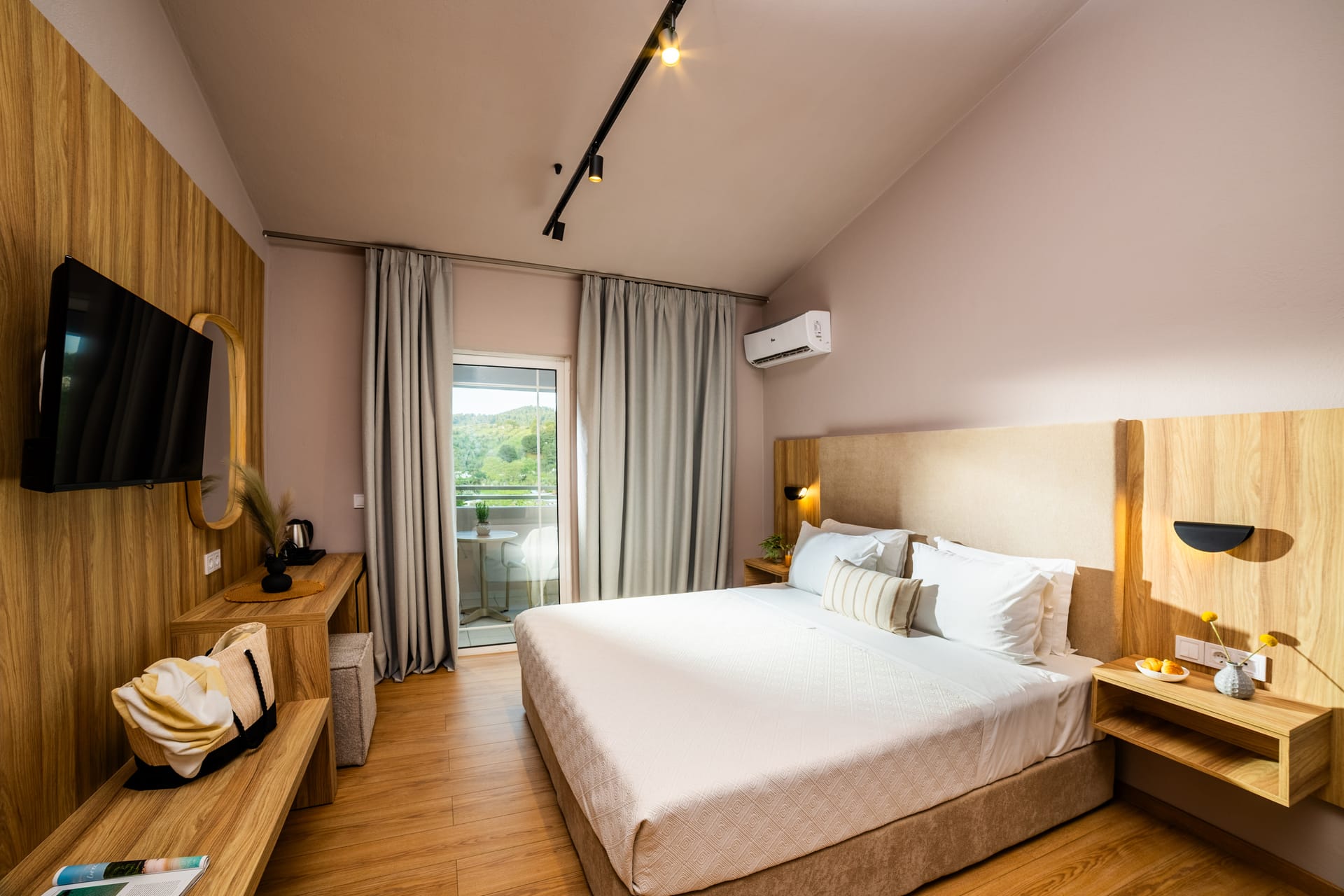House no 1. It is located at the top of the houses on the right side. The guest can enjoy a fantastic view of the entire area of Aspros Potamos.