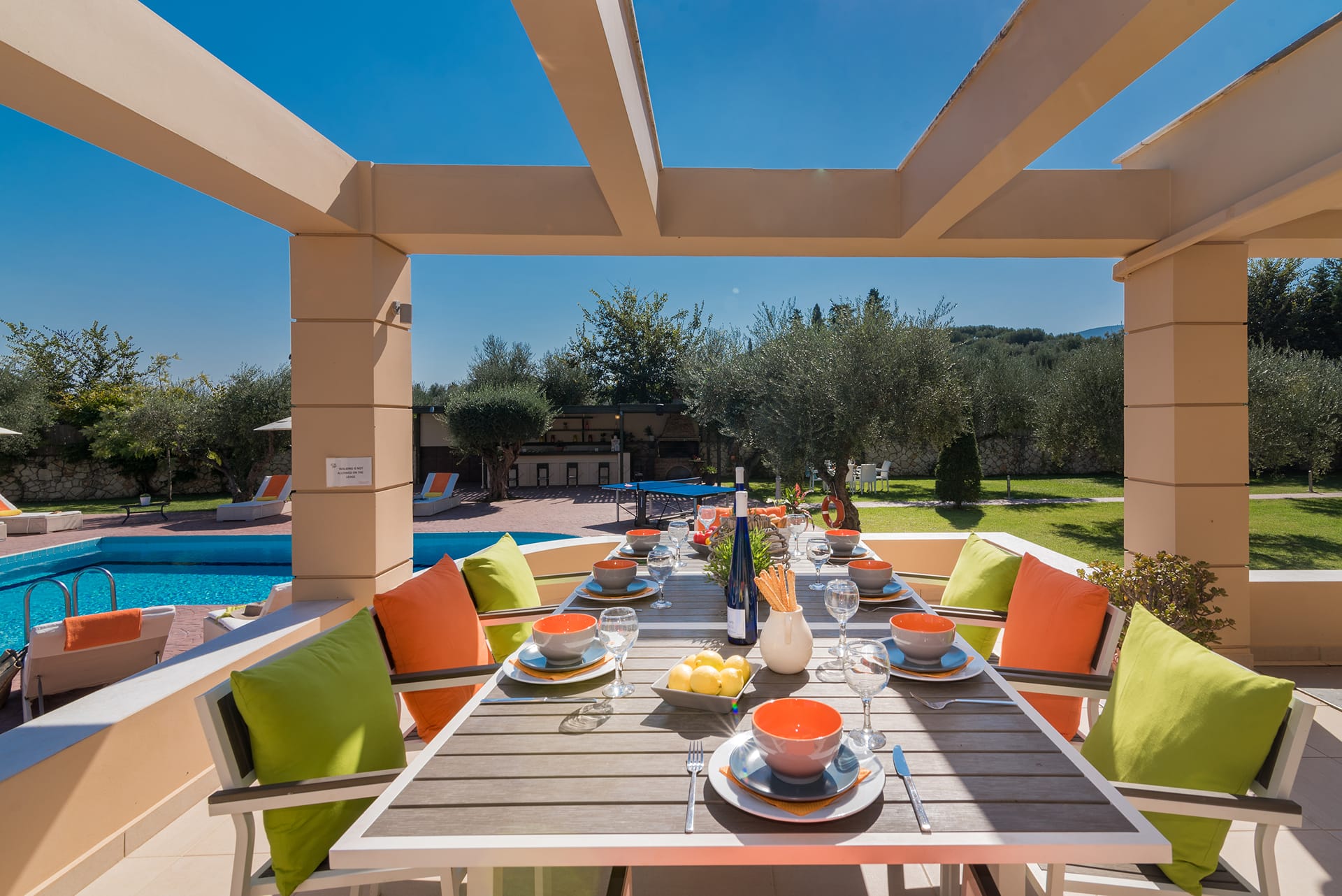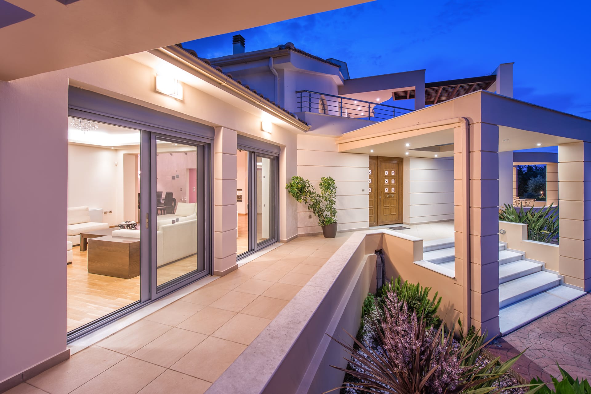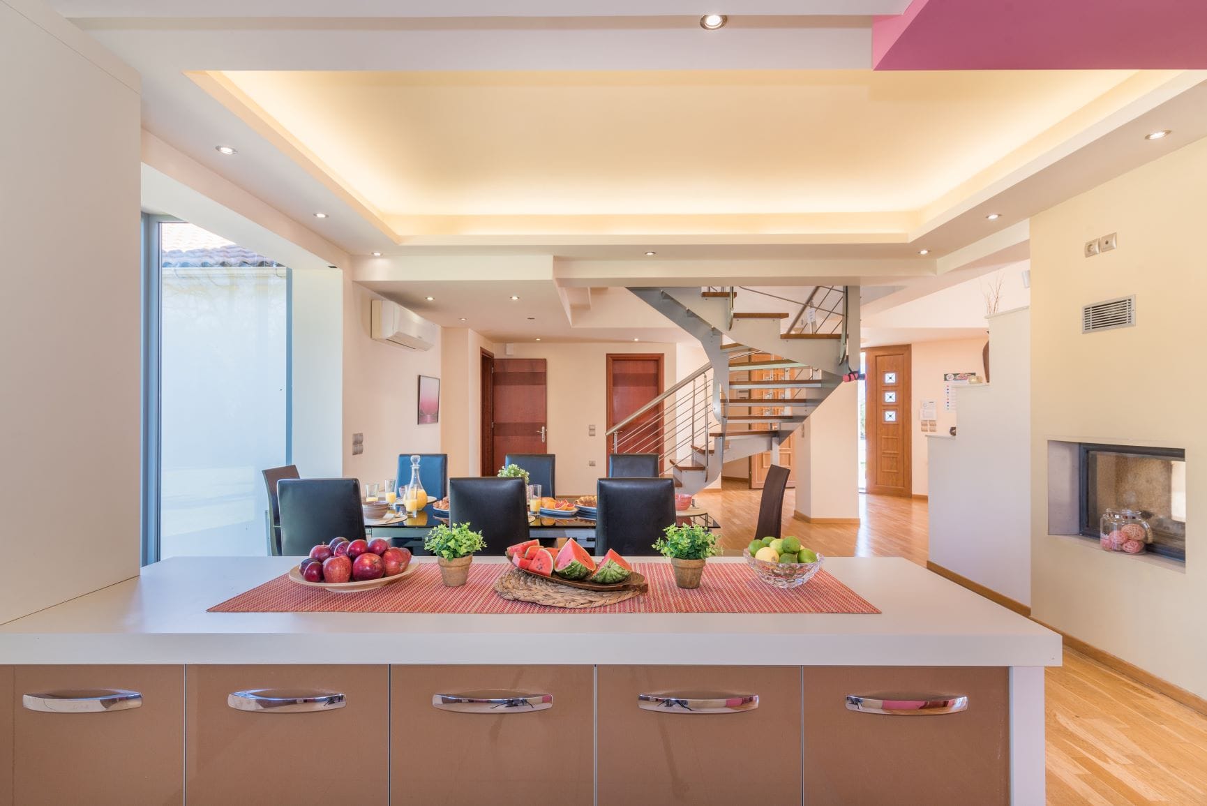 The main entrance of the Villa has a remotely controlled gate, offering privacy & a secure stay! Olive trees & paths onsite are ideally for walking through the day or relaxing in the garden under the trees.