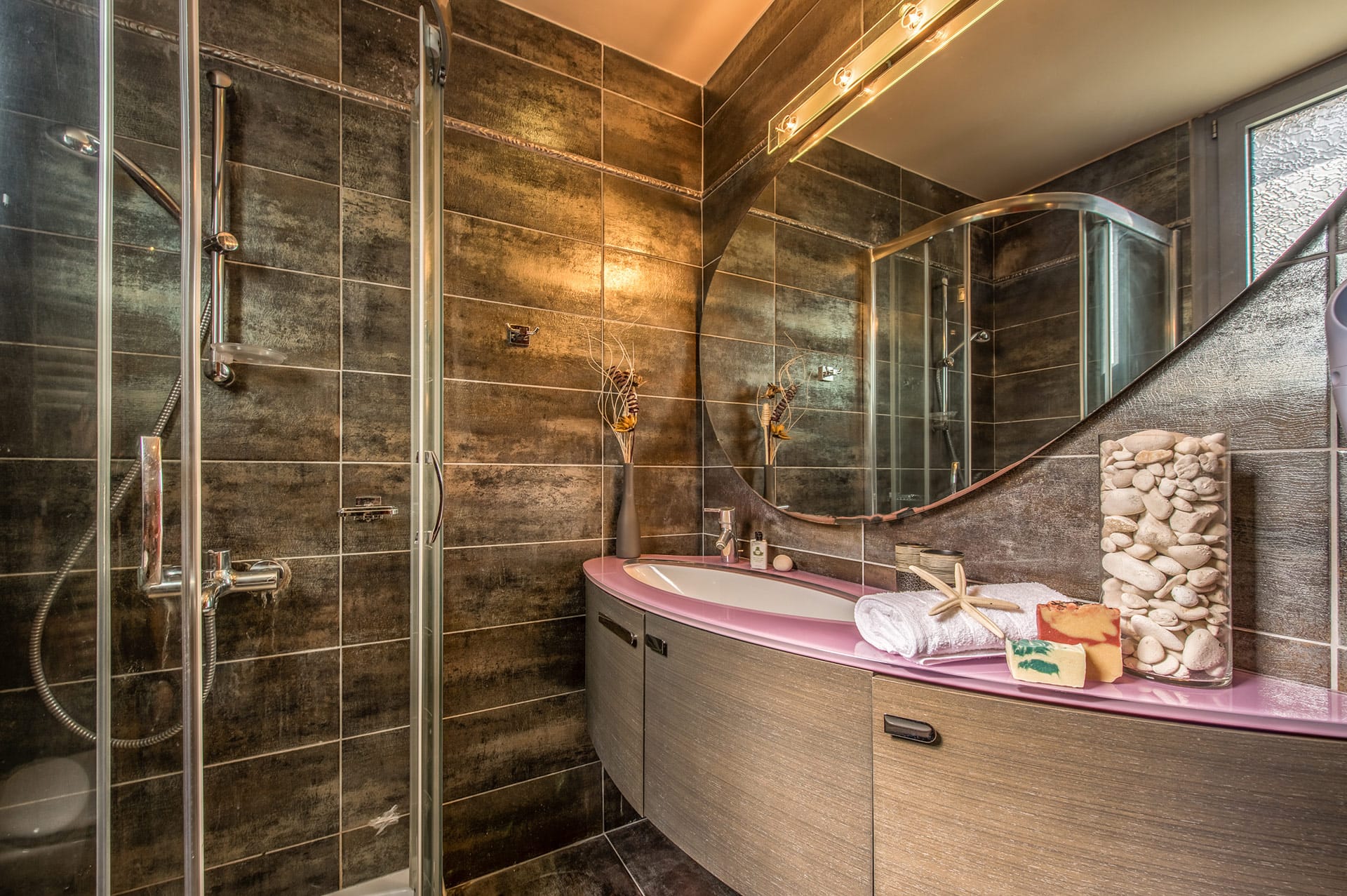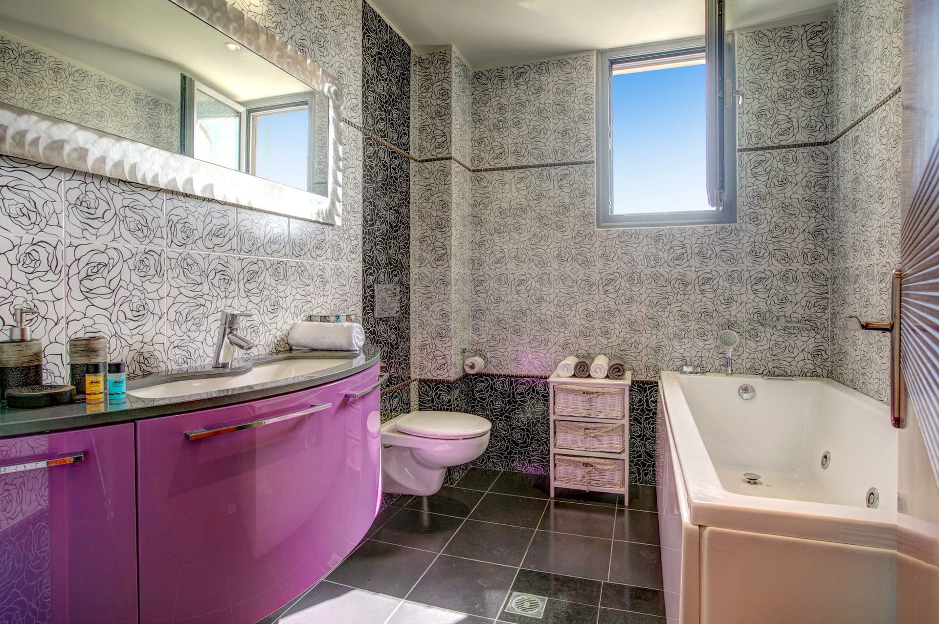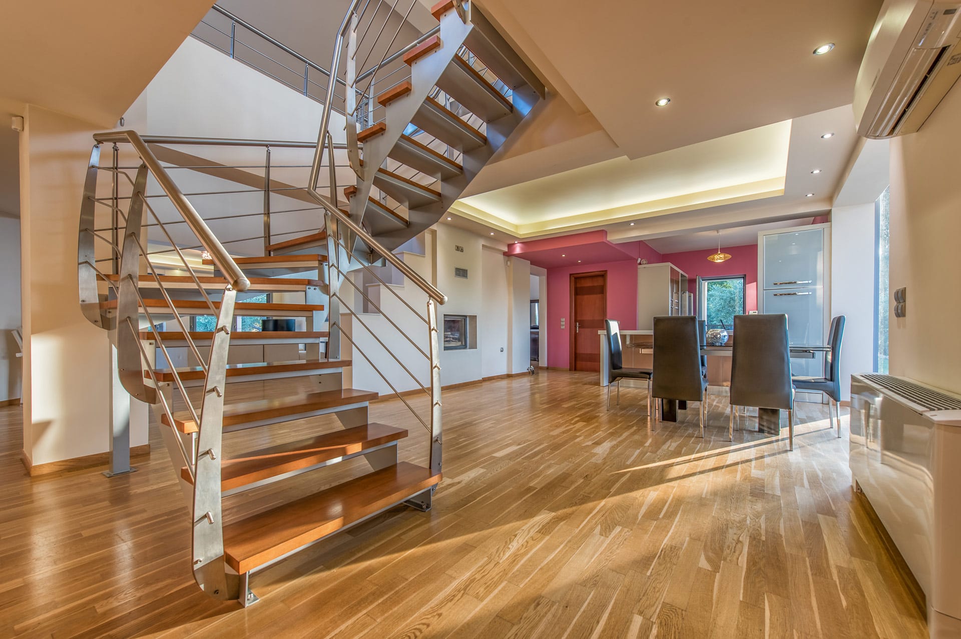 On the main floor the villa has spacious living-rooms, dining rooms & fully equipped kitchen with a fireplace, four bedrooms with En-suite bathrooms and a staircase that leads to the luxurious living room, with a view of the green surroundings. It has independent heating on every floor, A/C, Wi- Fi, storage-room with a washing machine, as well as a billiard. On the first froor you may find 1 double sofa bed!