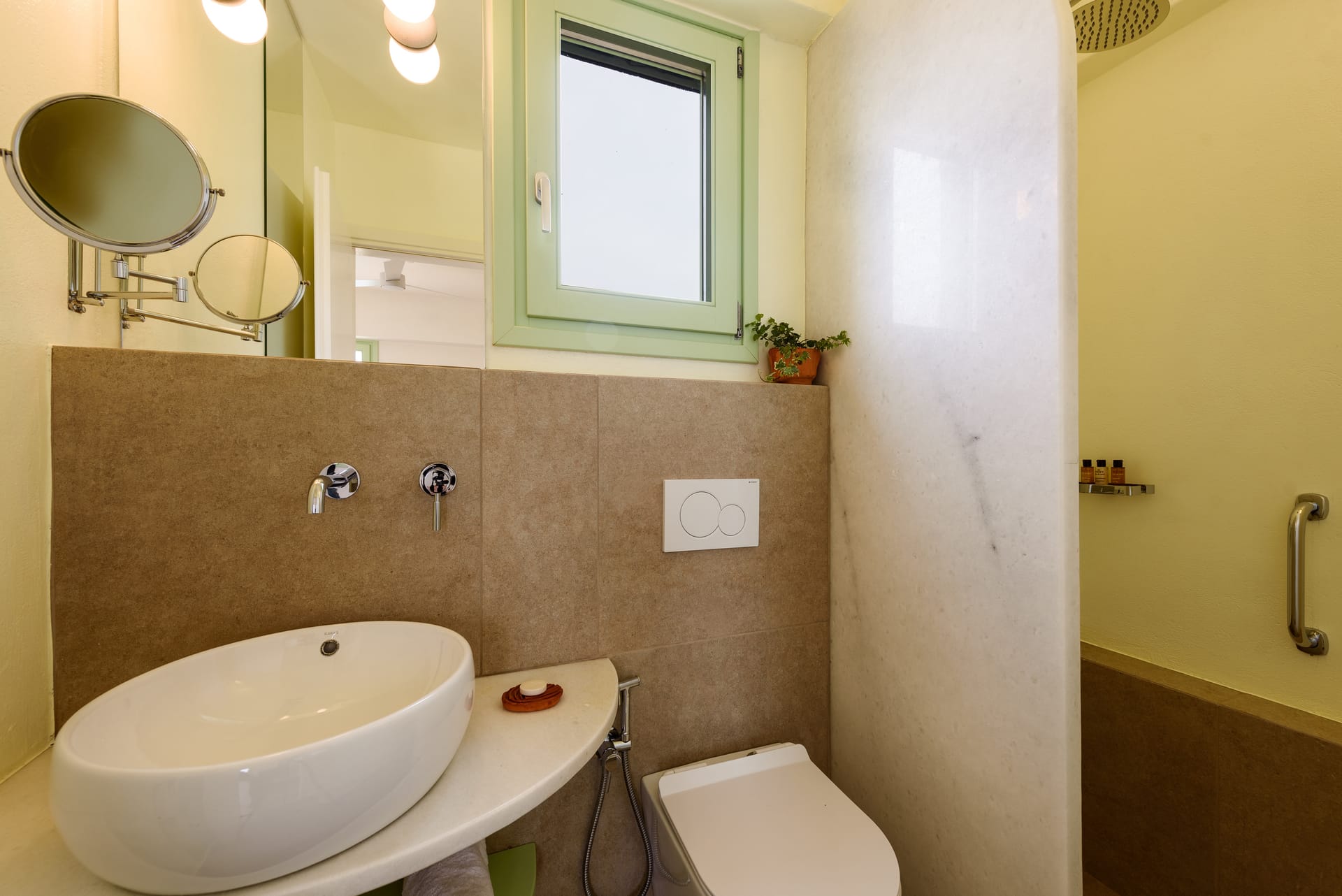Whether it is a Deluxe Double Room, Standard Double Rooms, Standard Twin Room, Junior Suite with balcony, or Two Bedroom Suite, every room will make you feel at home. Perfect for long stays, the 12 rooms are more like apartments, most with new kitchenettes, and living and dining spaces. Areas as well as sunny workspaces. Fitted with parquet floors and well-chosen furnishings in neutral tones, all rooms, suites, and apartments at Athenian Spirit are equipped with A/C, flat-screen TV, safe, and free WiFi. Plus, each bathroom includes a revitalizing walk-in shower or waterfall shower cabin.