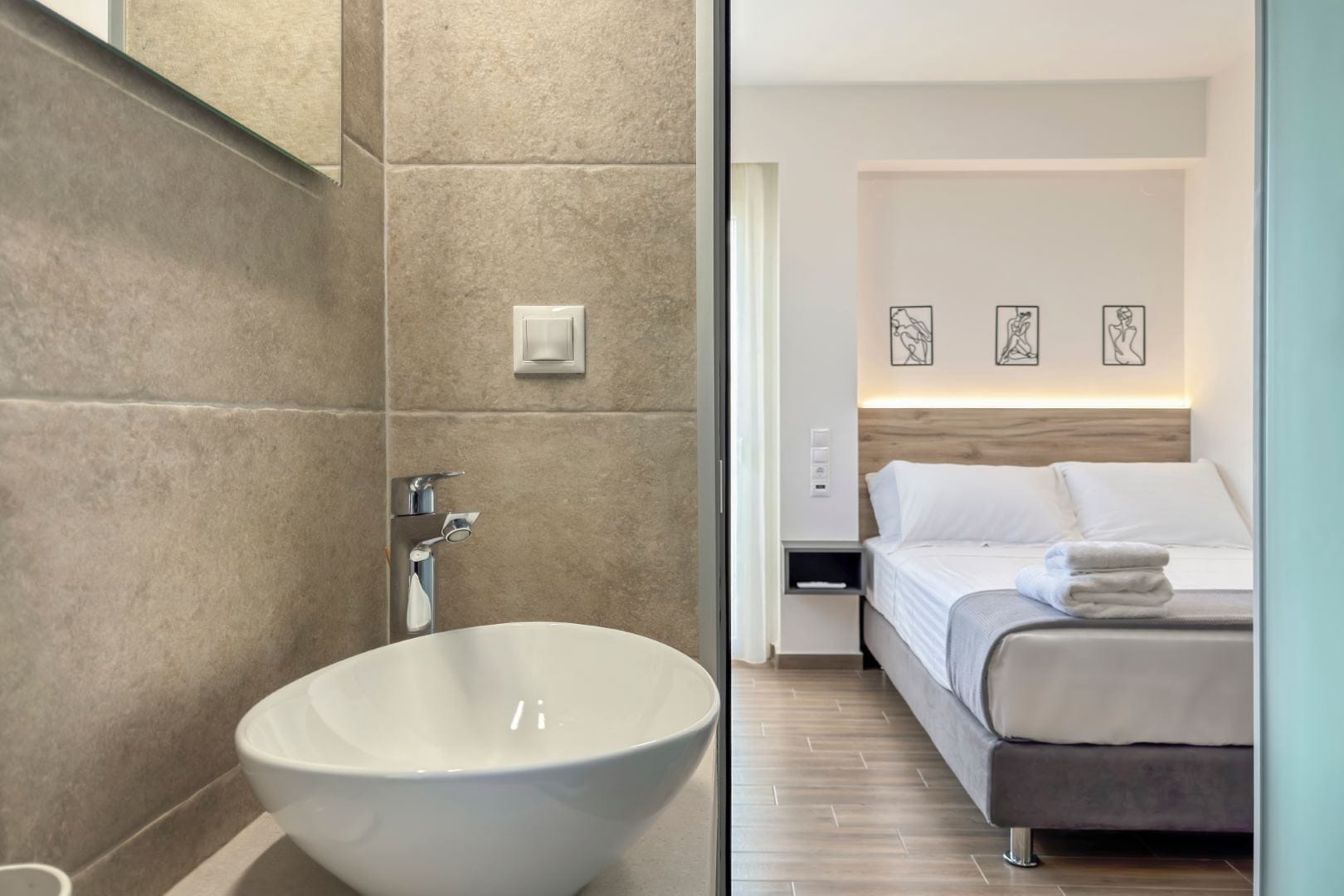 The villa is close to various amenities, including supermarkets, pharmacies, and other local shops within walking or a short driving distance, adding to the ease of your stay. For those interested in exploring beyond the city, AéNaos is near the National Road, allowing for quick trips to Crete’s picturesque beaches, such as Platanias, known for its lively restaurants and nightlife. With its homely feel and prime location, AéNaos Luxury Villa is an ideal base for discovering the best of Chania and Crete’s stunning landscapes.