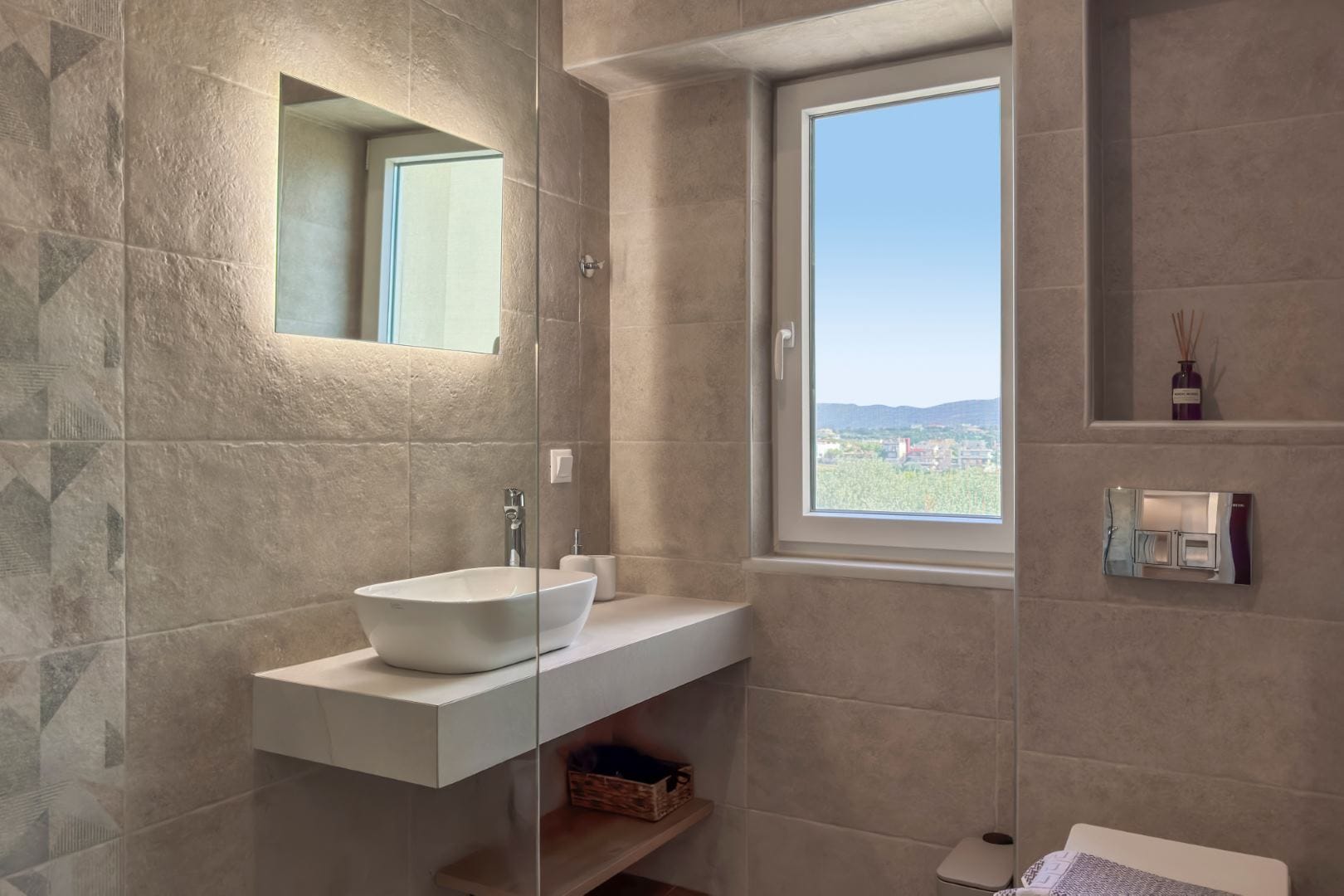 AéNaos Luxury Villa, situated in the serene neighborhood of Galatas, offers a perfect blend of peace and convenience, providing guests with easy access to Chania’s key attractions. Located just 15 minutes from Chania’s historic center, this villa allows guests to effortlessly explore the city’s vibrant markets, charming tavernas, and notable sights.