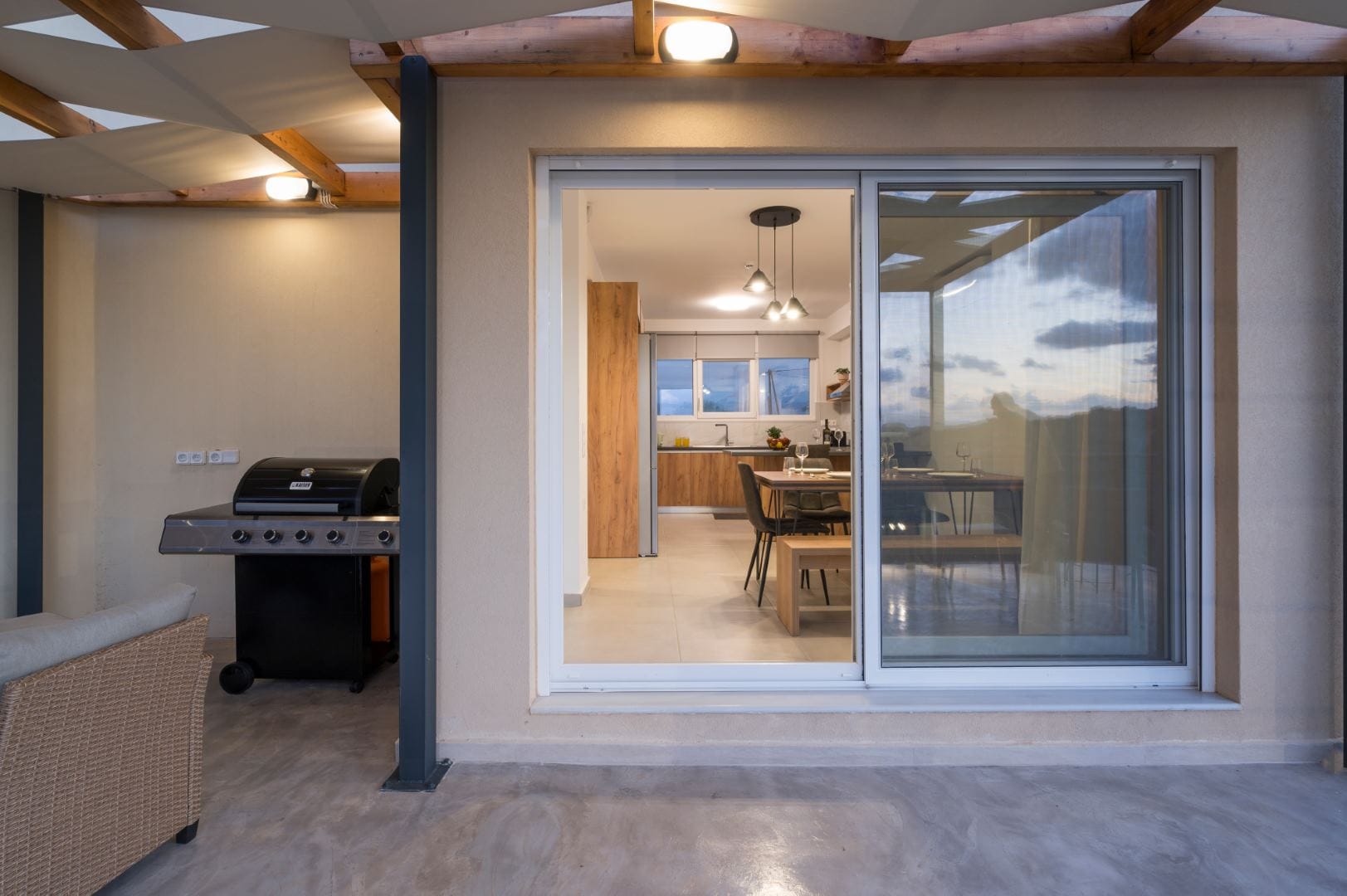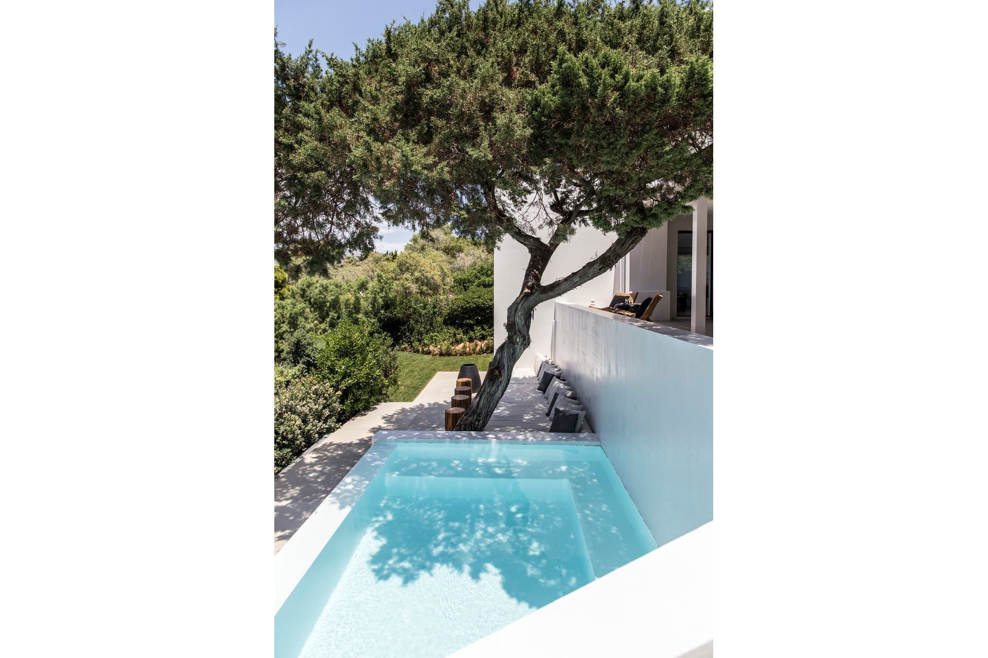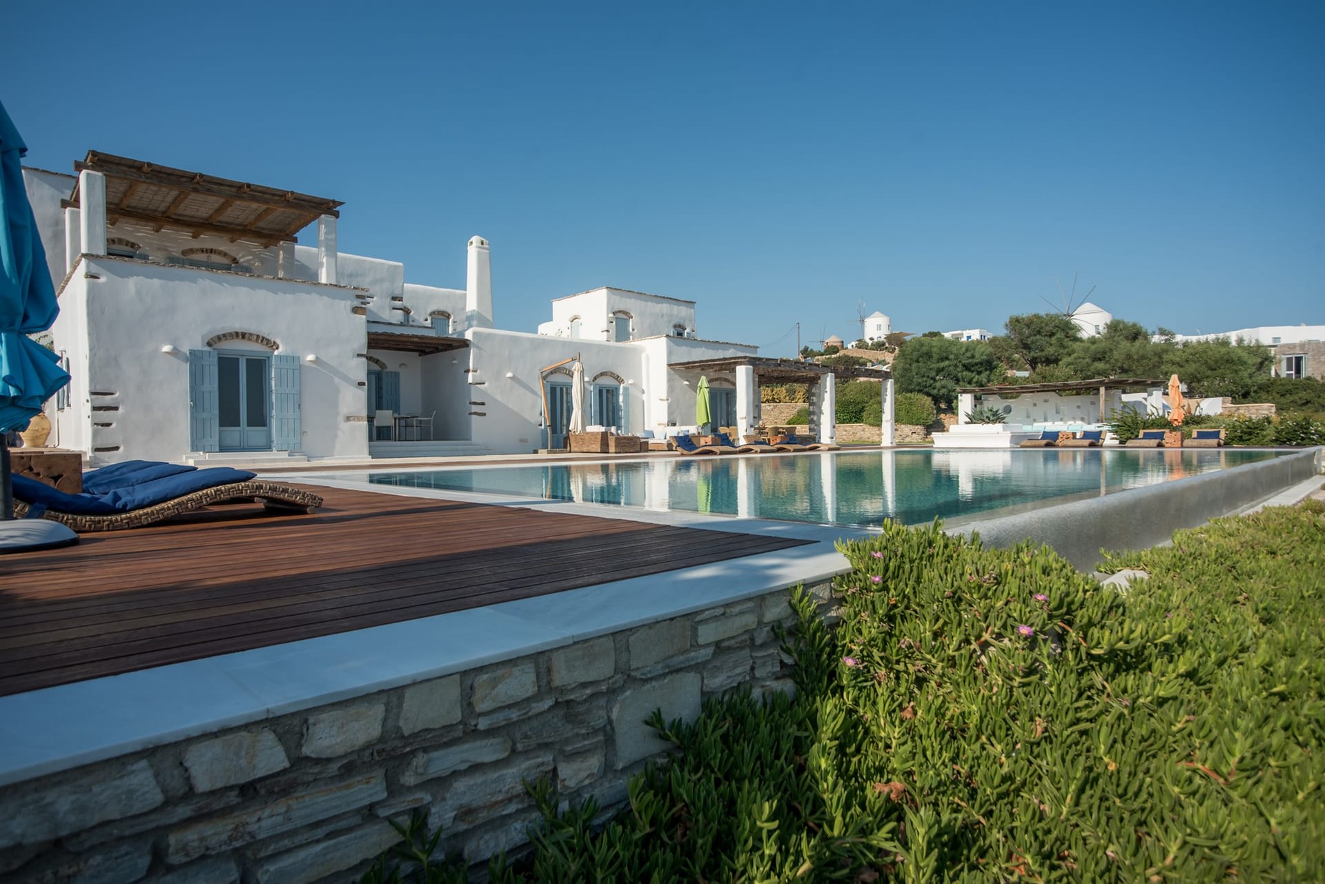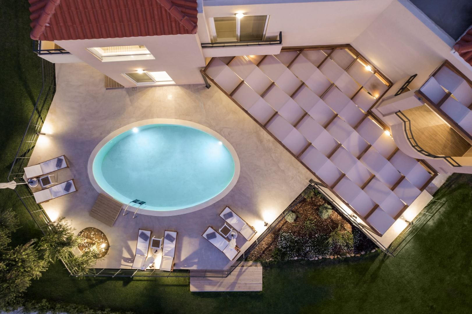 Upon arrival at AéNaos Luxury Villa, guests will discover ample parking space for their convenience and overall security of their vehicles. Guests will then encounter the swimming pool area with an outdoor shower available, the garden and outdoor lounge with BBQ as well as sitting space for them to relax around, dine, enjoy a glass of wine or simply sit calmly and appreciate the company of one another, available to take advantage of at all times of the day. The outdoor spaces of AéNaos Luxury Villa also serve as a perfect play area for smaller children, of course and as always under constant adult supervision.