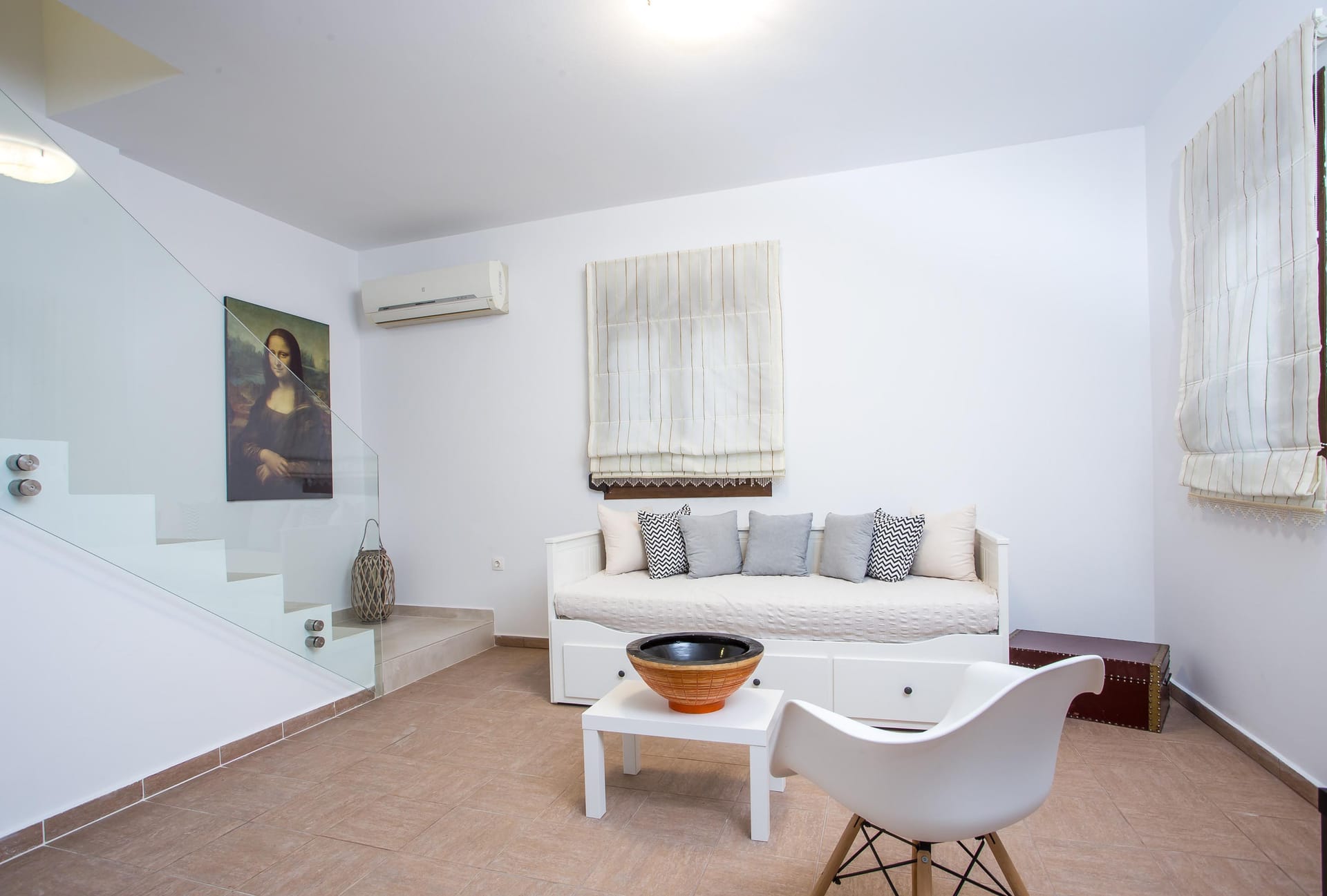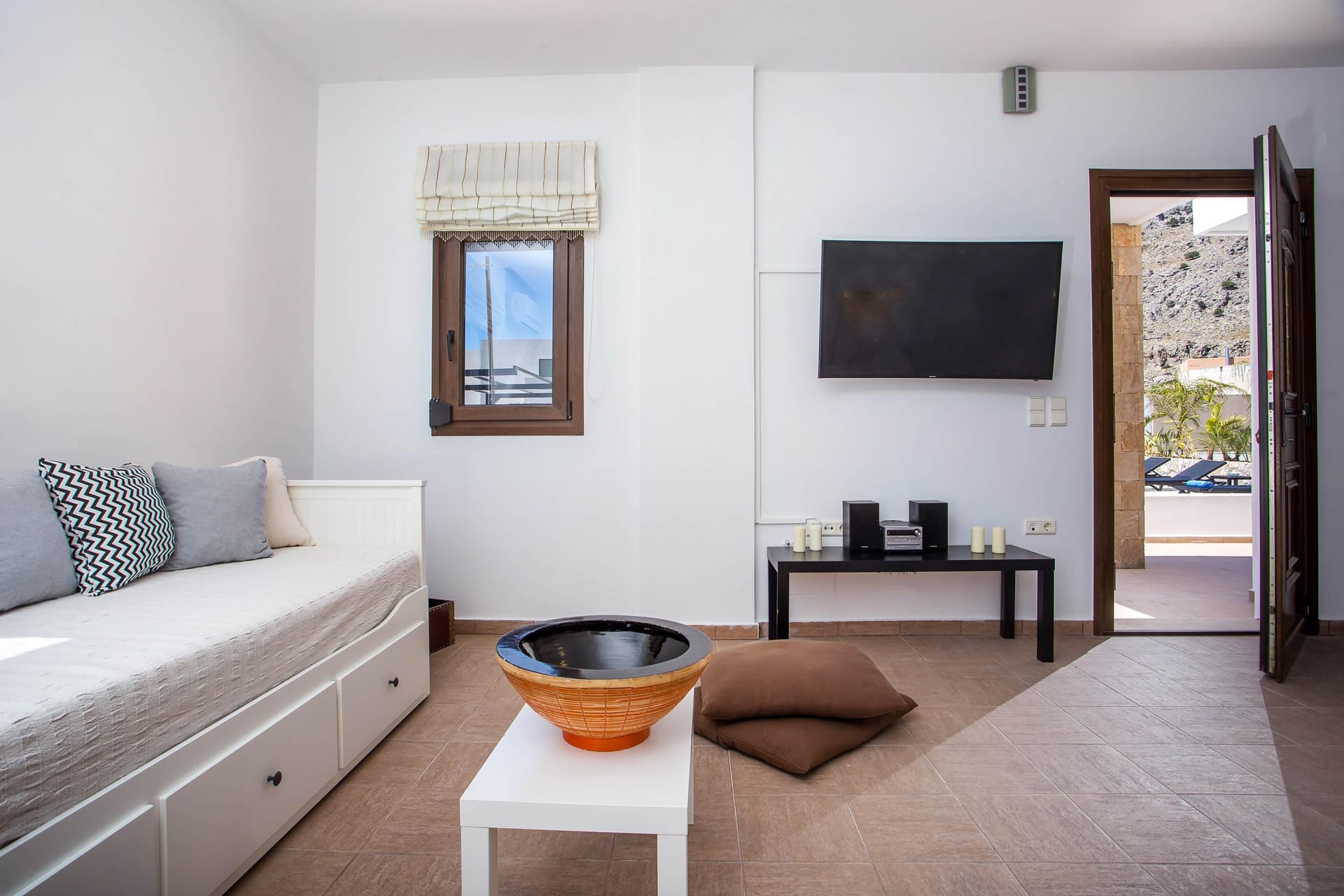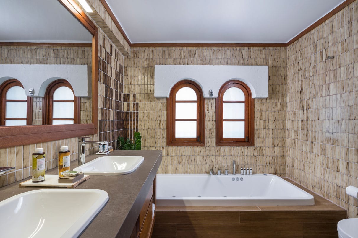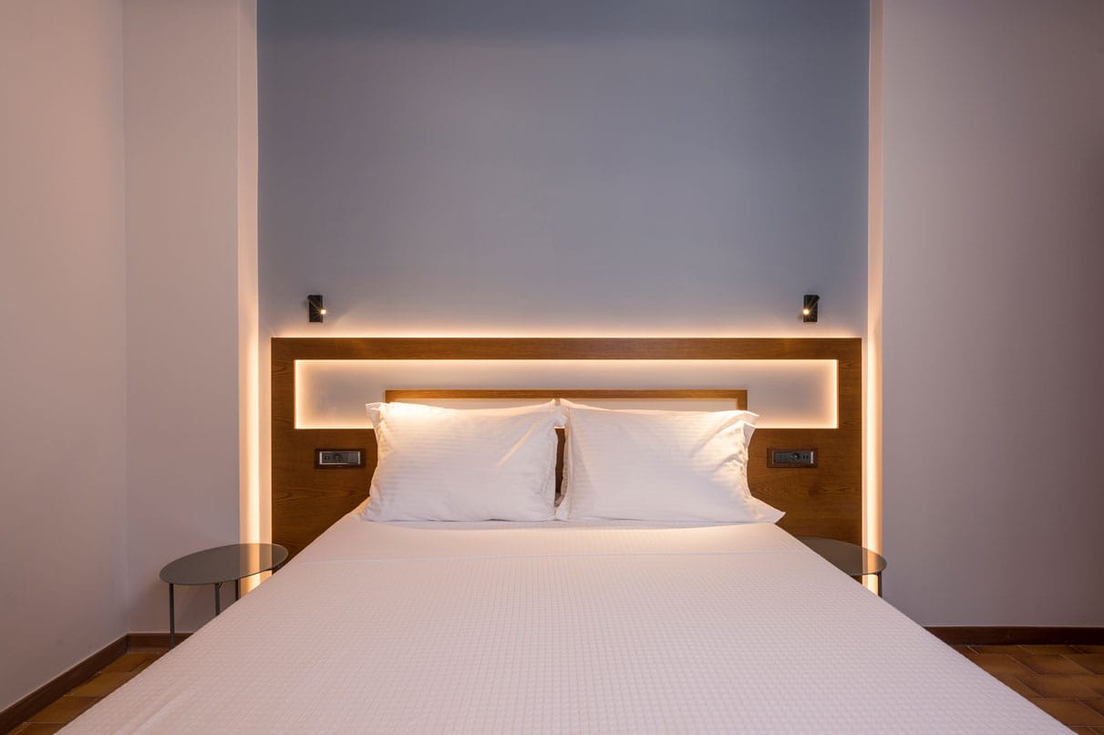 Azatis Luxury Villa covers two separate levels of a total of 360 square meters and comfortably accommodates up to 14 guests. The 7 bedrooms, 4 on the terrace level and 3 on the garden level, are elegantly designed, featuring hypoallergenic COCO-MAT mattresses for ultimate comfort. Each bedroom offers the option of a queen-size bed or two single beds, ensuring adaptability for different group needs.