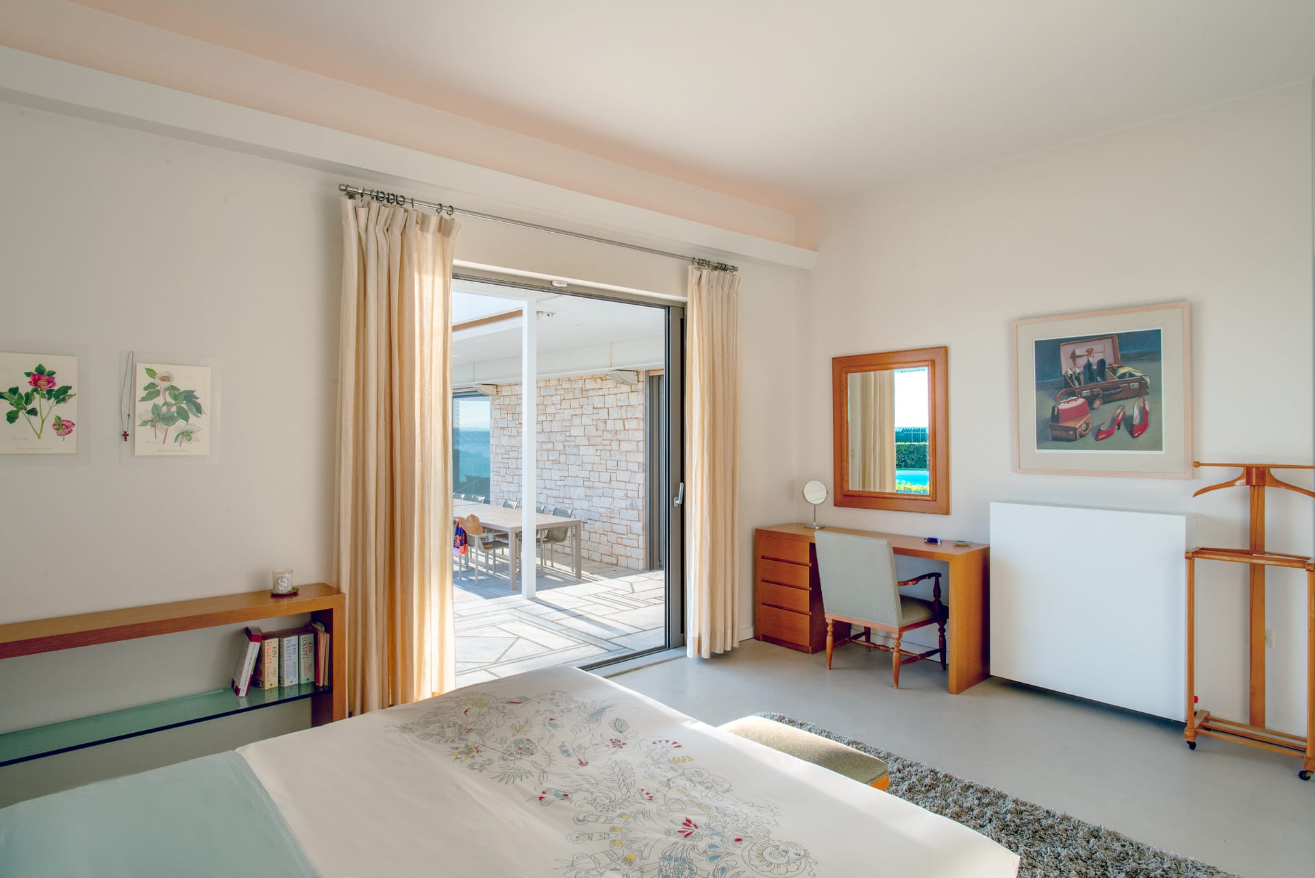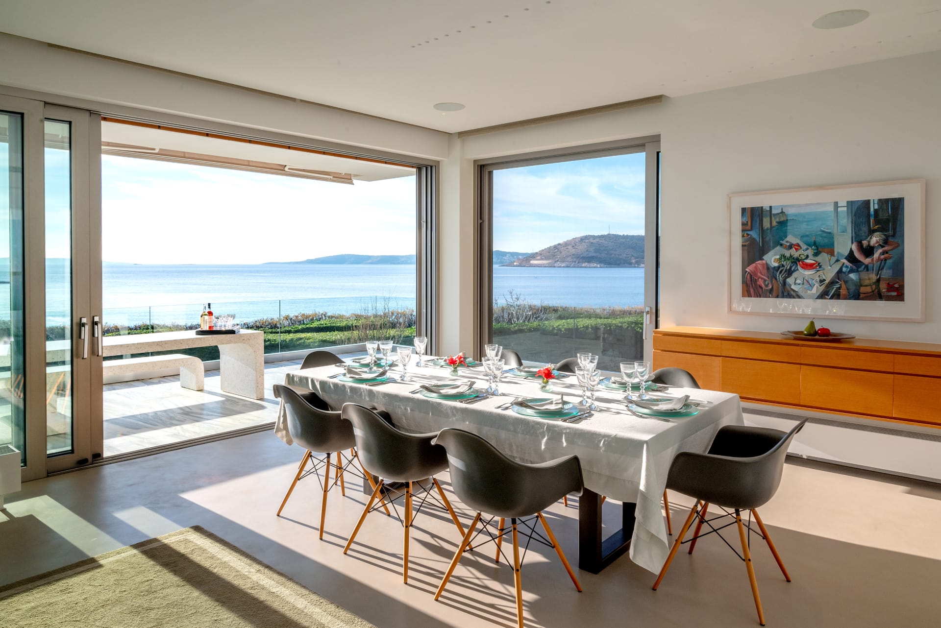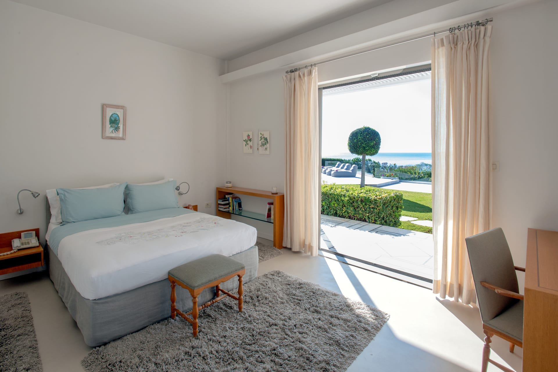 Step outside and the villa reveals its true magic. The private swimming pool glistens under the sun, surrounded by comfortable loungers and a lush, manicured garden. Just beyond, the beachfront location invites you to step onto the sand within moments. Whether you're starting your day with a swim in the Aegean or ending it with a glass of wine as the sun sets over the sea, every moment here feels extraordinary.