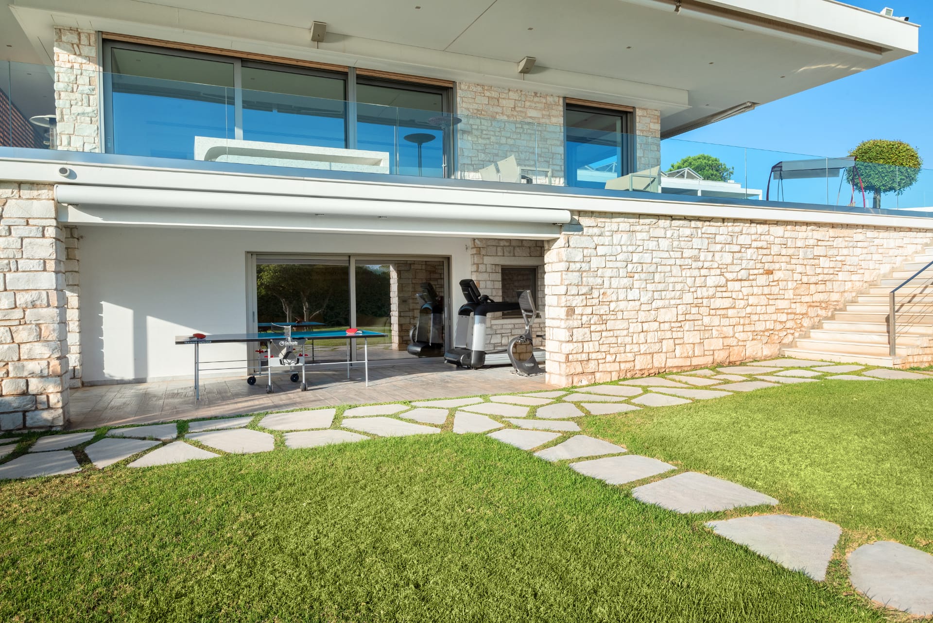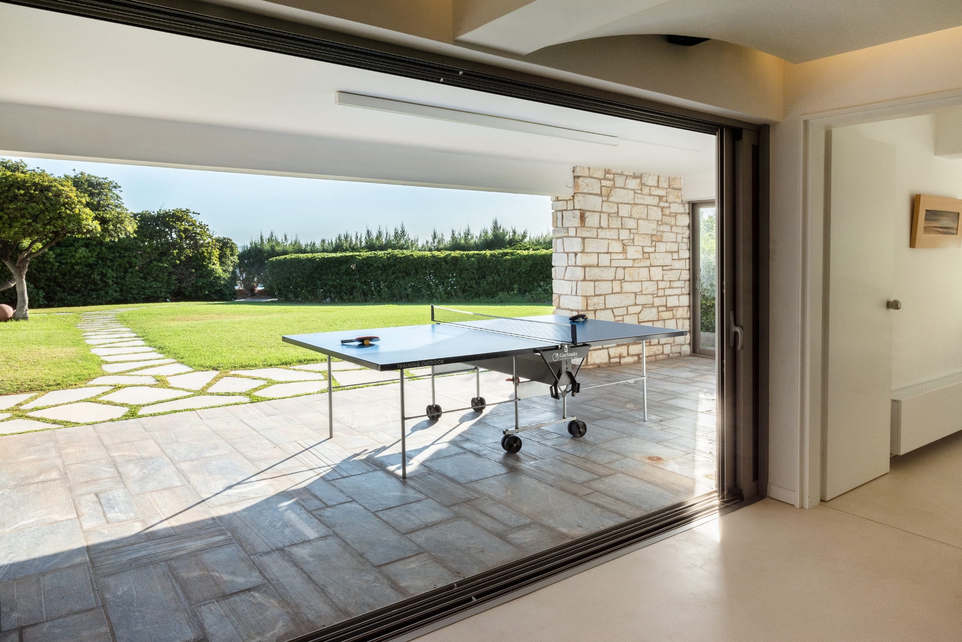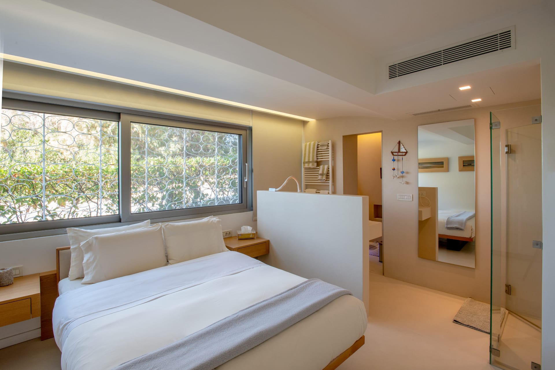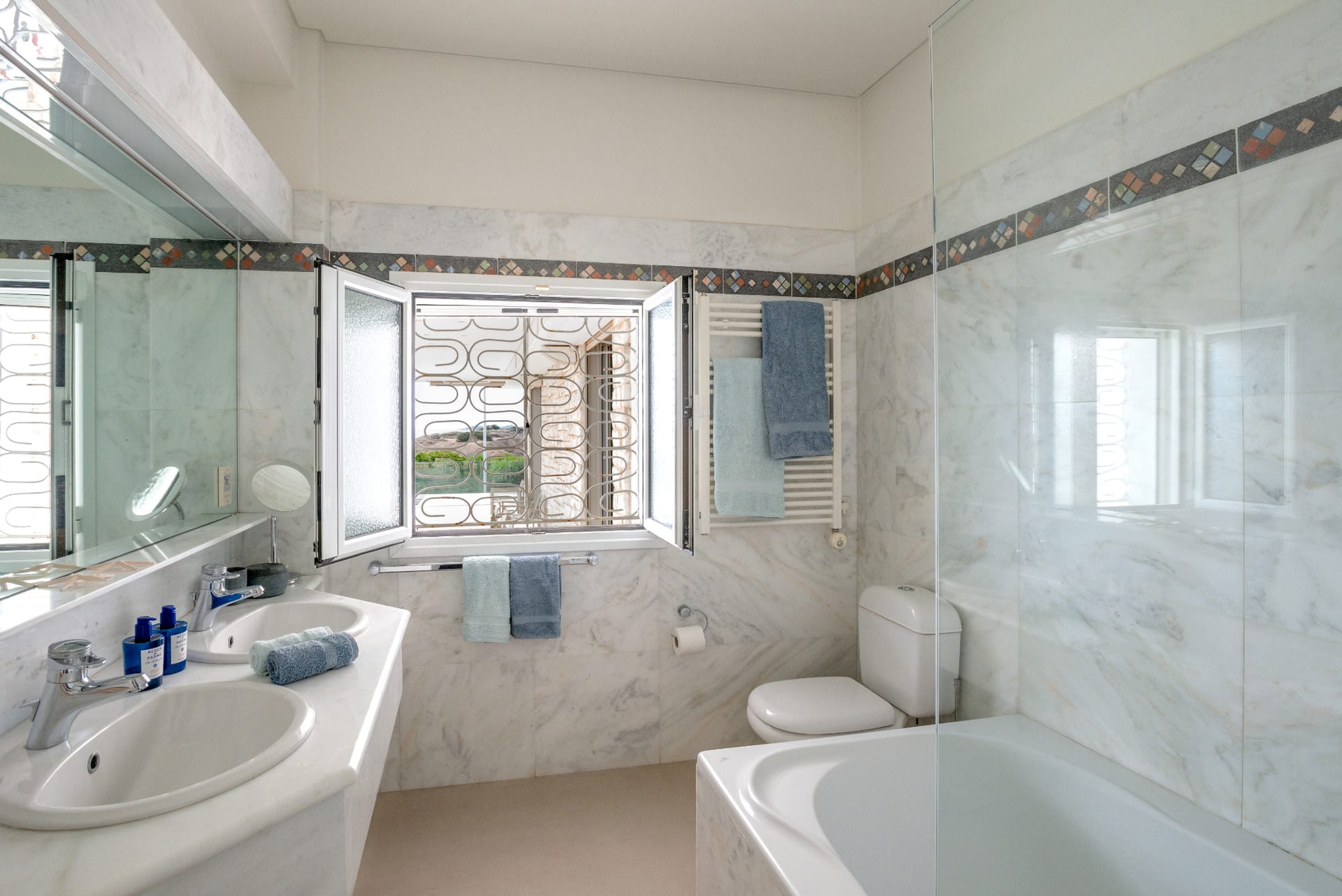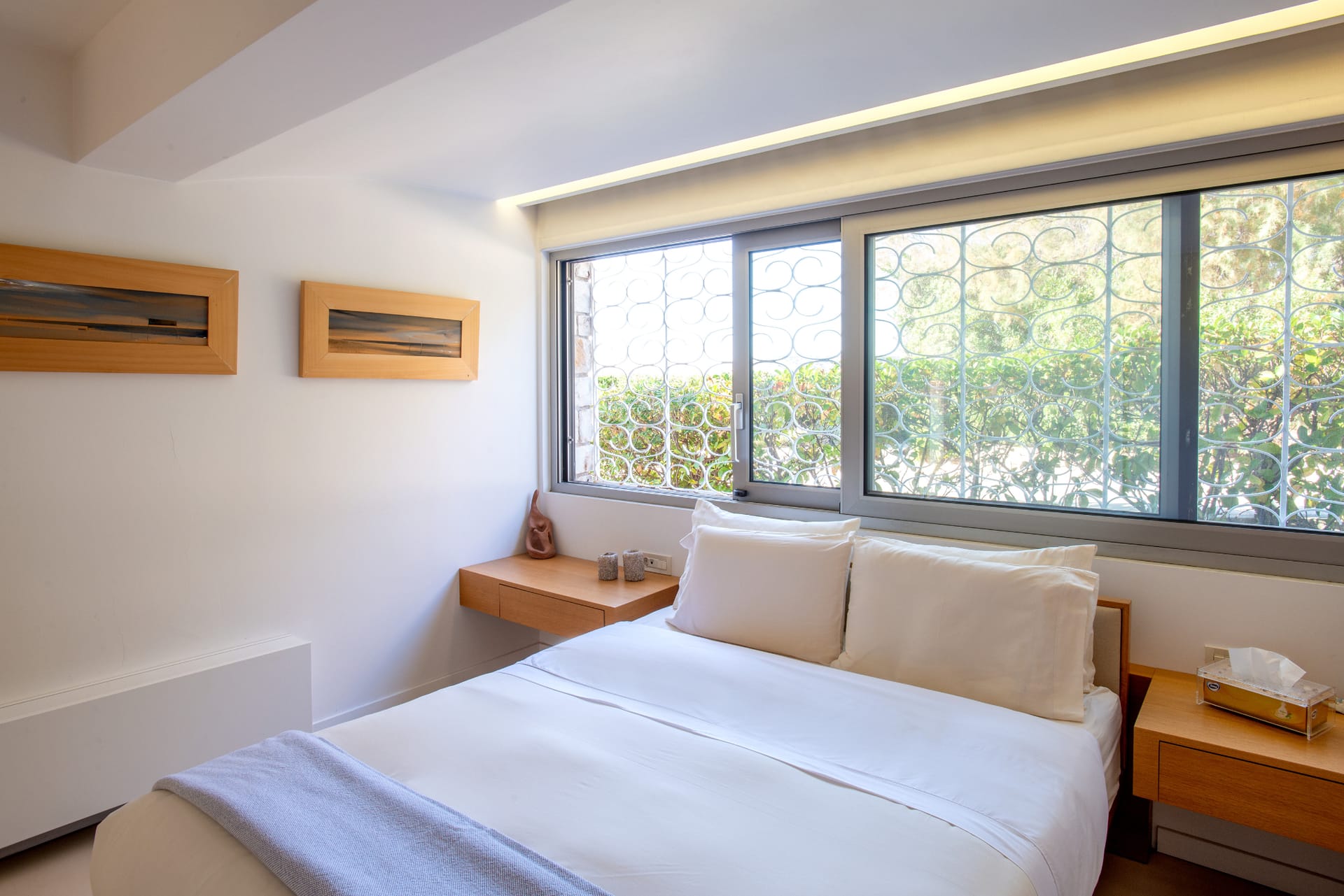 Throughout the villa, elegant finishes and thoughtful amenities enhance every detail. The property is fully air-conditioned and includes high-speed Wi-Fi, flat-screen TVs, a washing machine, and free private parking. Every space has been designed to offer relaxation and refinement in equal measure.
