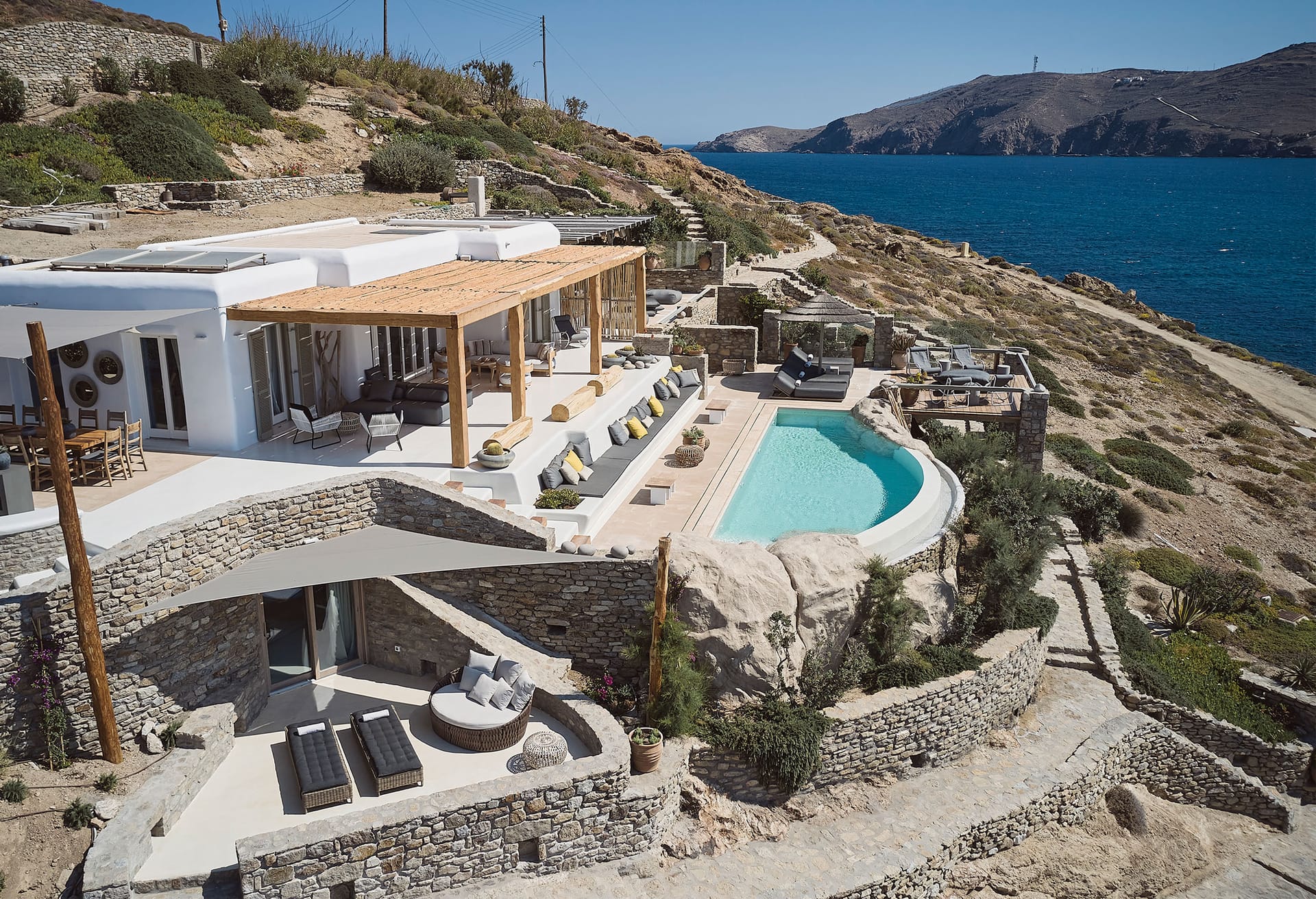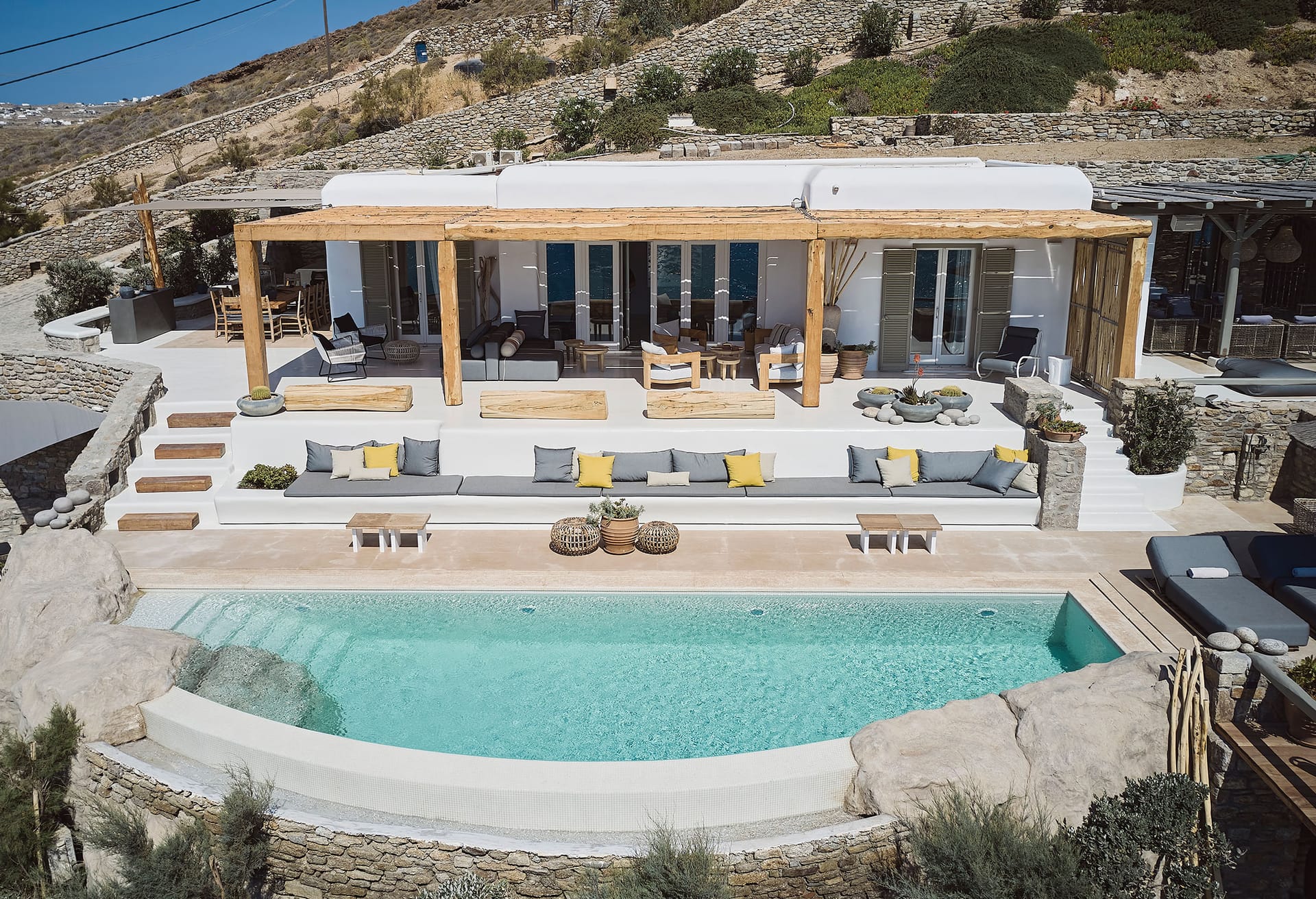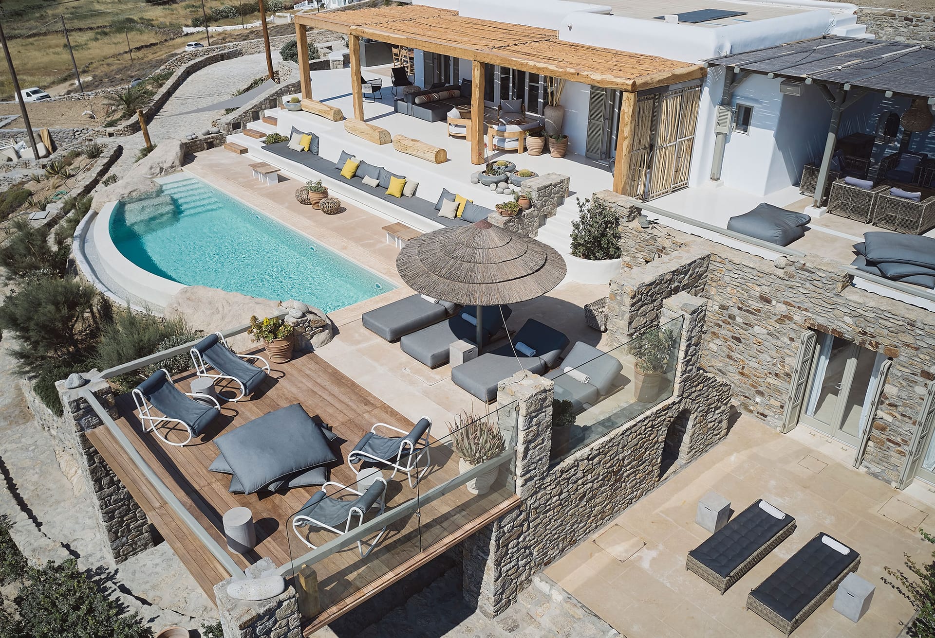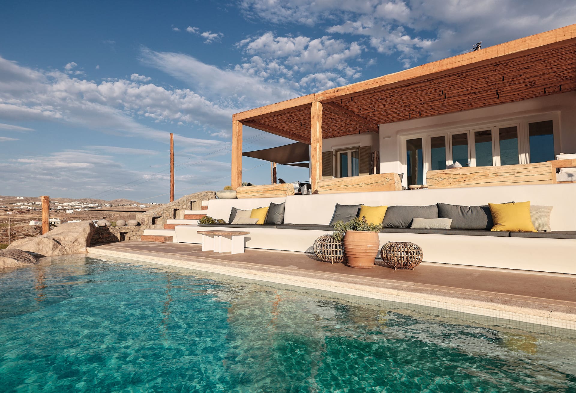 The true highlight of the villa lies outdoors. The private pool is set on a sun-drenched terrace with panoramic views of the Aegean Sea. The outdoor seating area, and BBQ facilities make it an ideal setting for laid-back afternoons or sunset dinners with family and friends. From the terrace, you can enjoy uninterrupted views of the lush landscape, sparkling sea, and sandy beach just a short stroll away.