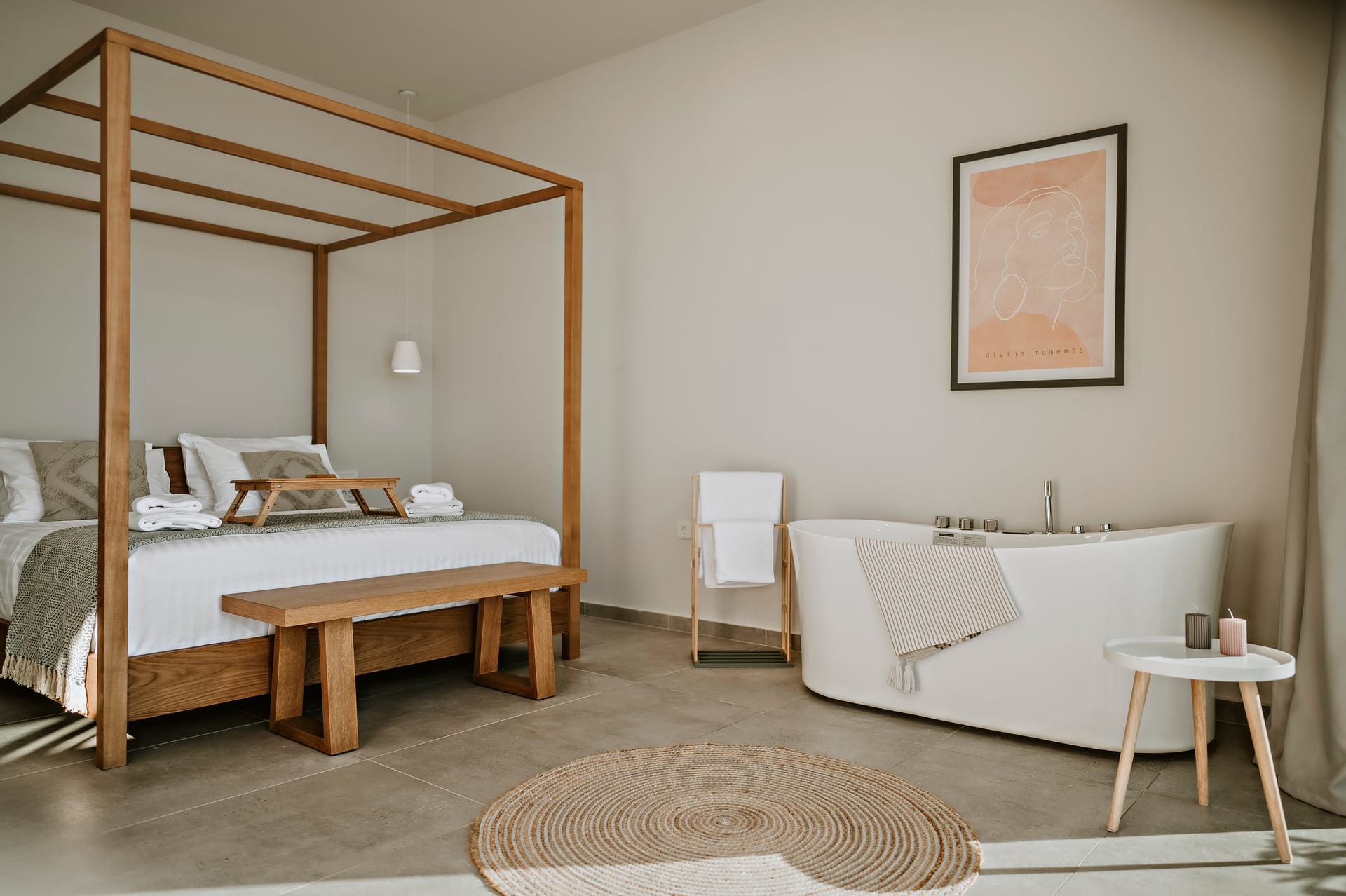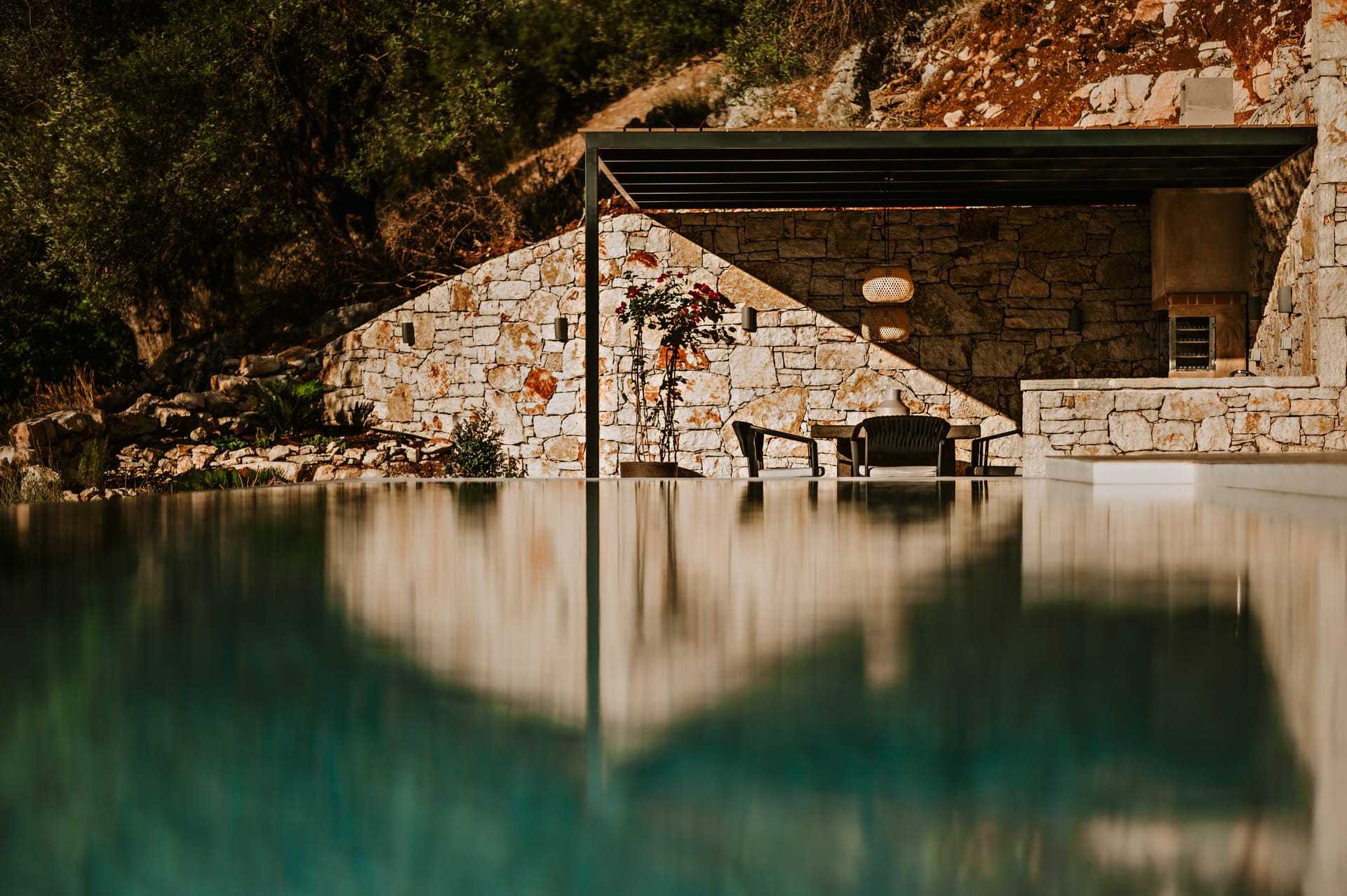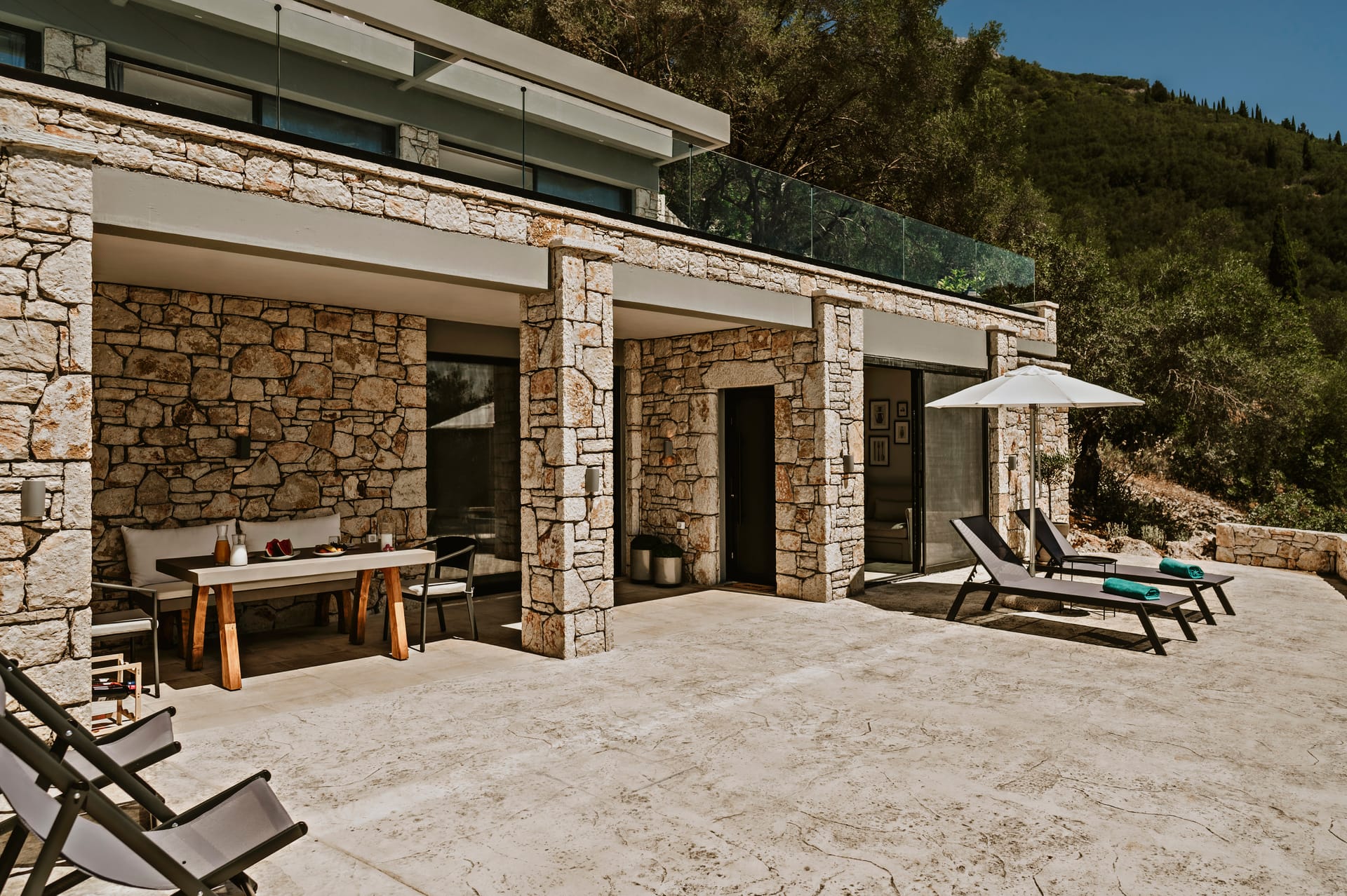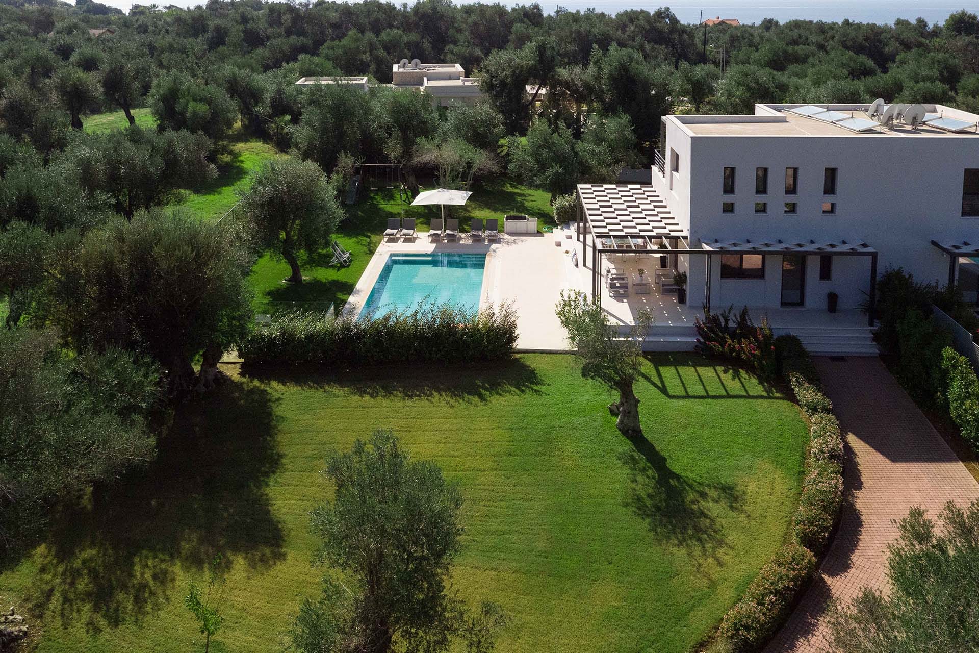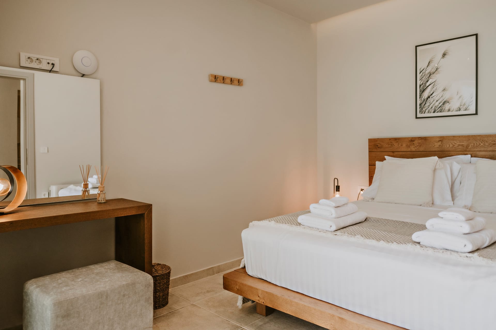 Paradisun is unique with a perfect blend of modern luxury and the natural landscape in this geometrically perfect villa. Designed for complete privacy, the olive trees, the mountain, and blue Greek sky will revitalize the senses. Inside is full of natural light from the panoramic window doors that surround the villa; from all angles, you'll have beautiful soothing views. It boasts easy access with private parking and is very central, near to everything. You can even amble down to the beautiful beach nearby. This villa would be a perfect choice for a group or family of up to 6 people, with the option for two extra guests on the lower floor.
