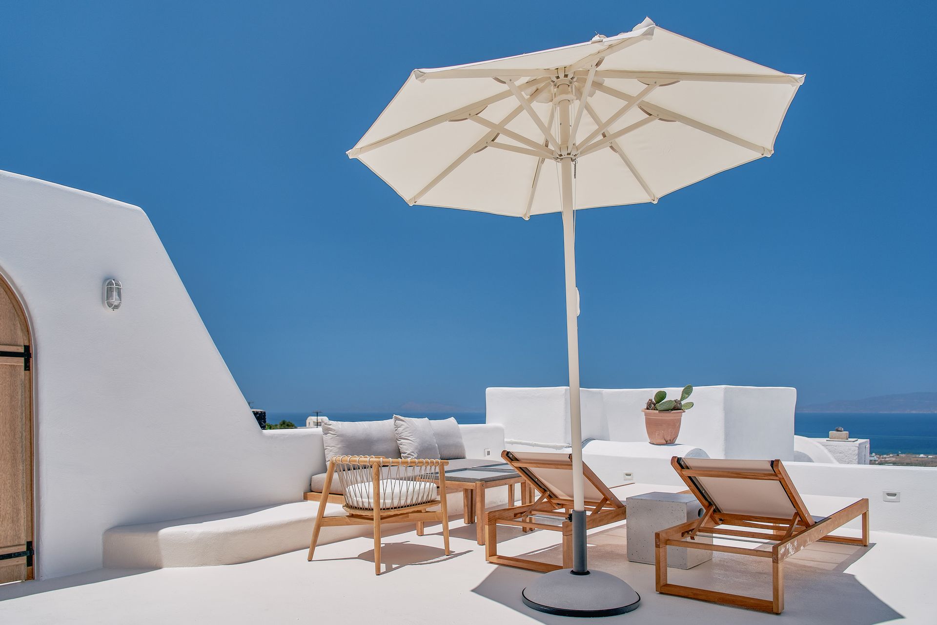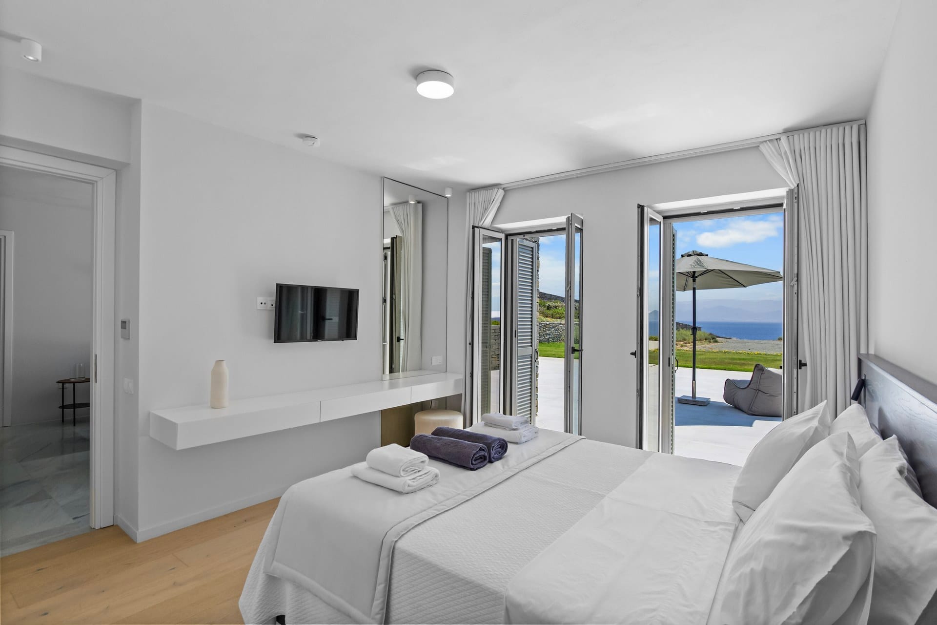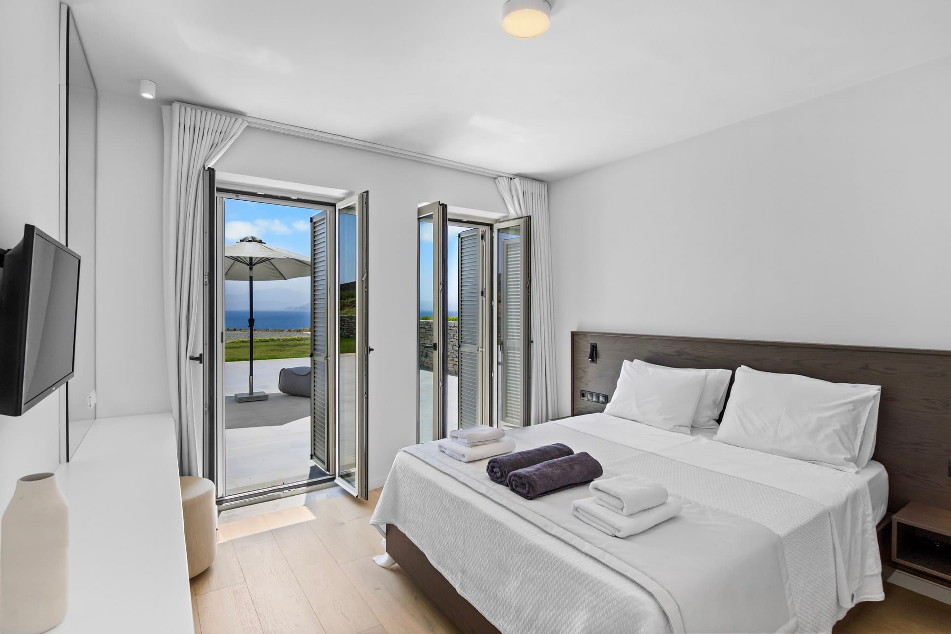 A striking fusion of white high ceiling walls, marble-like flooring, minimal wooden furniture, and contemporary décor paints an accurate picture of villa Anya’s interiors. Well-equipped with ultra-luxurious amenities, it offers guests all the comforts for a hassle-free holiday. Accommodation-wise, it features 7 bedrooms, with unlimited sea views and direct access to the outdoor area, hosting up to 14 guests. Everything is perfectly arranged, from a spacious living area to a fully equipped kitchen; each corner of the villa breathes out style and luxury.