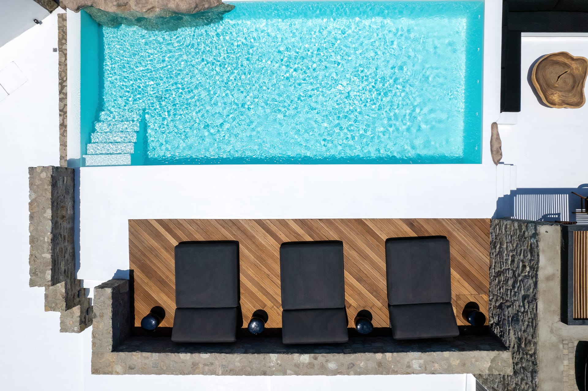 · A private 10 meter luxury overflow pool with salted water, luxurious decks and loungers, shower with warm and cold water beside the pool.