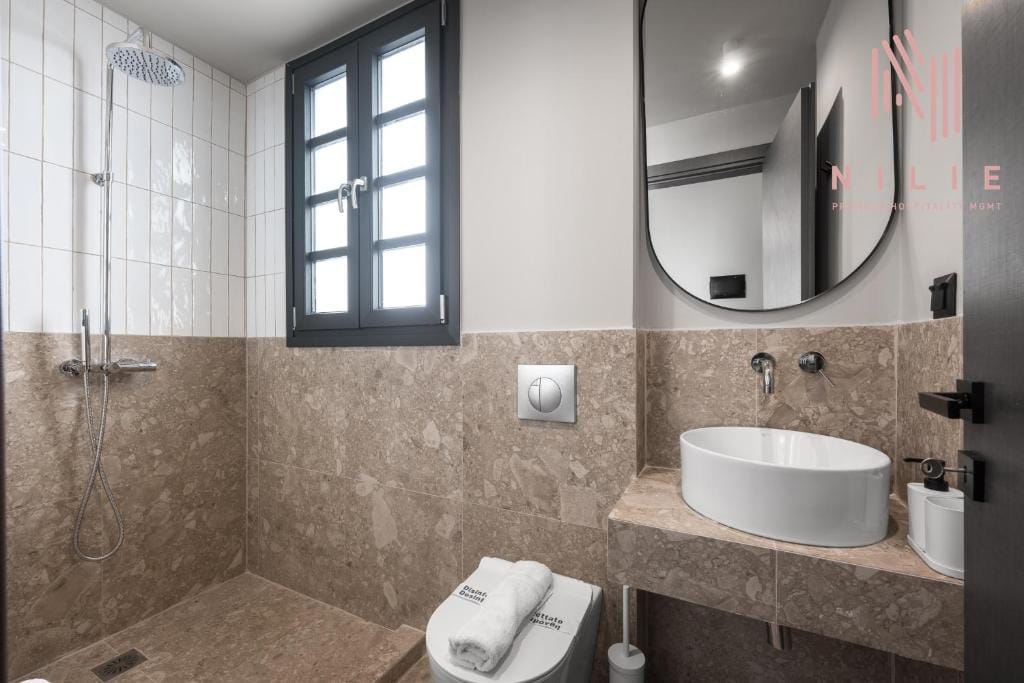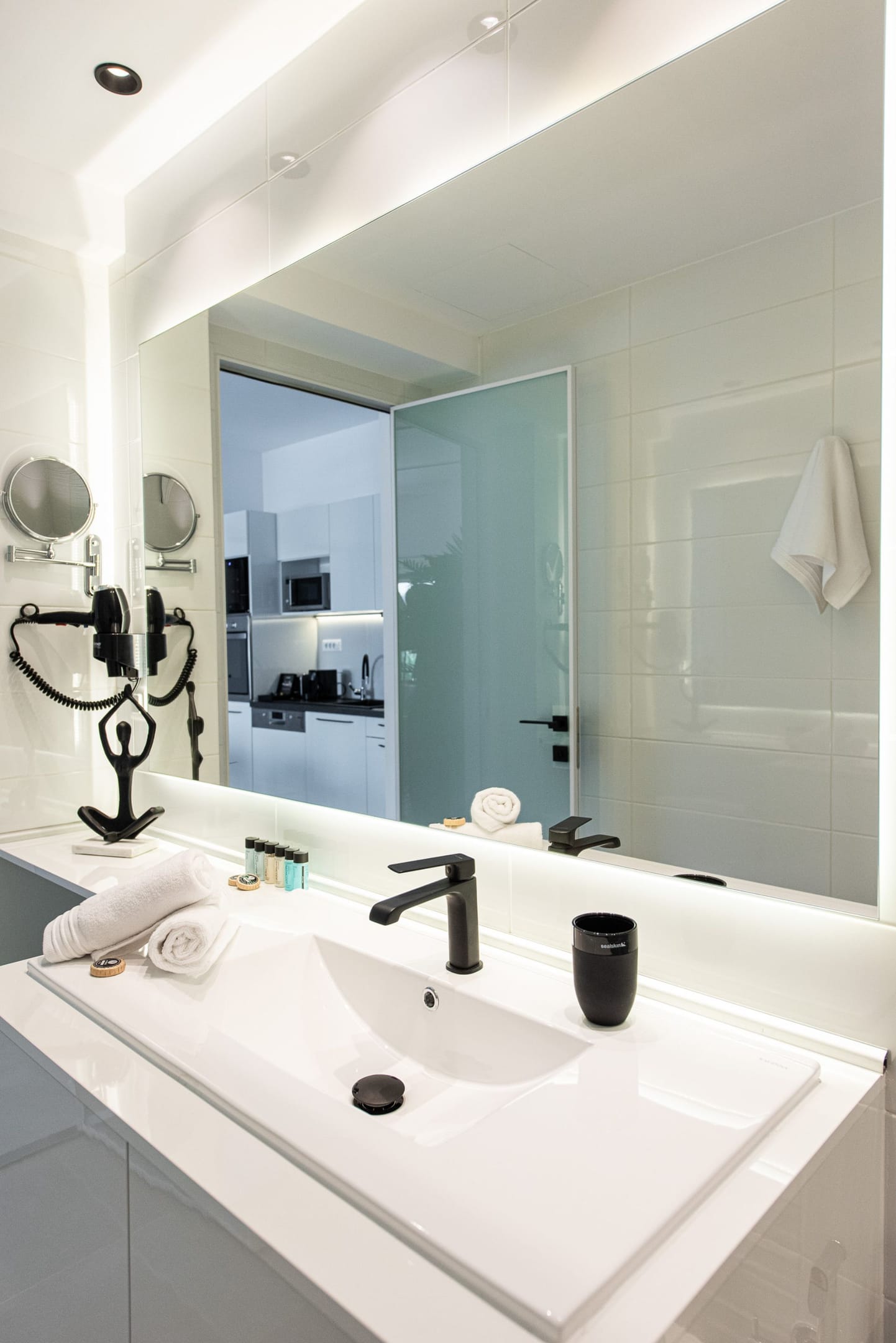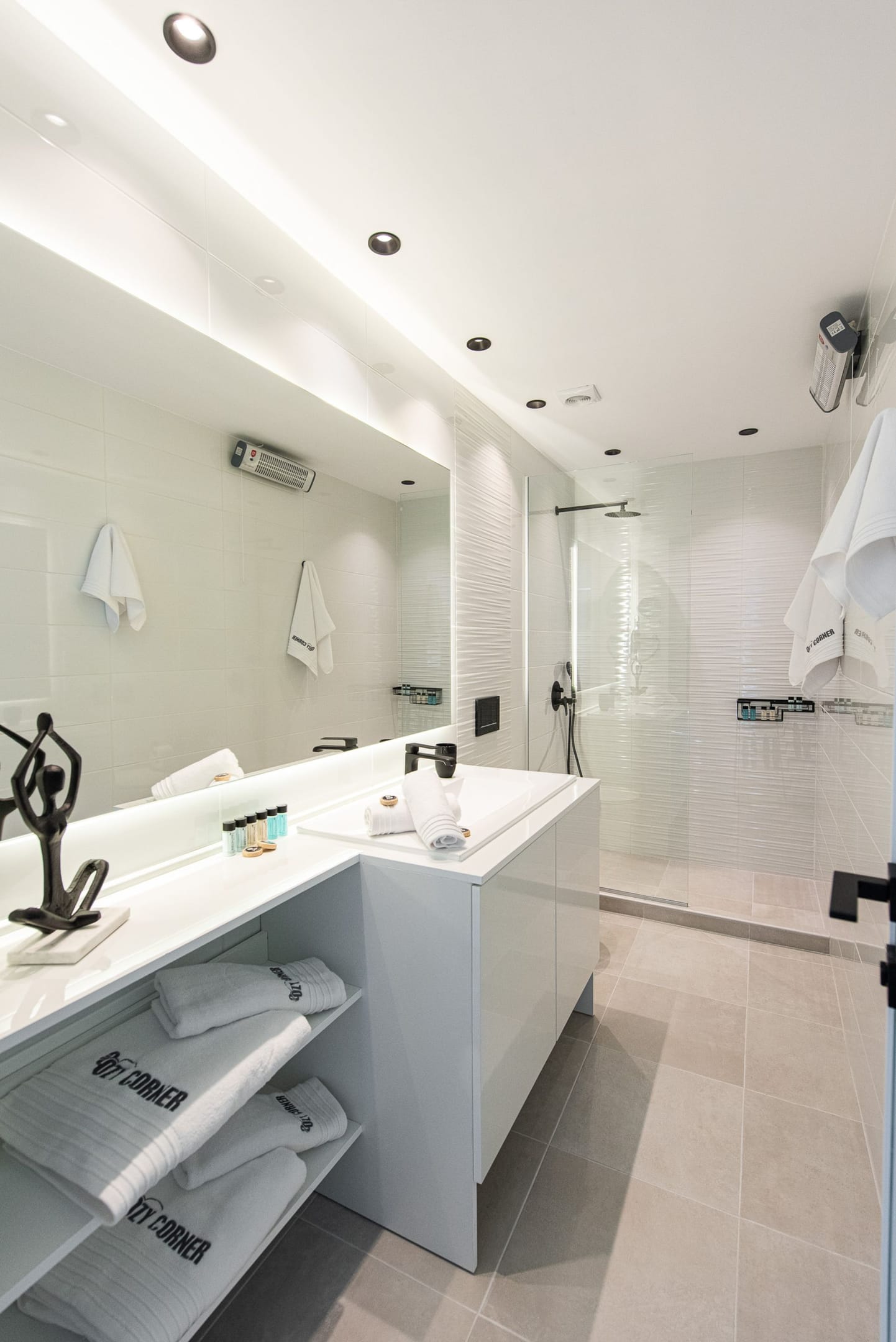 In the spacious bathroom there is a shower, hairdryer (2000 watt), magnifying glass, radiator and free toiletries, so you can get ready for your walk in Chania.