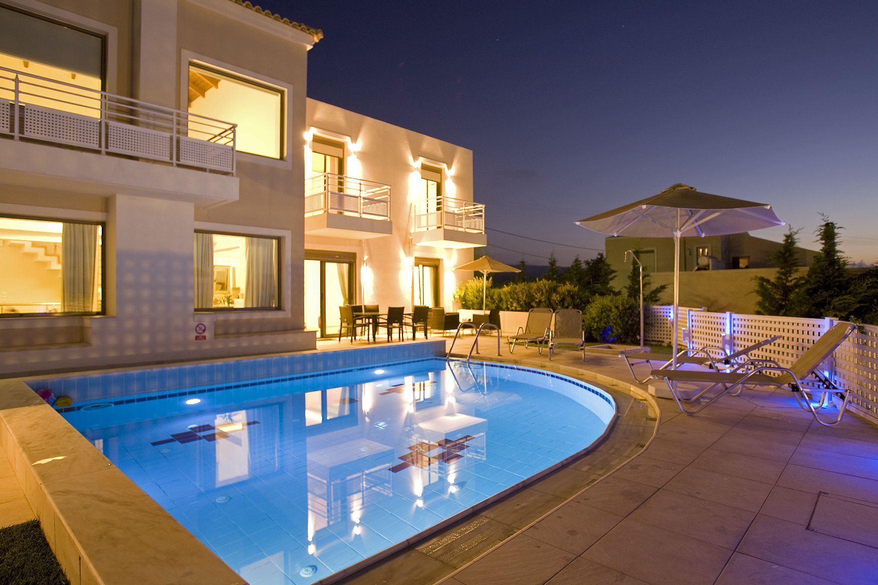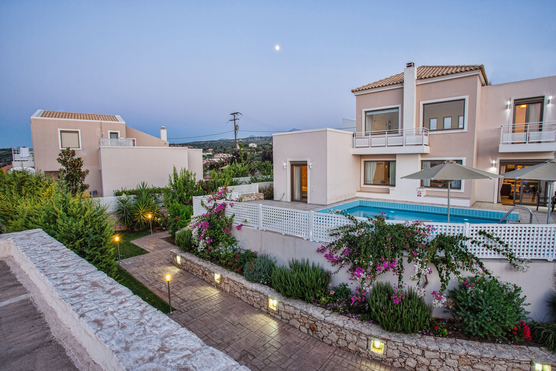 The villa is part of a small complex of three villas, they offer 3-bedroom villas with private pools and jacuzzi. They are located 18 km from Rethymno, a vibrant city with Venetian castle and port. The complex offers 360 degrees with vineyards, olive trees and the sea. The properties are 5 km from the nearest beach and 3 km from the ancient city of Eleftherna.