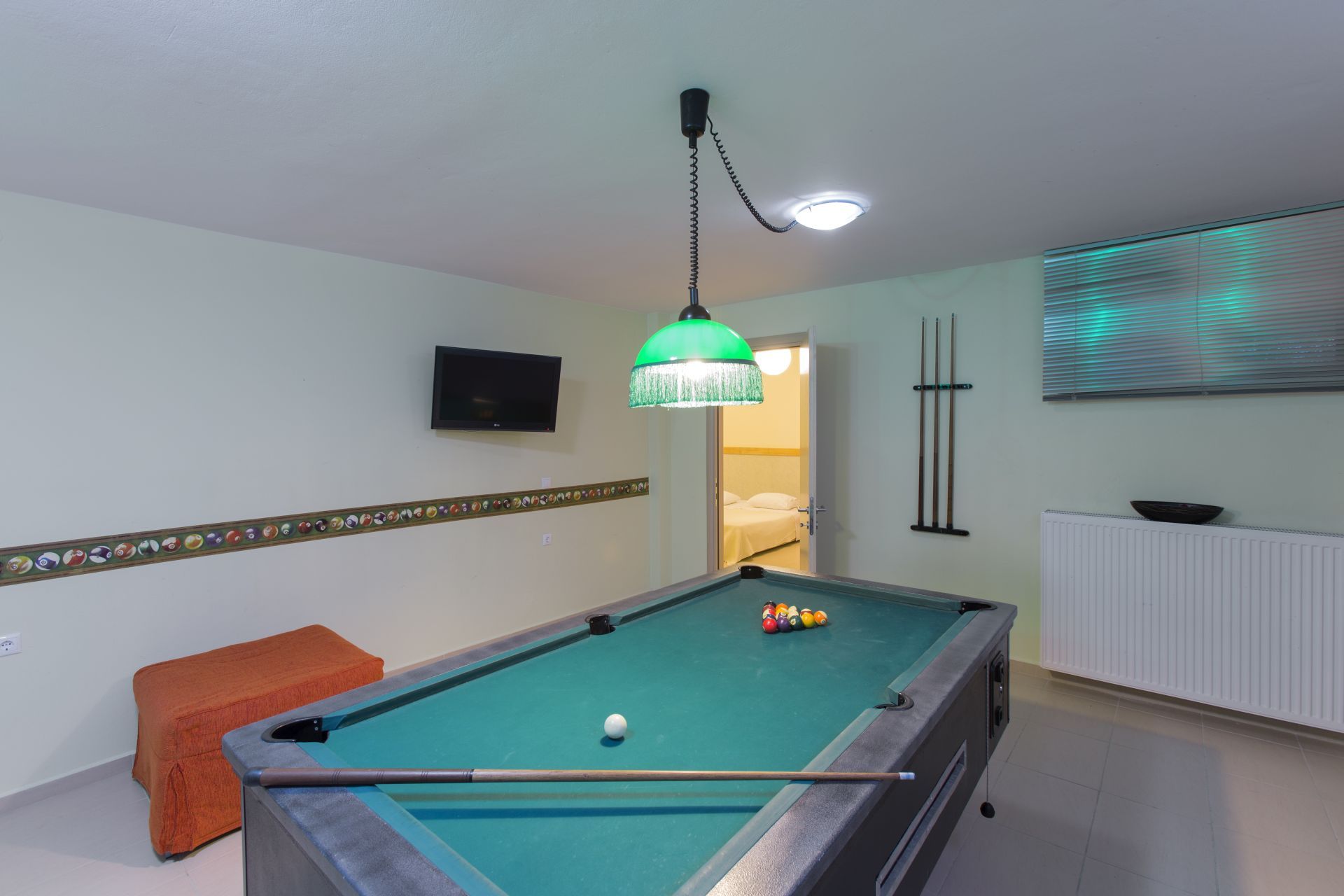 1 twin bedroom, playroom with pool table, bar, wc/Shower