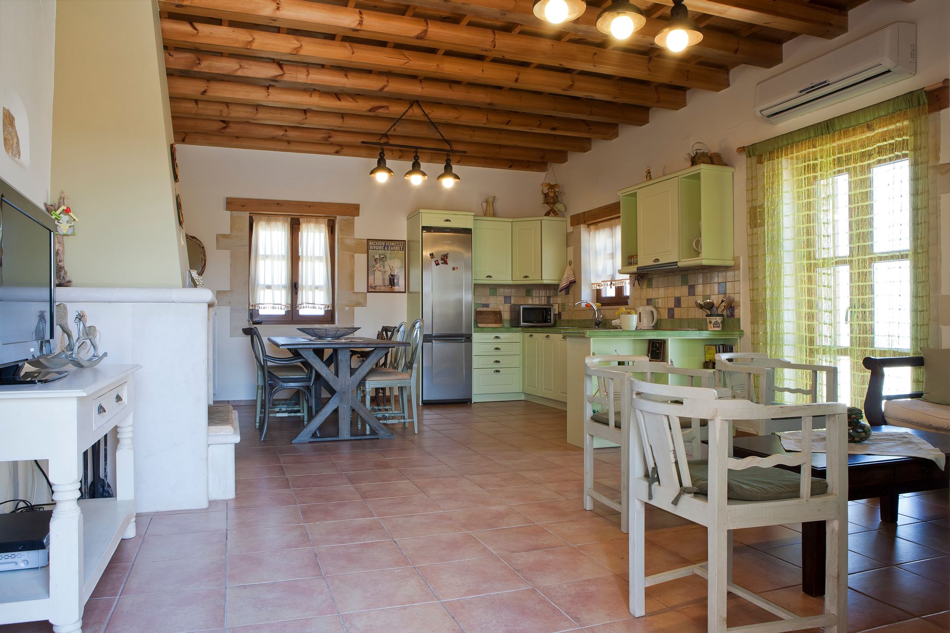 Having so much space for your wedding or your party can not be found anywhere. Family villa is located on a hill top only 6 km from the beach and it is the best option for big groups wanting to visit Crete. It offers a large private pool with views of the mountains. Nearest supermarket is located 5 km from the property at Stauromenos area.