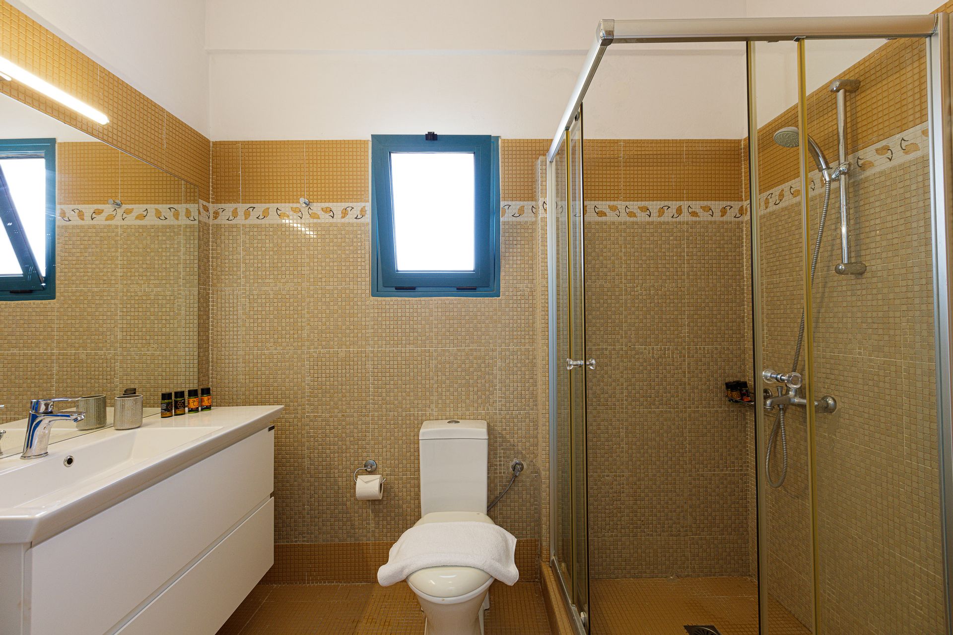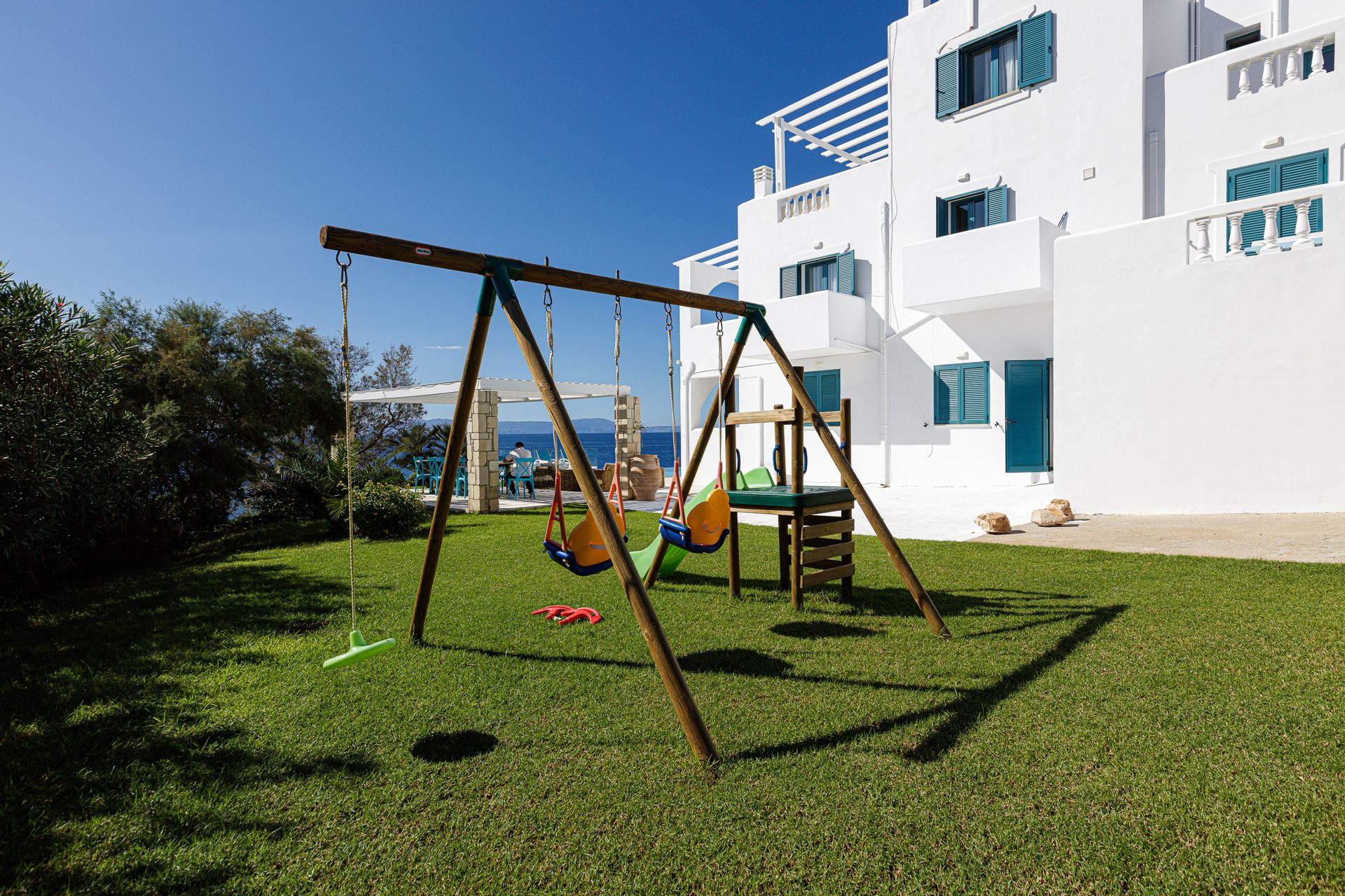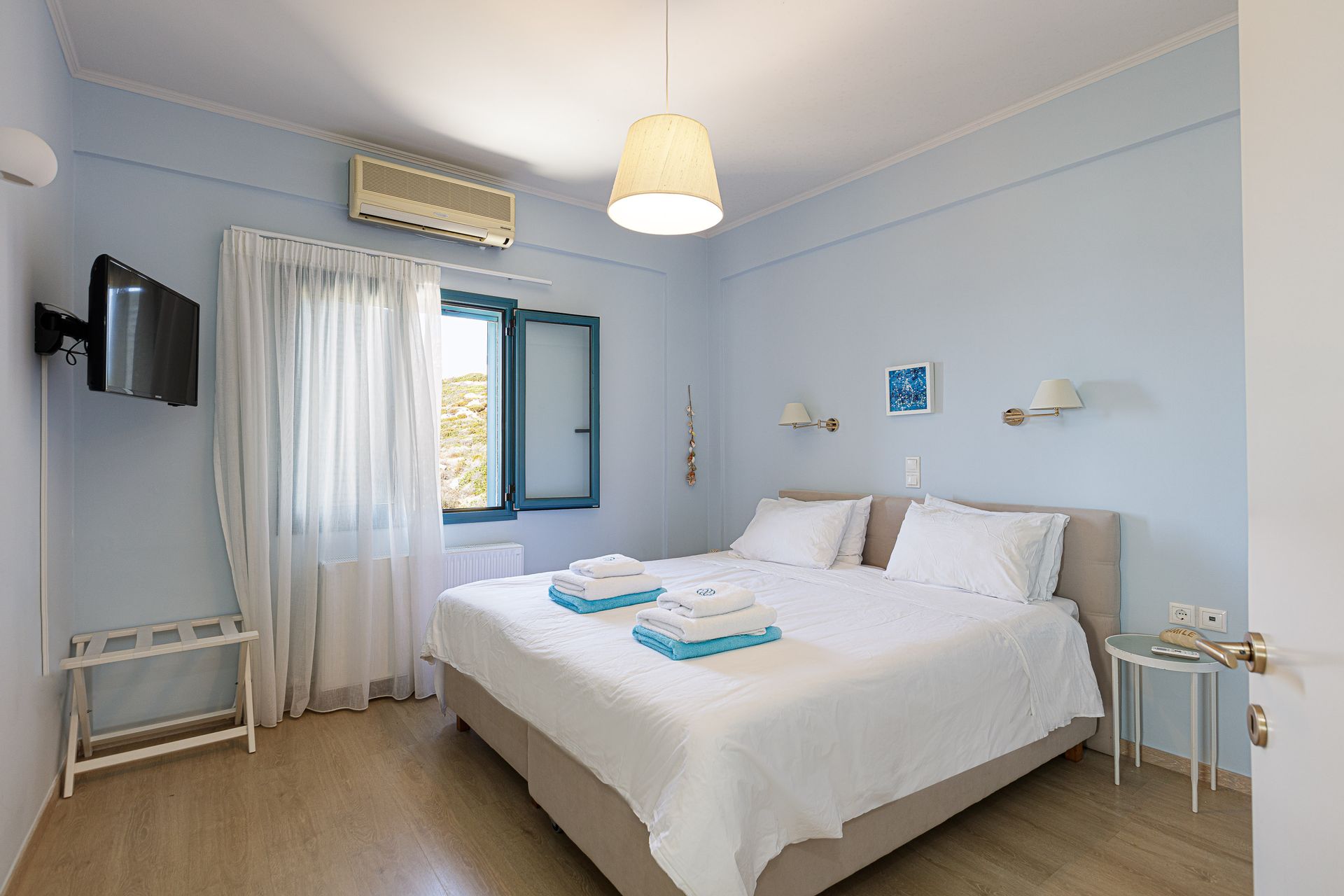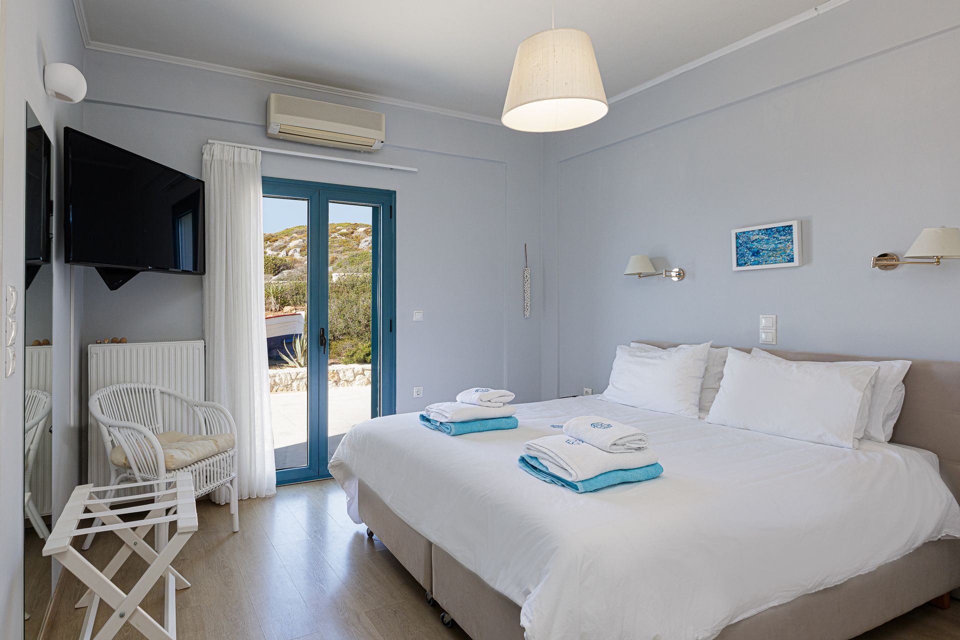Outside, there is a shaded pavilion and a BBQ area. There is plenty of space for five to six cars to park. Wireless Internet access is for free, while you will also be given a cell phone with a Greek number for national calls. Should you have any special requests about every aspect of your trip just send us an email.