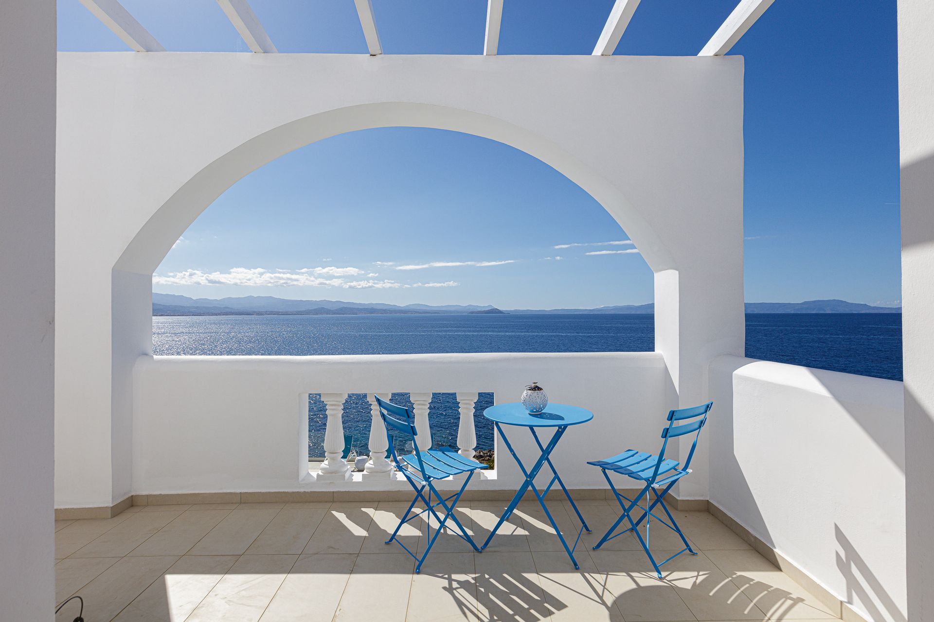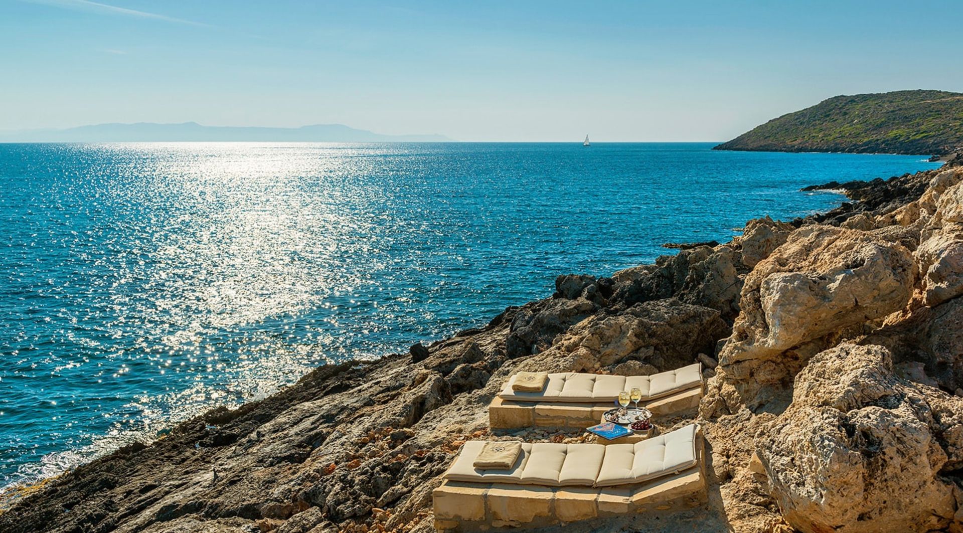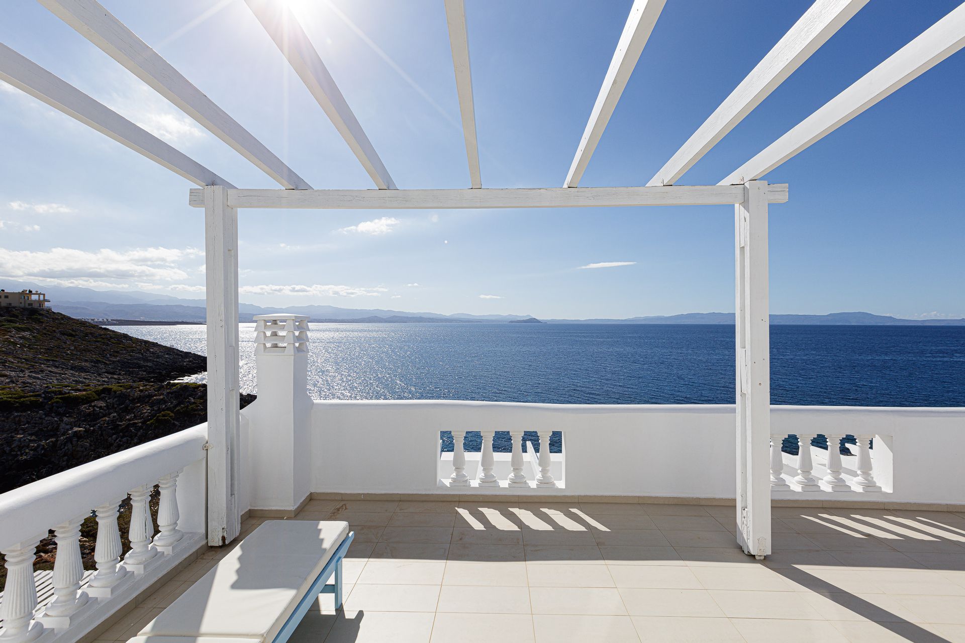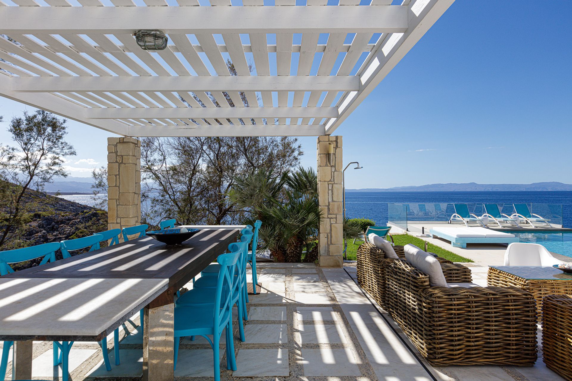 Villa Chrissi is situated northwest of Chania Prefecture at a magnificent coastal location called Tersanas. It sits at the top of a 3.000 sq. m. private hill planted with grass, flowers, bushes, herbs and other native plants; an idyllic location whatsoever.