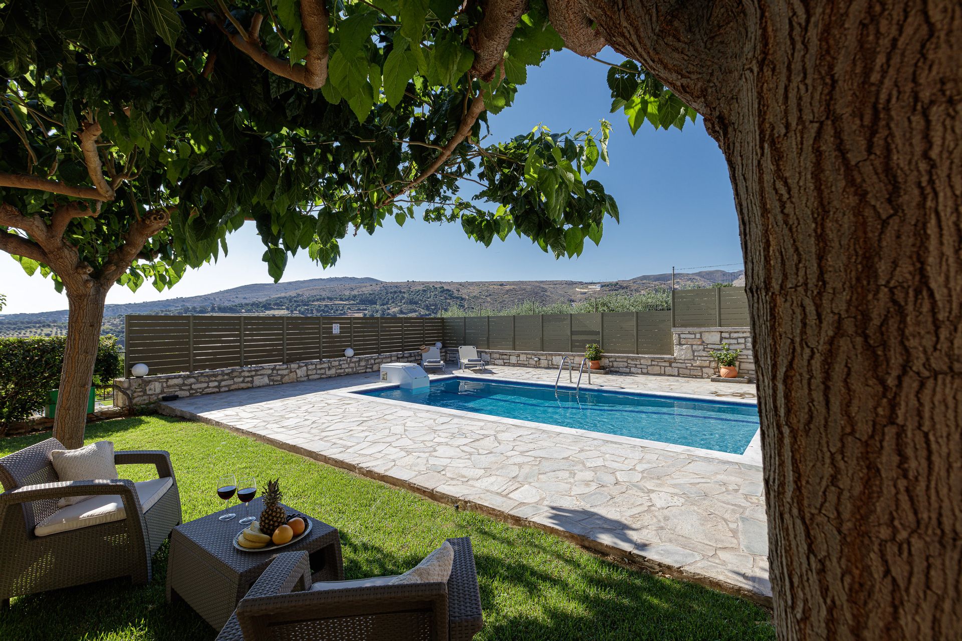In Danai Villa you’re likely to spend much time admiring the spectacular views that takes center stage, while a beautiful garden with stone walls, plants and flowers create a beautiful and relaxing environment. The pool terrace is equipped with sun beds and umbrellas and offers ample opportunity for all day long to sunbathing and taking in the view of Psiloritis Mountain and Cretan Sea!