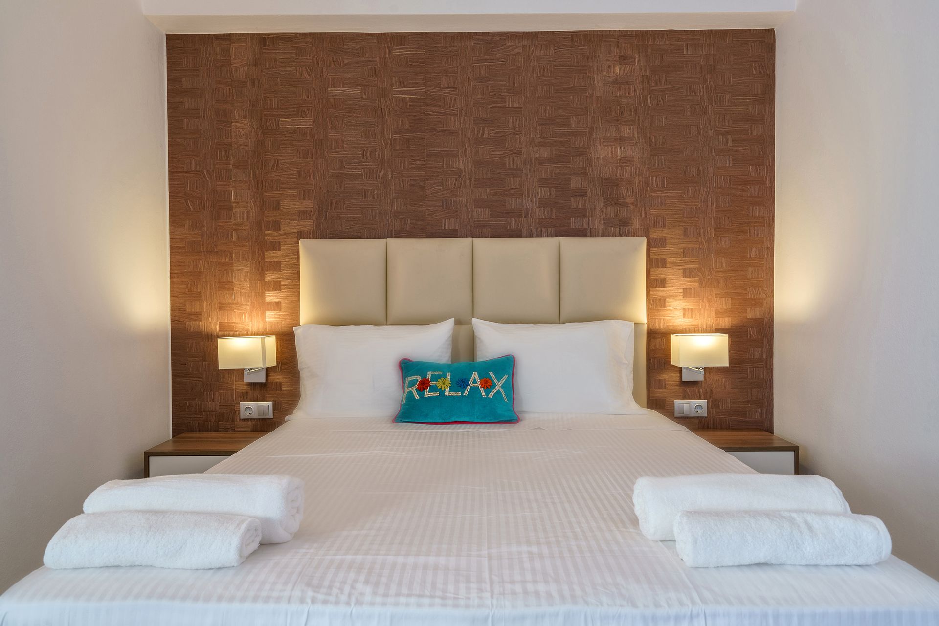 The residences are right on the beautiful sandy beach of Paligremnos. The beach is organized with umbrellas and sun beds and the water is crystal clear.