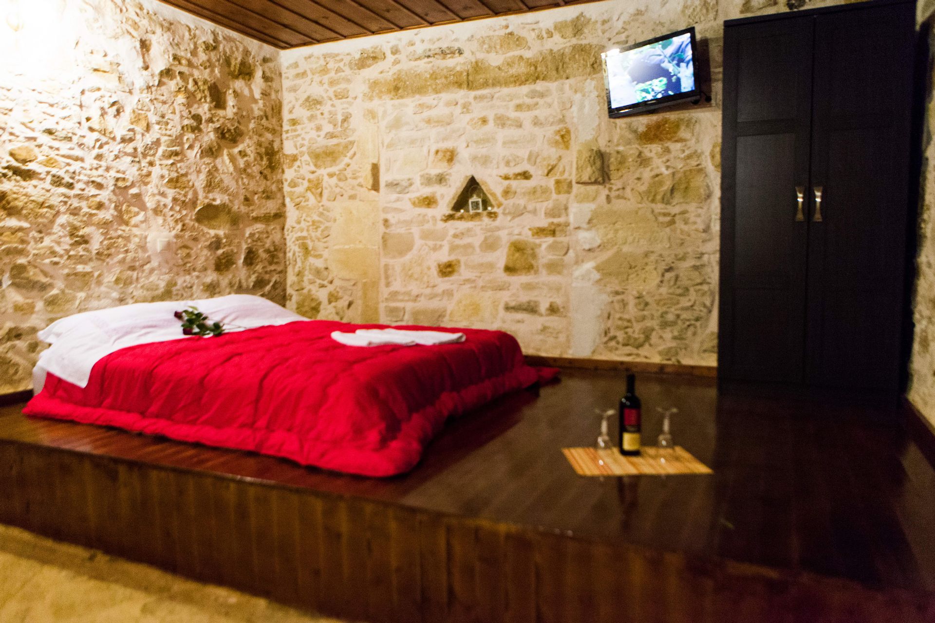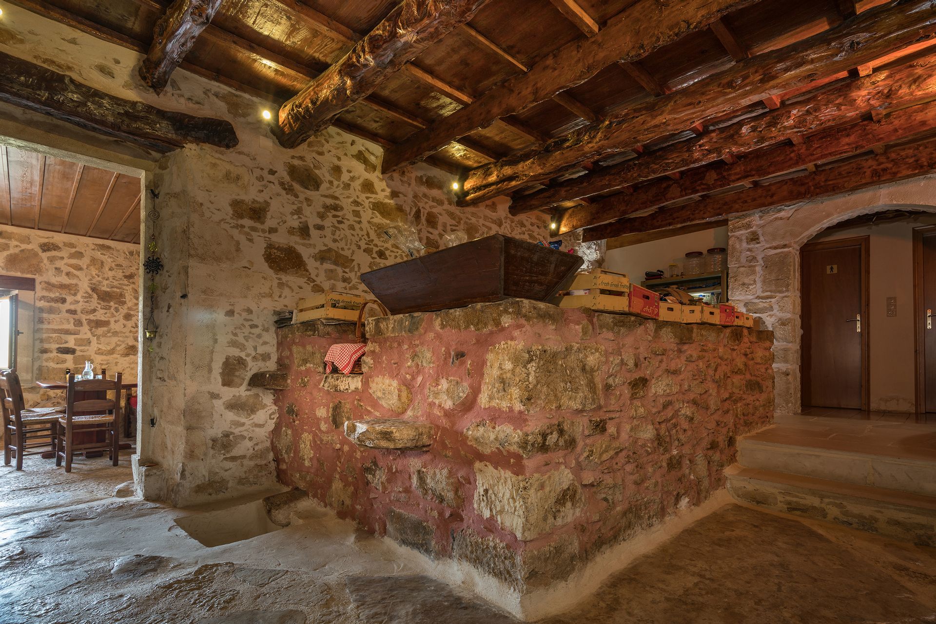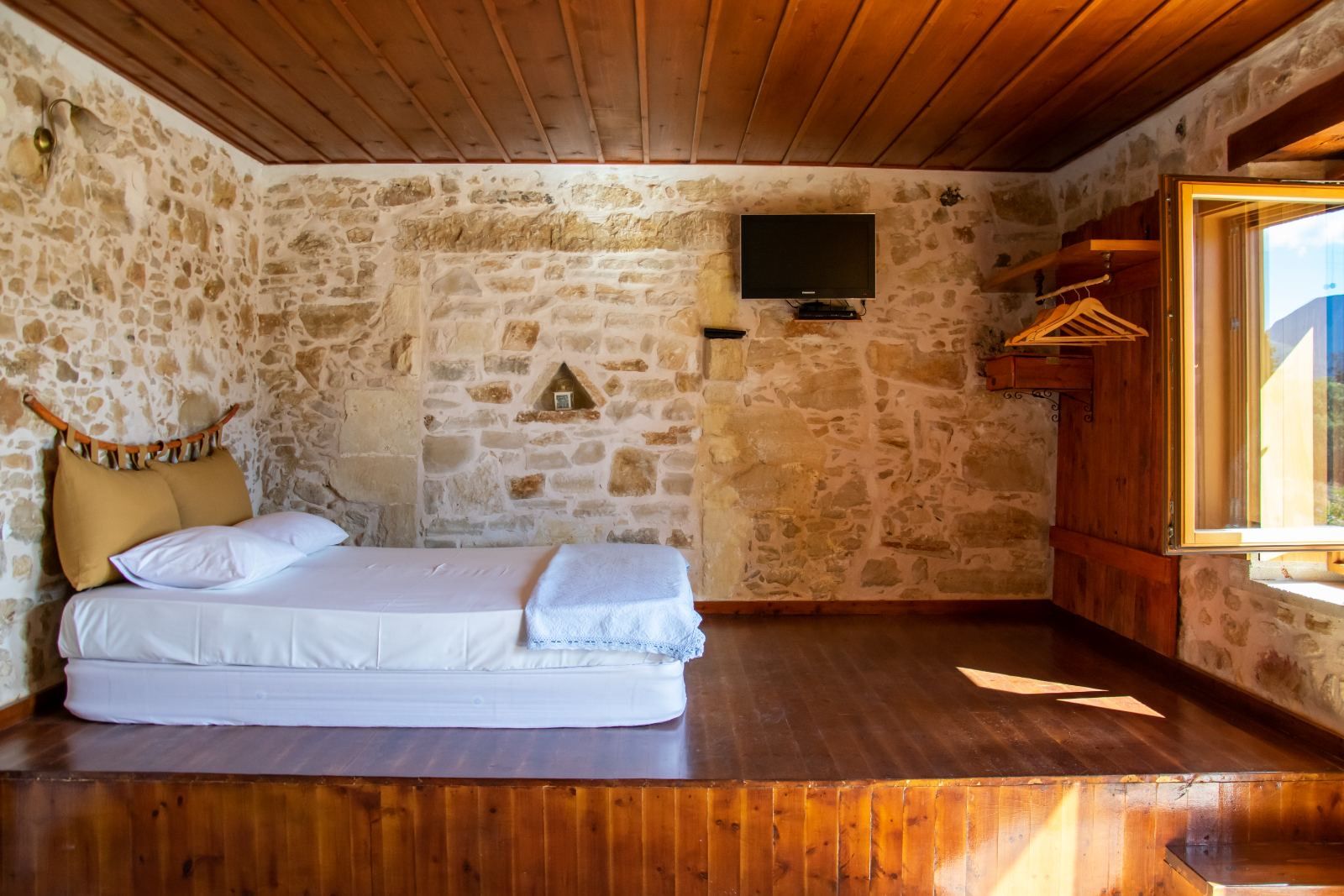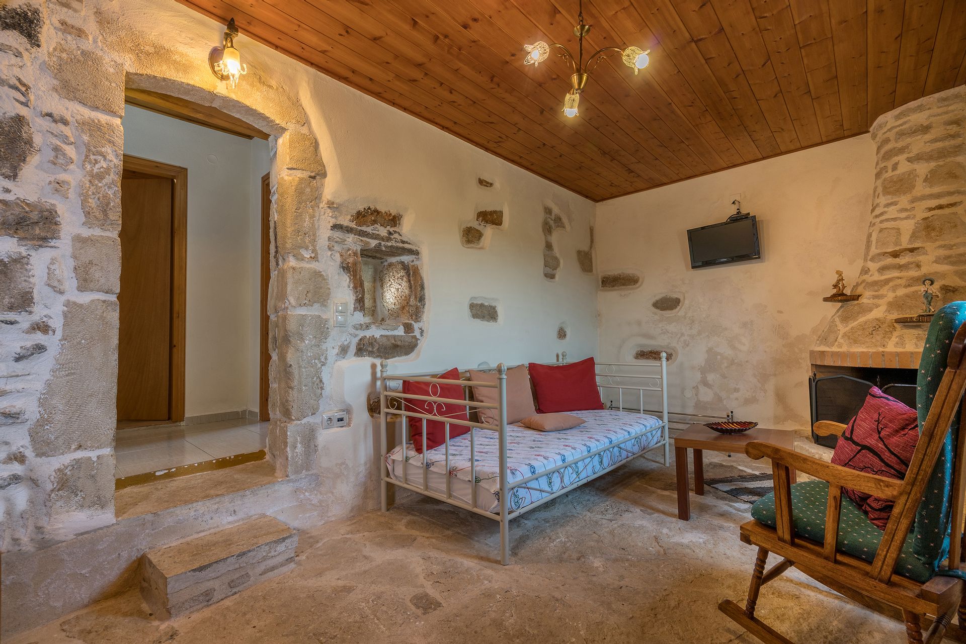 Next to ‘Fournos’ our last apartment is named ‘Axeronas’ and can sleep 3 people since there is only on double bed and one sofa bed in the living room. All of them have Wi-Fi, air-conditioning, Satelite TV & LCD TV with USB input, fireplace, living room and refrigerators. There is a communal area where you can find a large flat screen TV, DVD, Stereo system, play cards, some other games like backgammon, a PC with printer and fax machine. Next to this area the dining area for the entire group and a communal kitchen is there for you to prepare your dinner or breakfast. For a small fee the owners can prepare your breakfast or dinner if you wish to relax and do nothing at all.