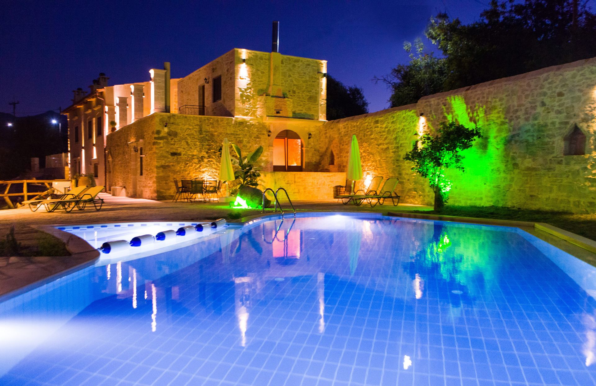 In 1900 it was first built but been fully rebuilt and operated in 2012. This historical building can accommodate up to 15 people since it’s a 500 sqm building with a 100 sqm private pool. It’s excellent for big groups that want to be situated in the middle of Crete, giving you the chance to visit the entire island.