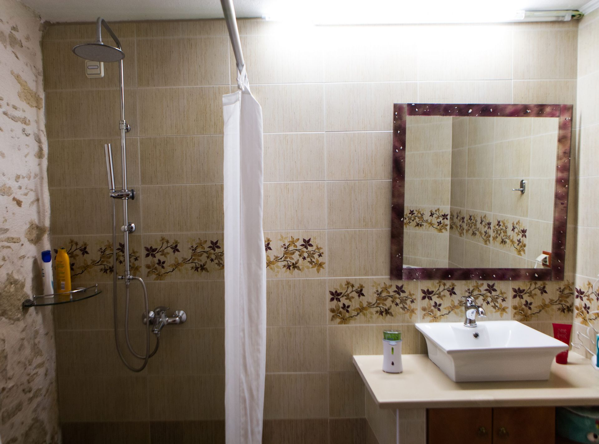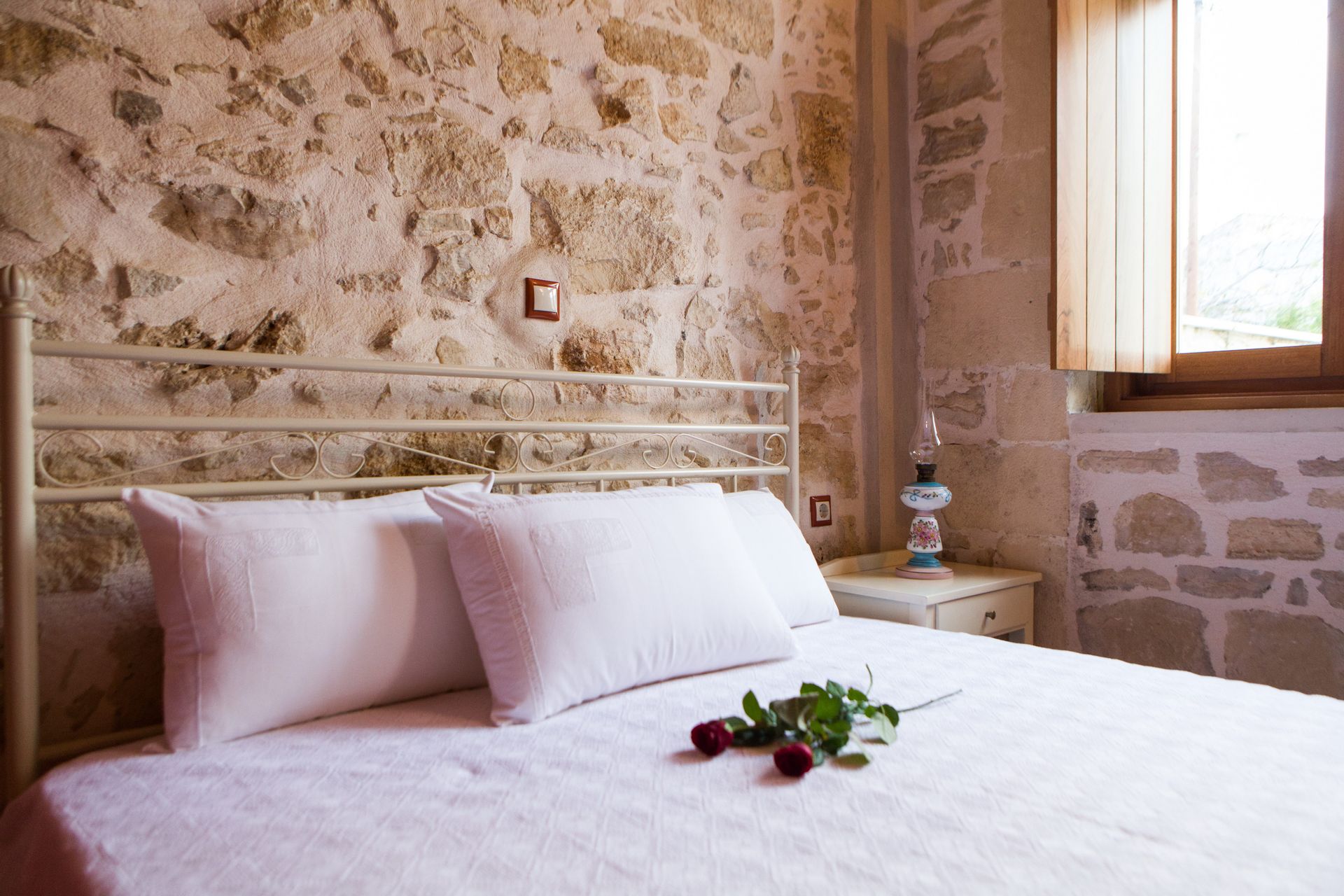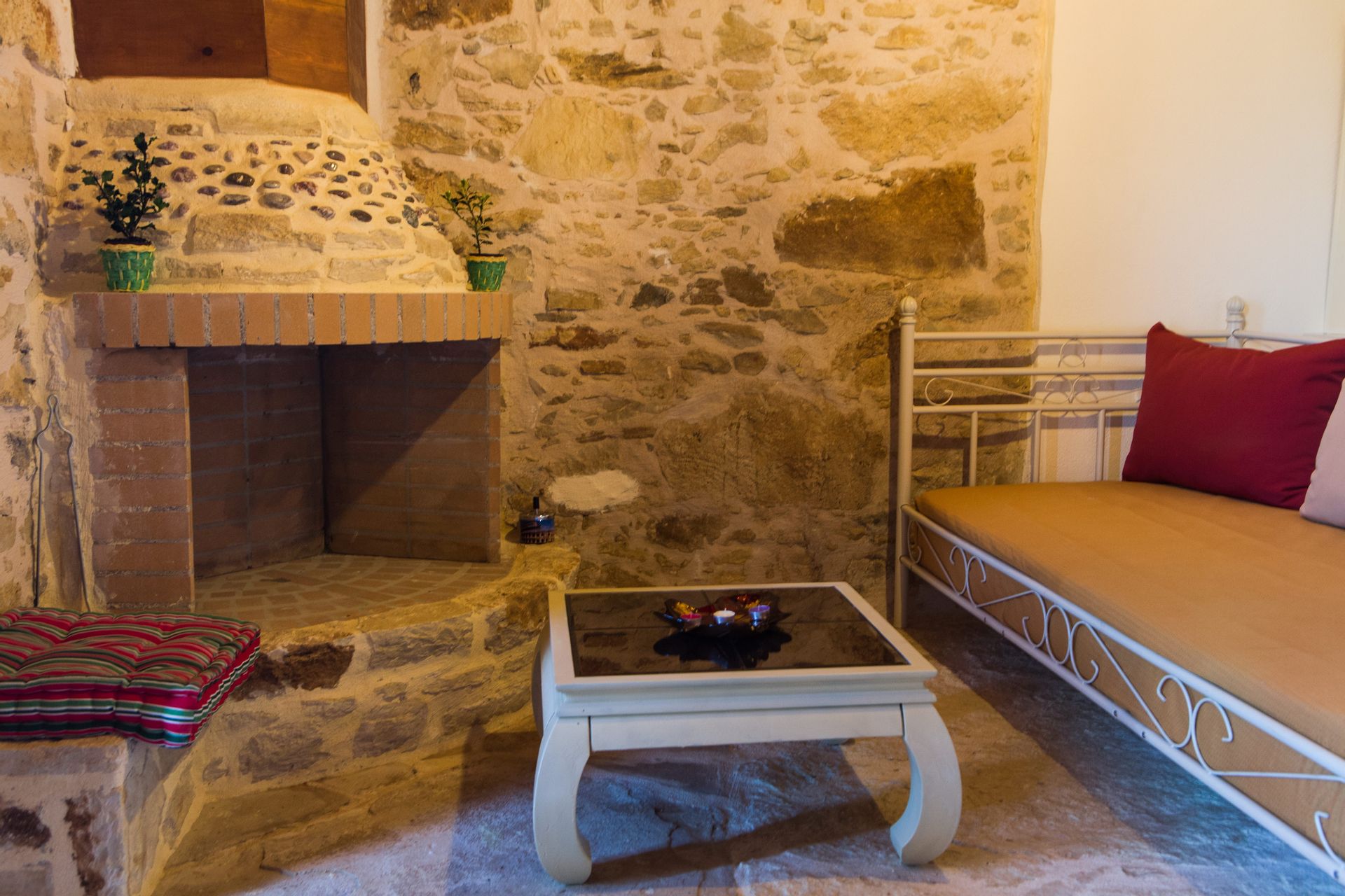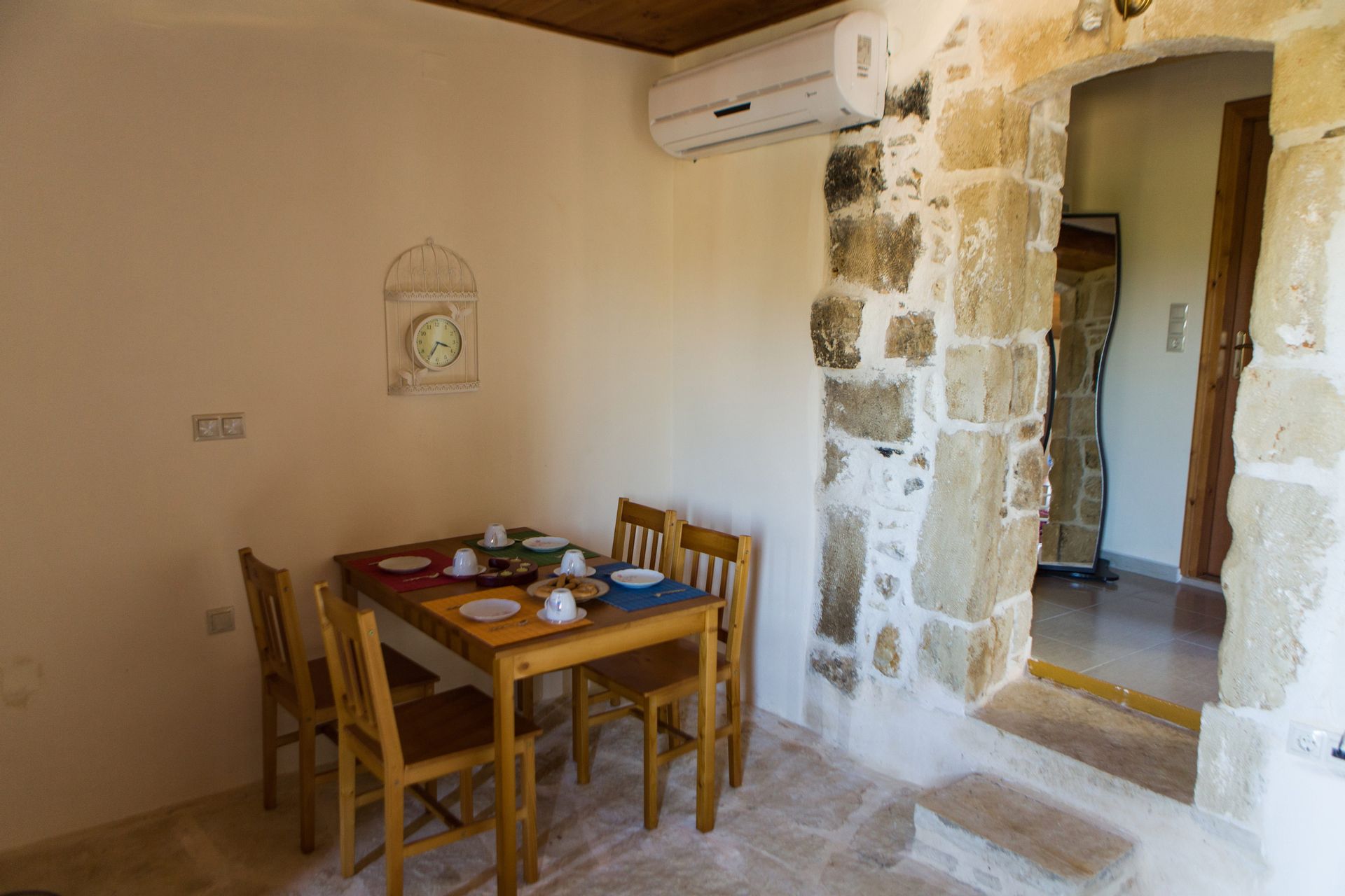This building is divided in three different houses/apartments along with a breakfast/dinner area, a communal kitchen and that’s because in two of the small apartments there is no kitchenette. Only in the big house (130sqm), where its name came from the owner that first build the house ‘Spanos’, there is a fully equipped kitchen along with a living room, a dining area, two double bedrooms, two bathrooms. It can take up to 7 people and it’s situated on the top of the building.