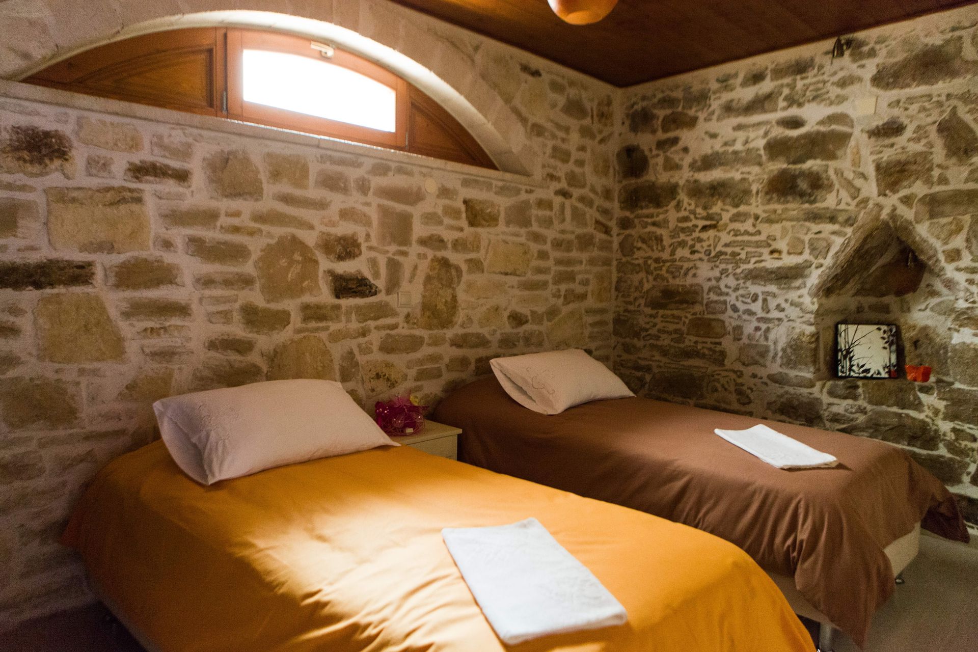 In the lower level the other apartment ‘Fournos’ can take up to 5 people since there is one double bedroom, one bedroom with two single beds, one living area along with a dining table and one bathroom.