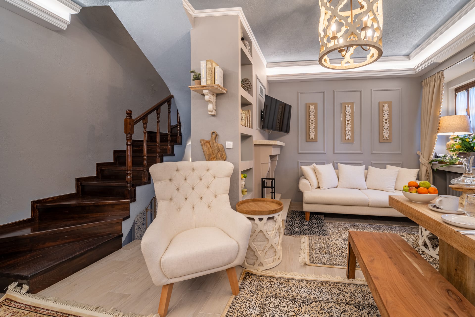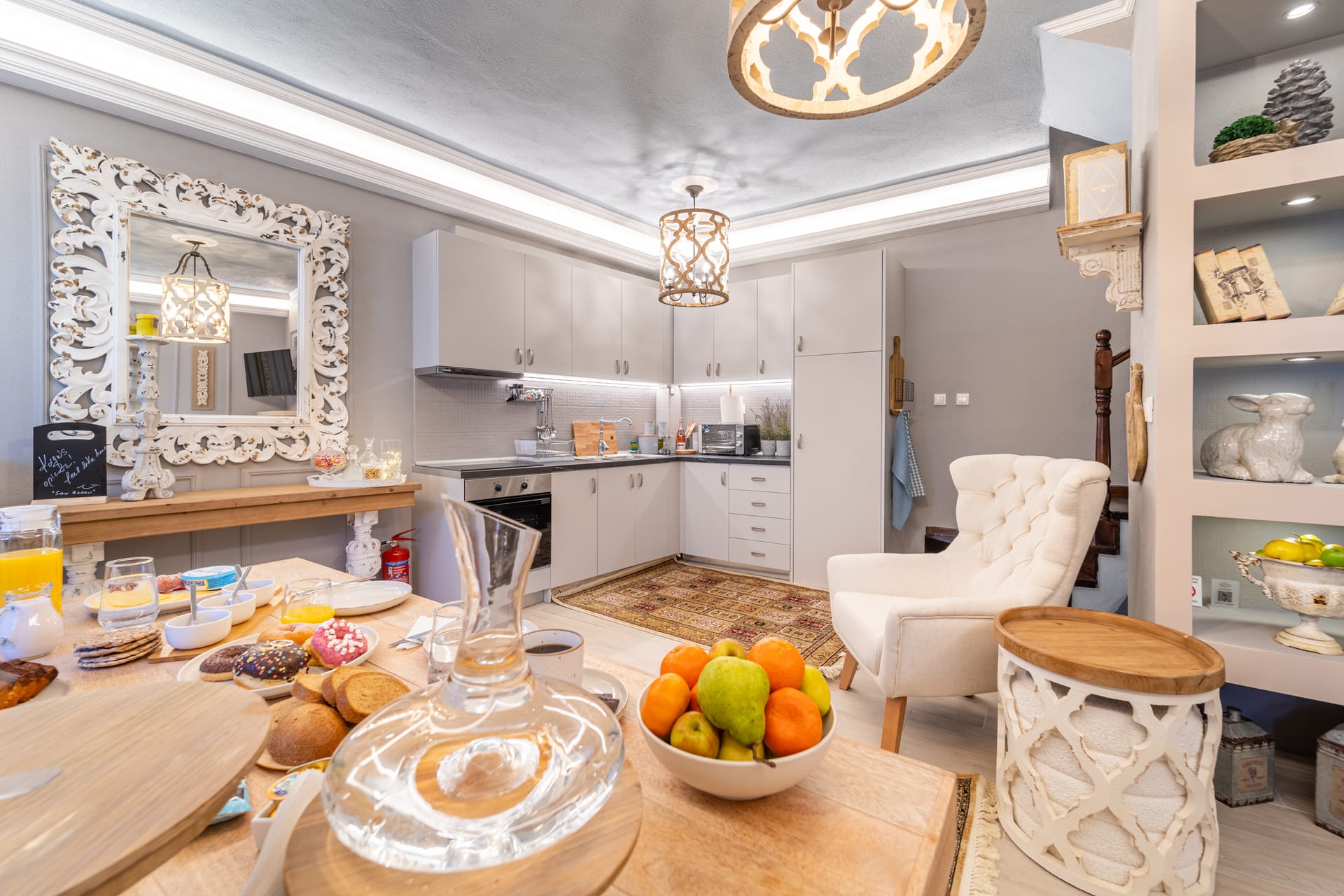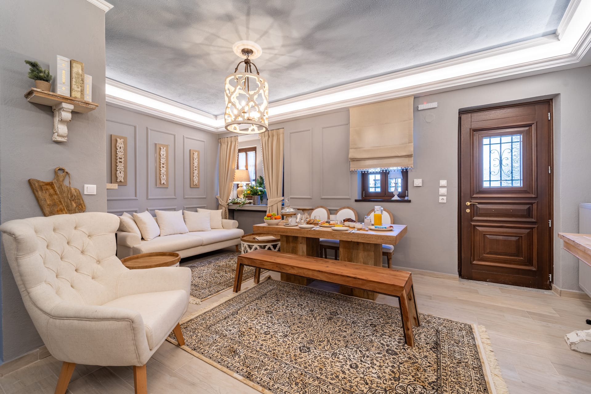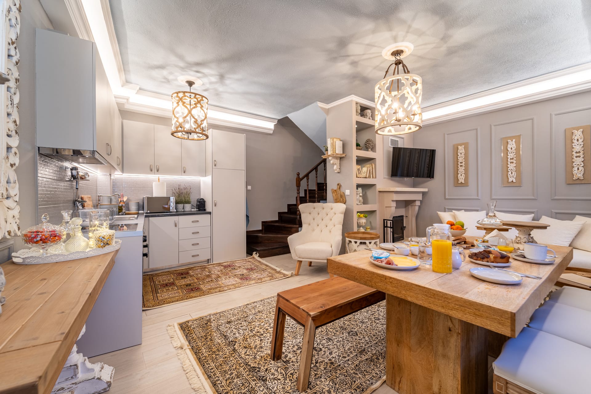 Let's start the virtual tour: Entering the main entrance of the house on the right side, you will see the living room and the dining room. In front of you, you will find a fully equipped kitchen. In the same area, there is the fireplace where in the winter months you can drink a hot chocolate or your tea, enjoying the all-white snowy landscape.