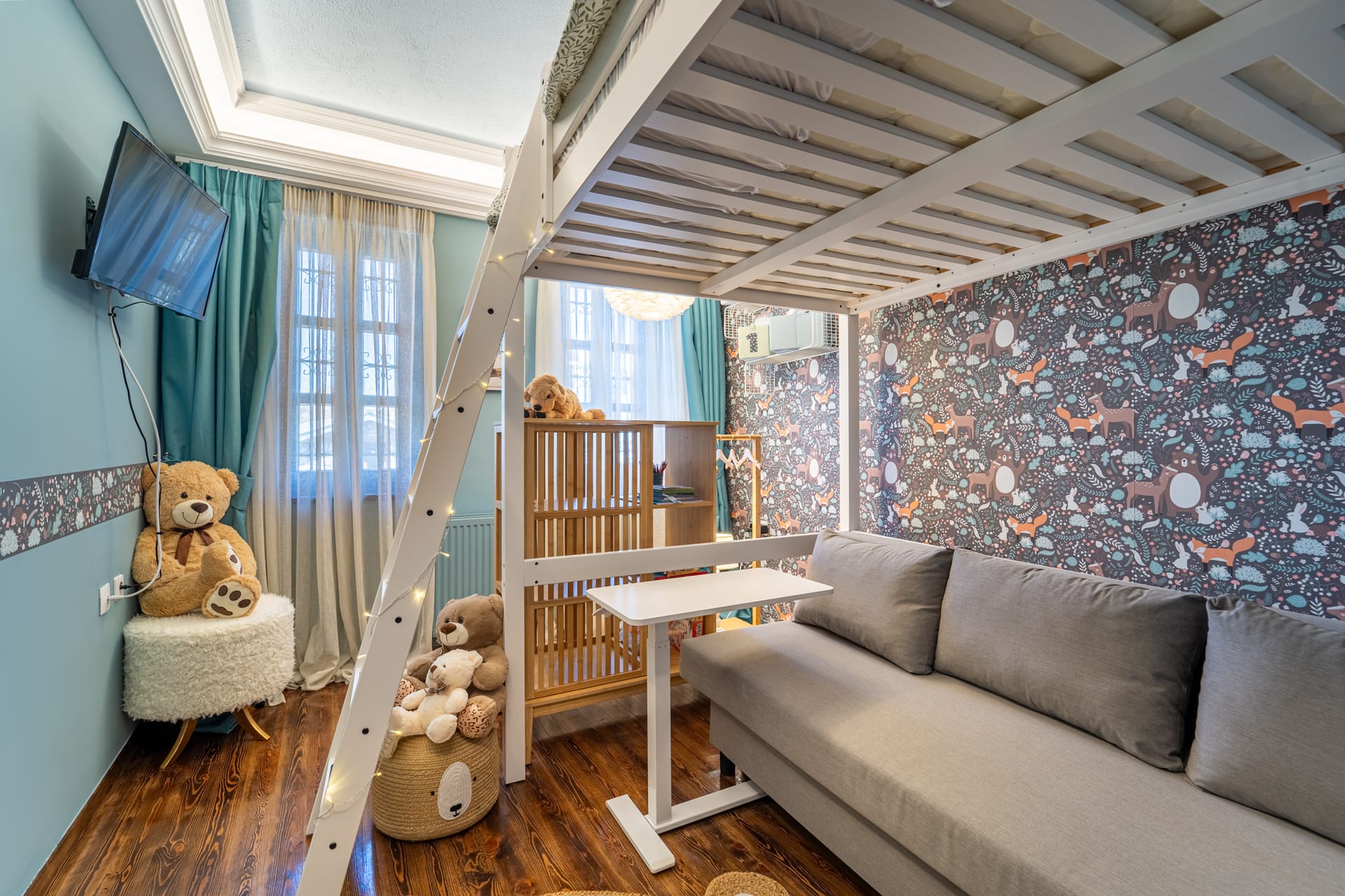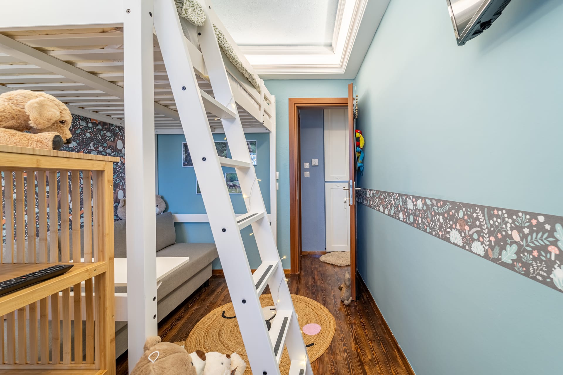 In the second bedroom of the house, there is a bunk bed (1.40 x 2.00 cm) where 2 young children can sleep on the upper side and a sofa bed (1.40 x 1.90 cm) available for 2 people.