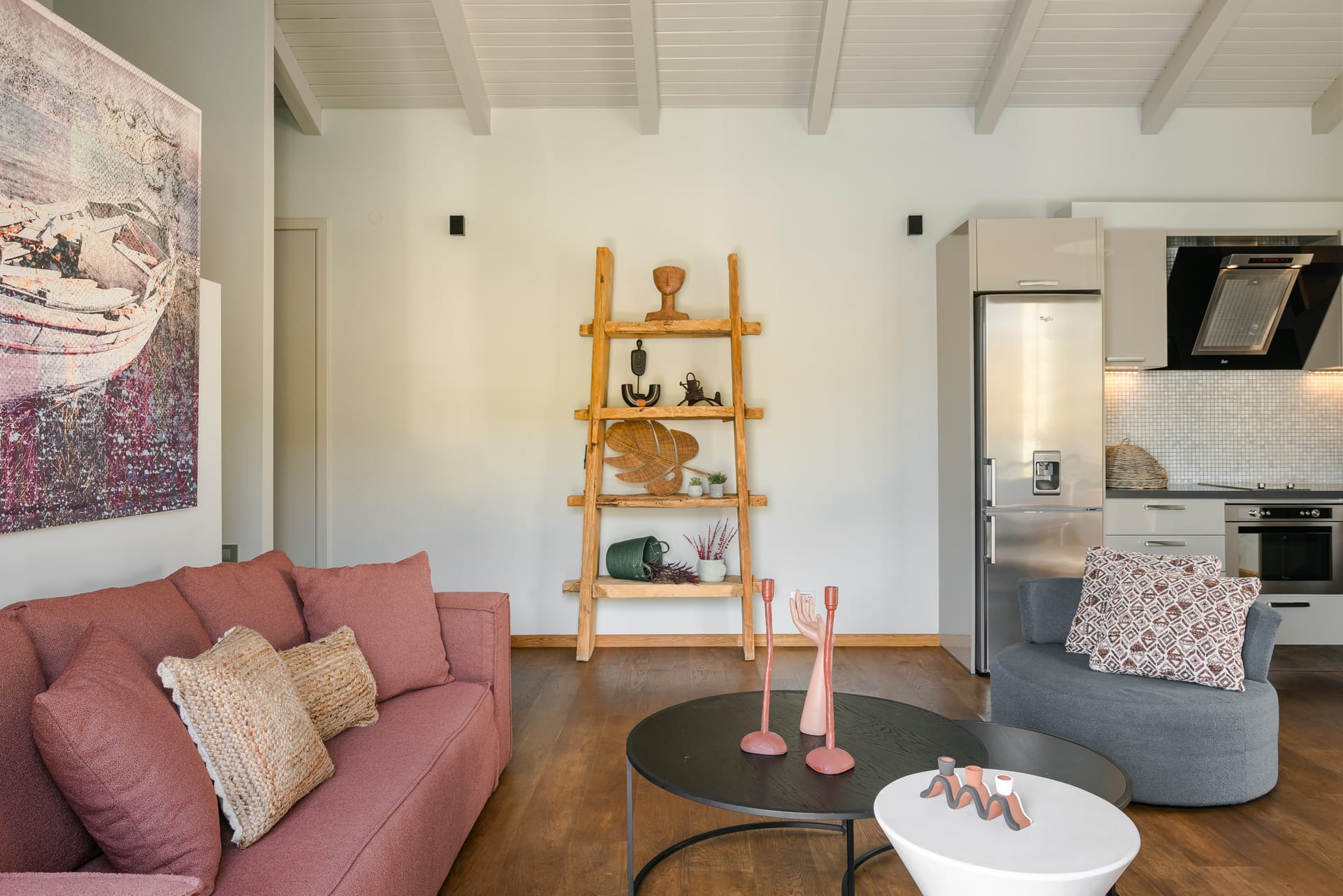 Barbara is a luxurious, bright and modern 6-bedroom villa located hillside in Fanari, a residential area north from the port of Mykonos. Comprised of two separate volumes, a main and a guesthouse, the property offers spacious living quarters styled with sophisticated elegance, as well as large outdoor spaces with a pool area and wonderful sunset views. This villa ideally combines convivial accommodation for 12 guests, in full privacy and comfort, while it still offers proximity to town for those who love to socialize.
