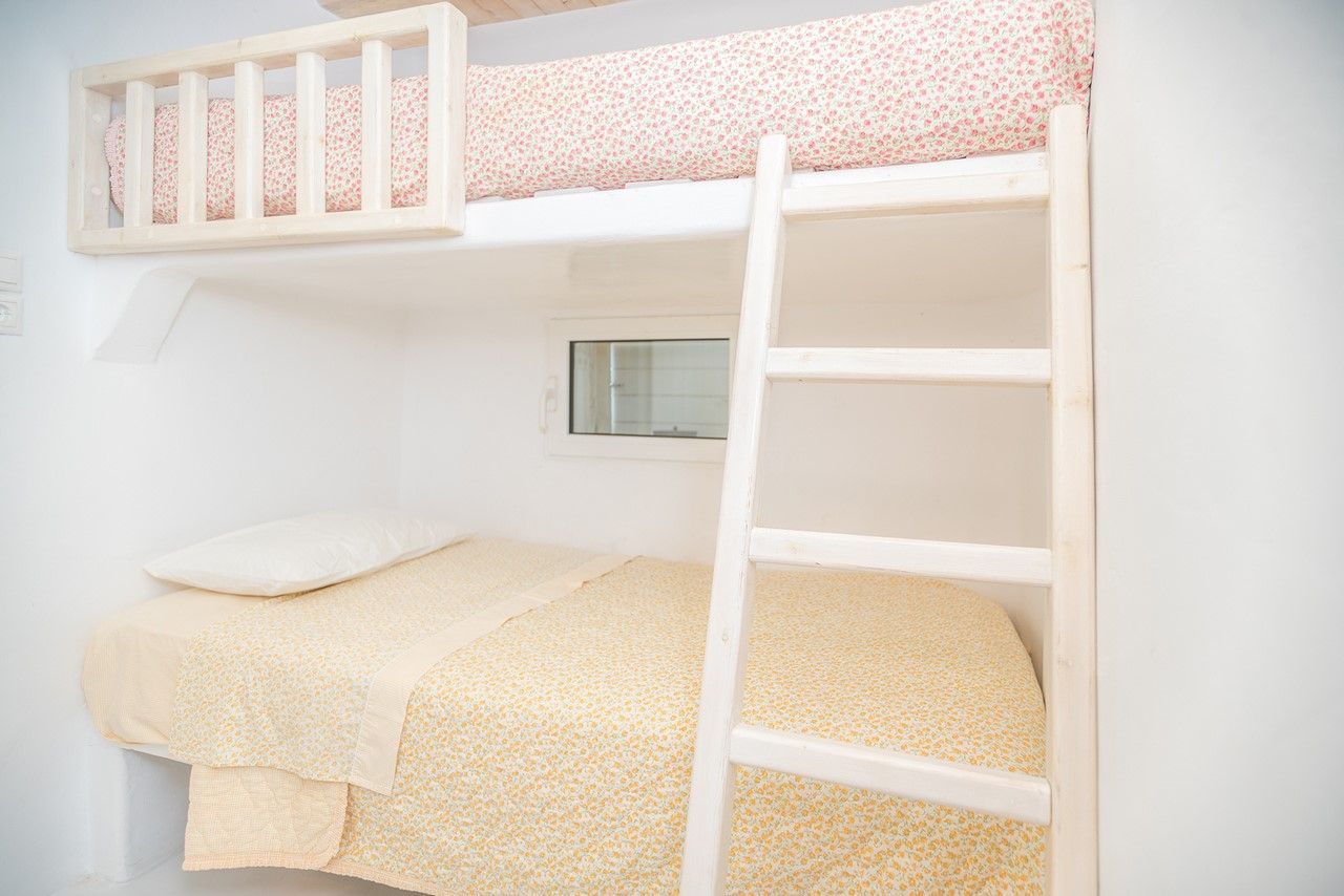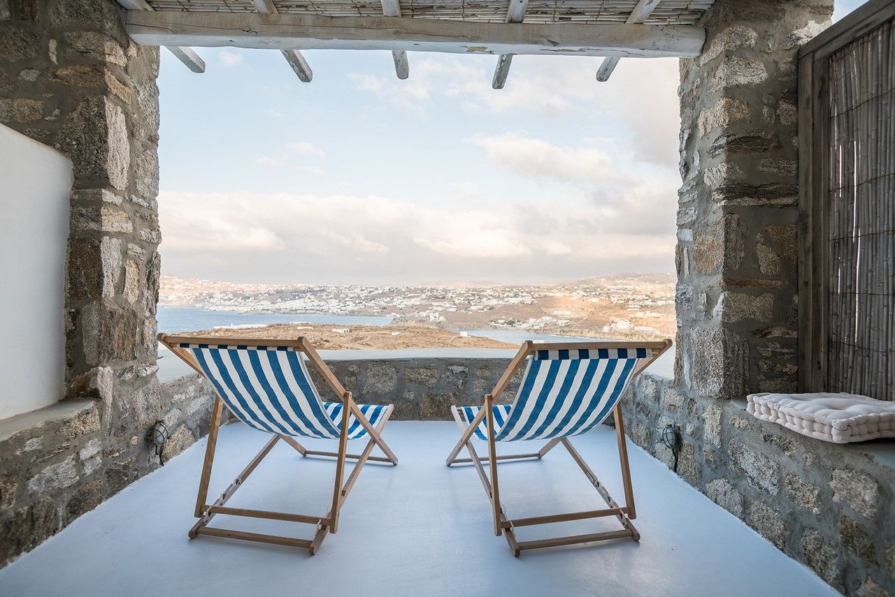 Deborah is a 6-bedroom villa located at Kanalia, and from its pool deck has spectacular views of Mykonos Town and Ornos beach. It can accommodate up to 16 people. It is just a short drive from isolated beaches of Agios Ioannis. The villa is built in well-known Mykonian architectonic style.