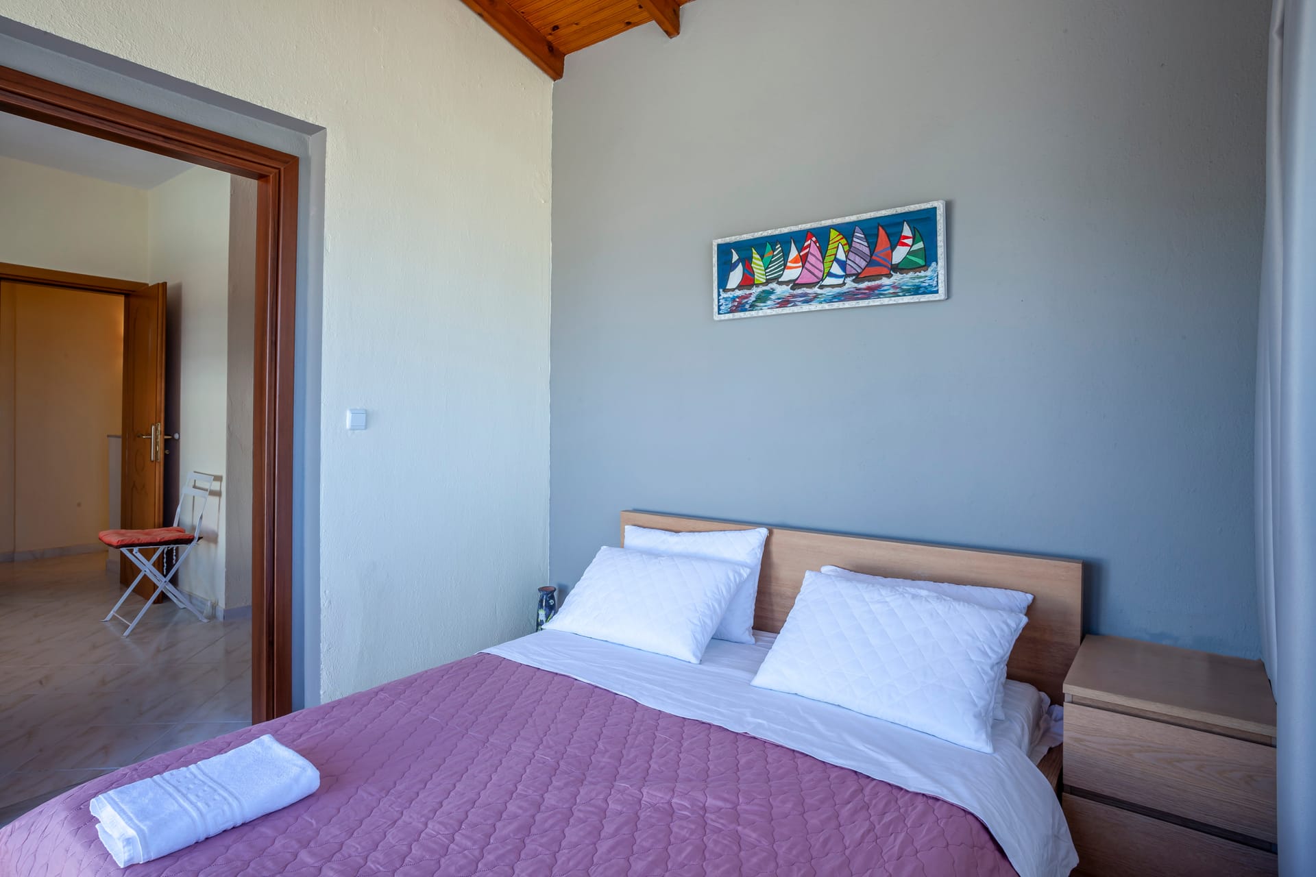- Master bedroom with en-suite bathroom. There is a private balcony overlooking the pool, the sea and Mykonos Town