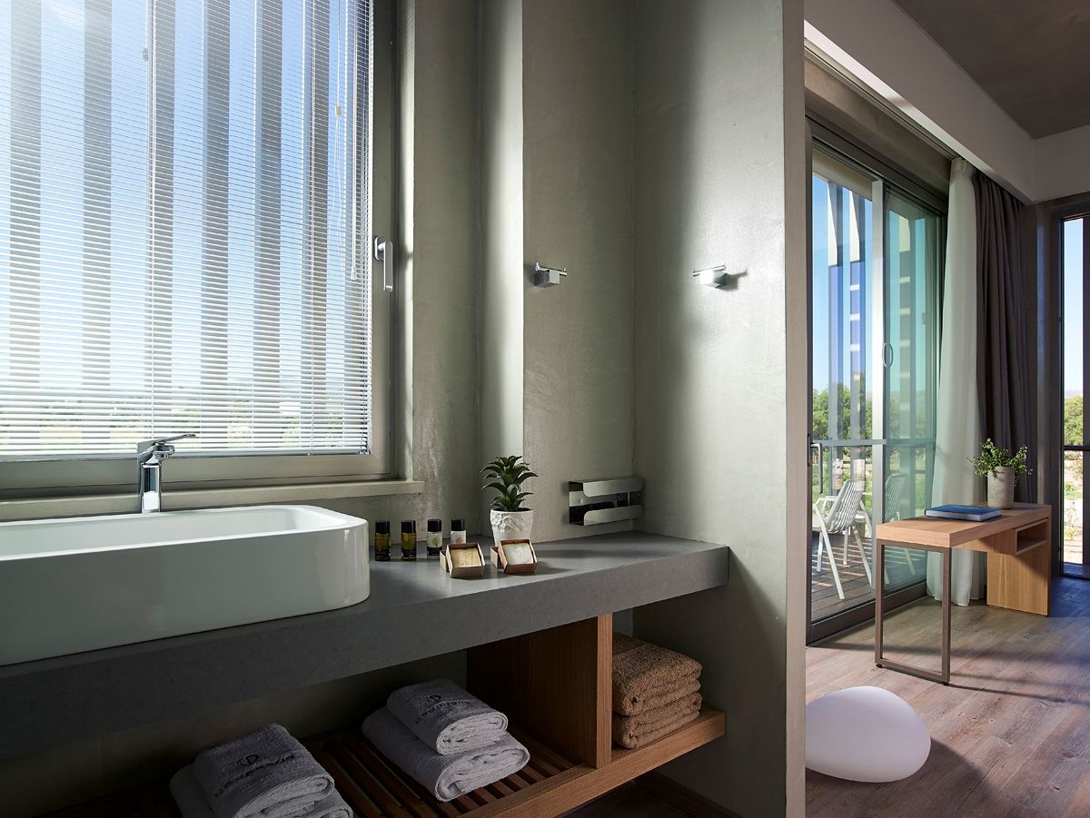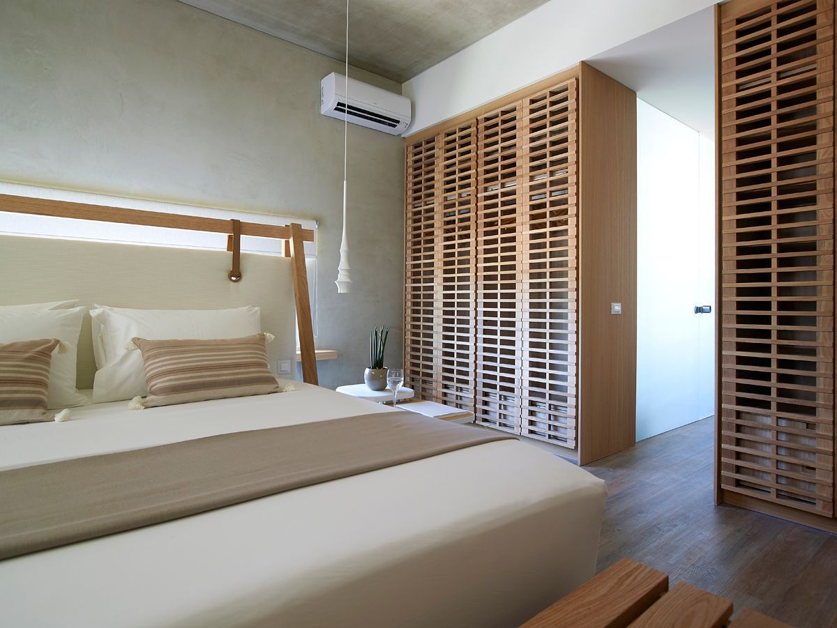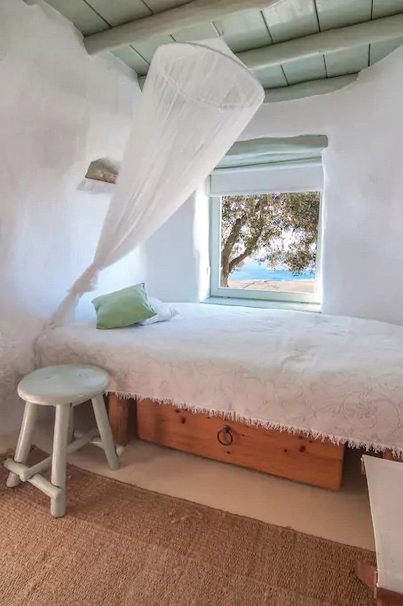 To the east of the site, a charming wooden bridge built over the ravine, leads to an old Mykonian cottage renovated into a lovely and picturesque independent apartment for 1 guest with an external bathroom.