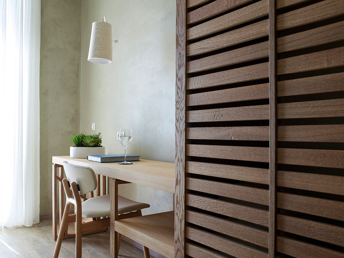 - Guest house 1: A 50sqm independent beach house overlooking the pool, with a double bed, en-suite bathroom, gym equipment and a kitchenette which serves as a bar to the swimming pool.