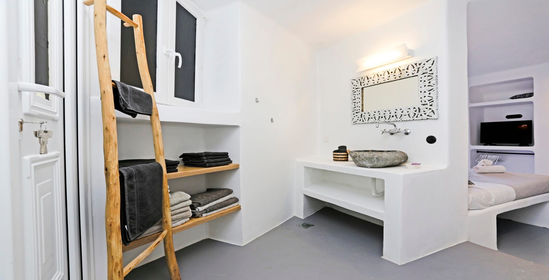 Karter apartment is centrally located, 2 bedrooms apartment in Mykonos town center. A spacious open plan dining & living area with a private veranda facing the alley with partial sea view to the old port provides you relax time. Fully renovated apartment meets the traditional Mykonian architecture.