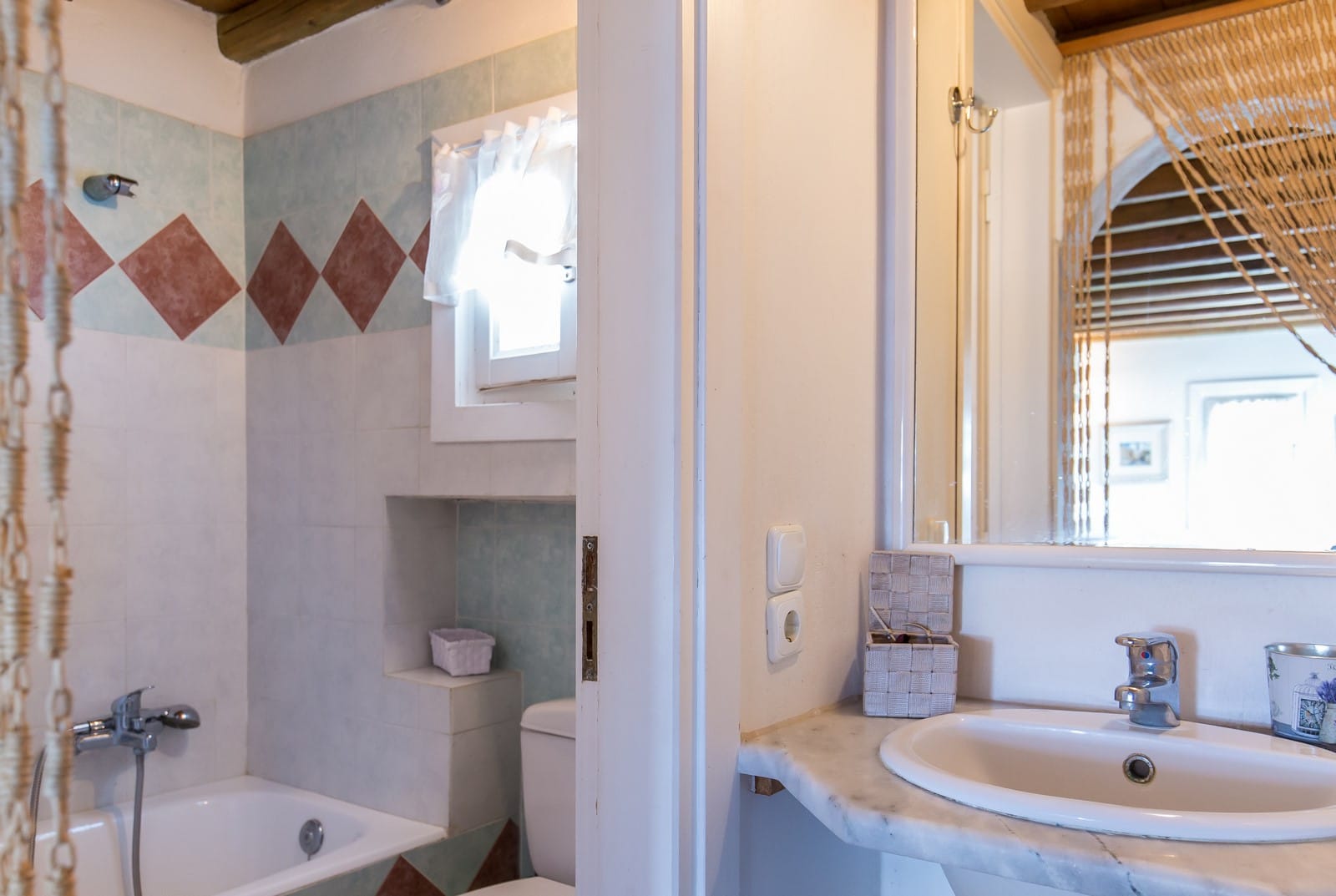 The villa is a 3 level maisonette, (in a luxury villa complex), with wooden interior staircases which lead to the first floor and built ones which lead at the lower floor.