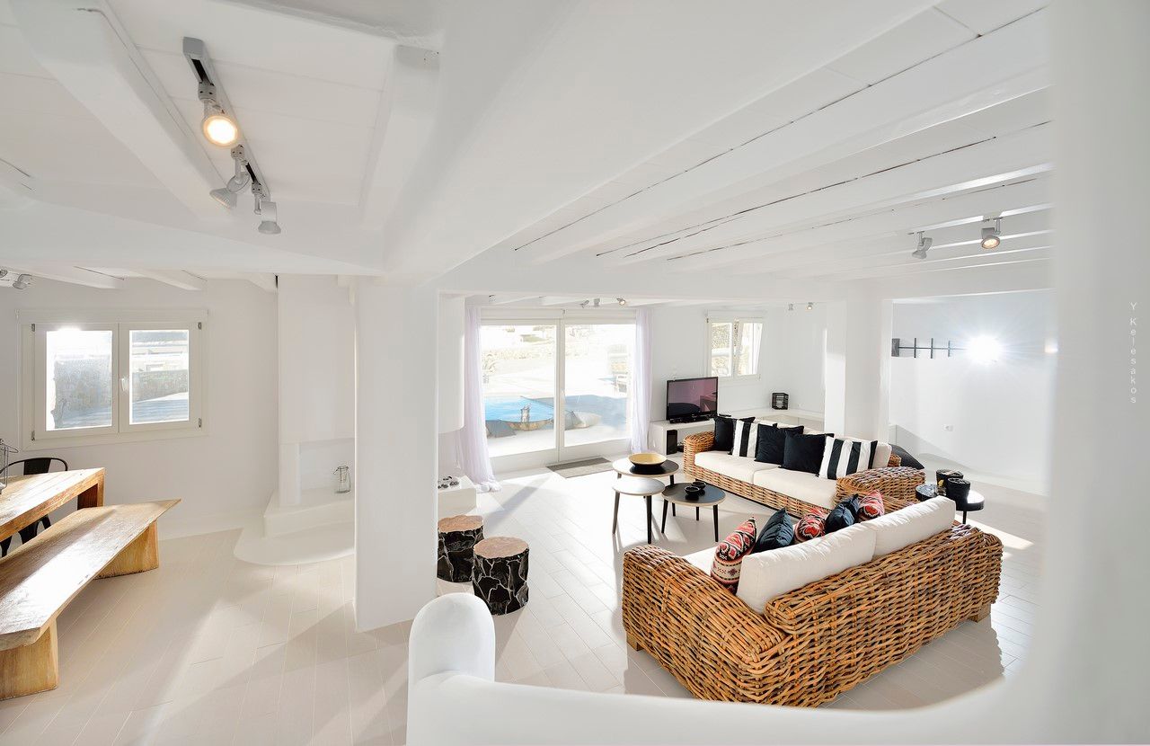 The traditional Greek touch is fused with the luxurious and tasteful design of the villa and the colorful sunset view